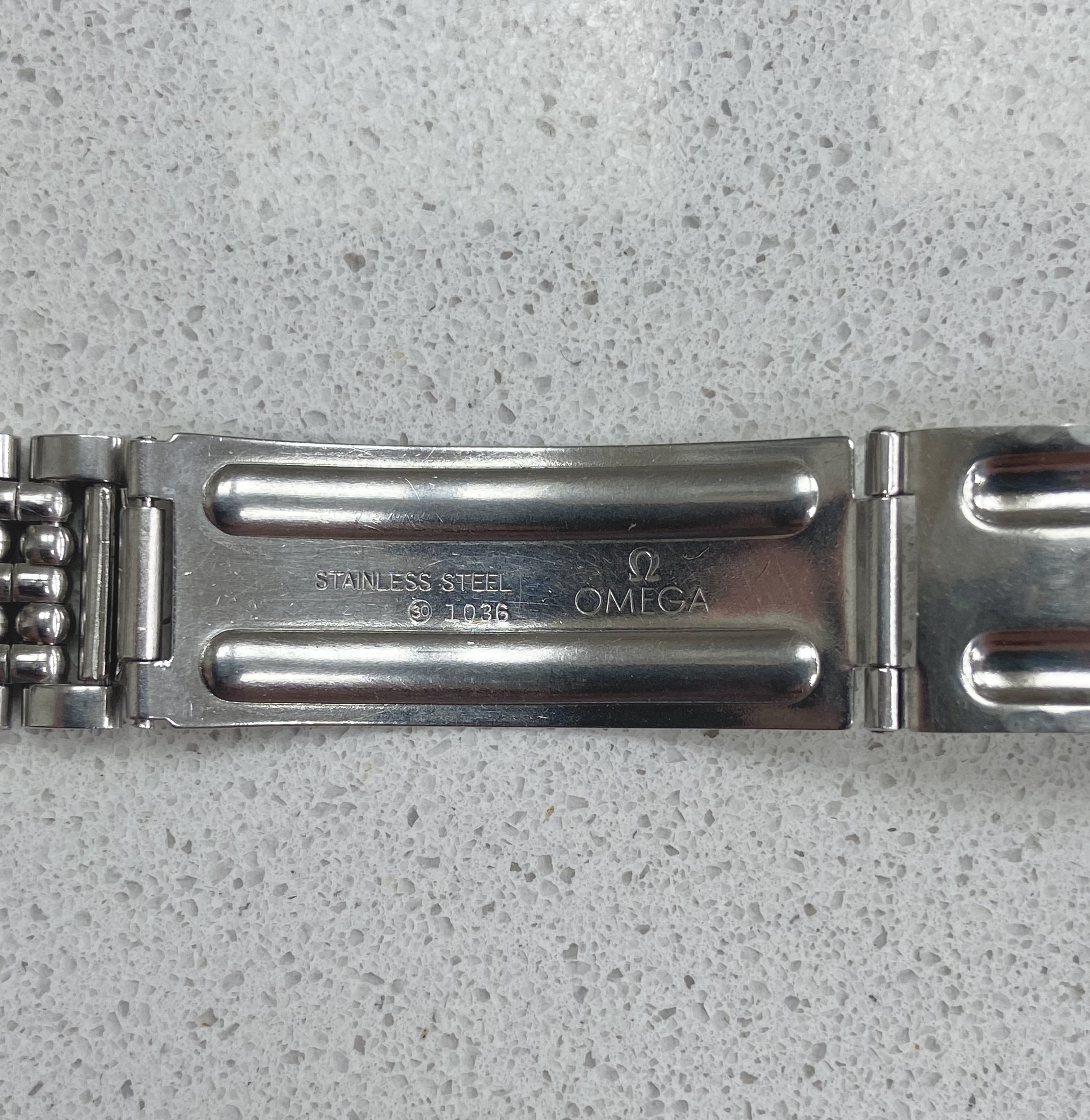 Original Omega 1036 beads of rice bracelet with 11 Endlinks. In very good condition, no damage or undue stretch. Fits wrist size up to 7.75”.