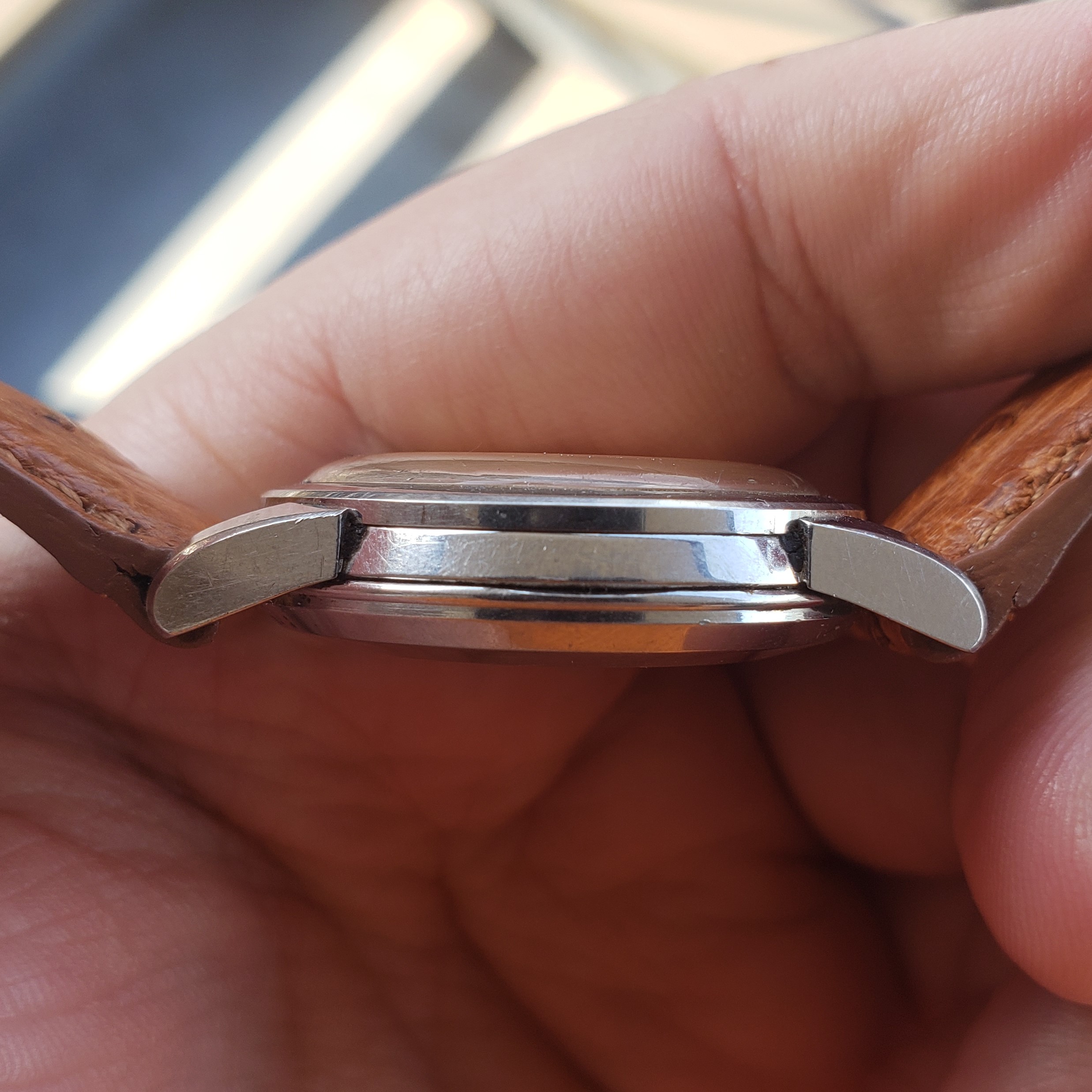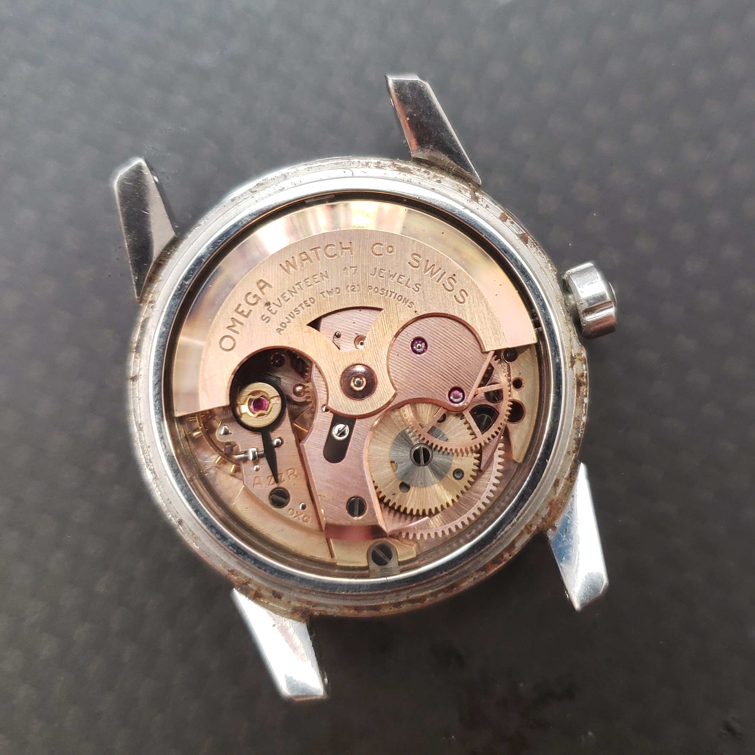 For sale is an Omega Seamaster from ~1958. It is a nice watch at about 33mm with 17mm lugs. The case retains it's facets nicely and both SEAMASTER and WATERPROOF on the back are legible (a good sign of condition of the case in these watches.) It's reference 2828-10.