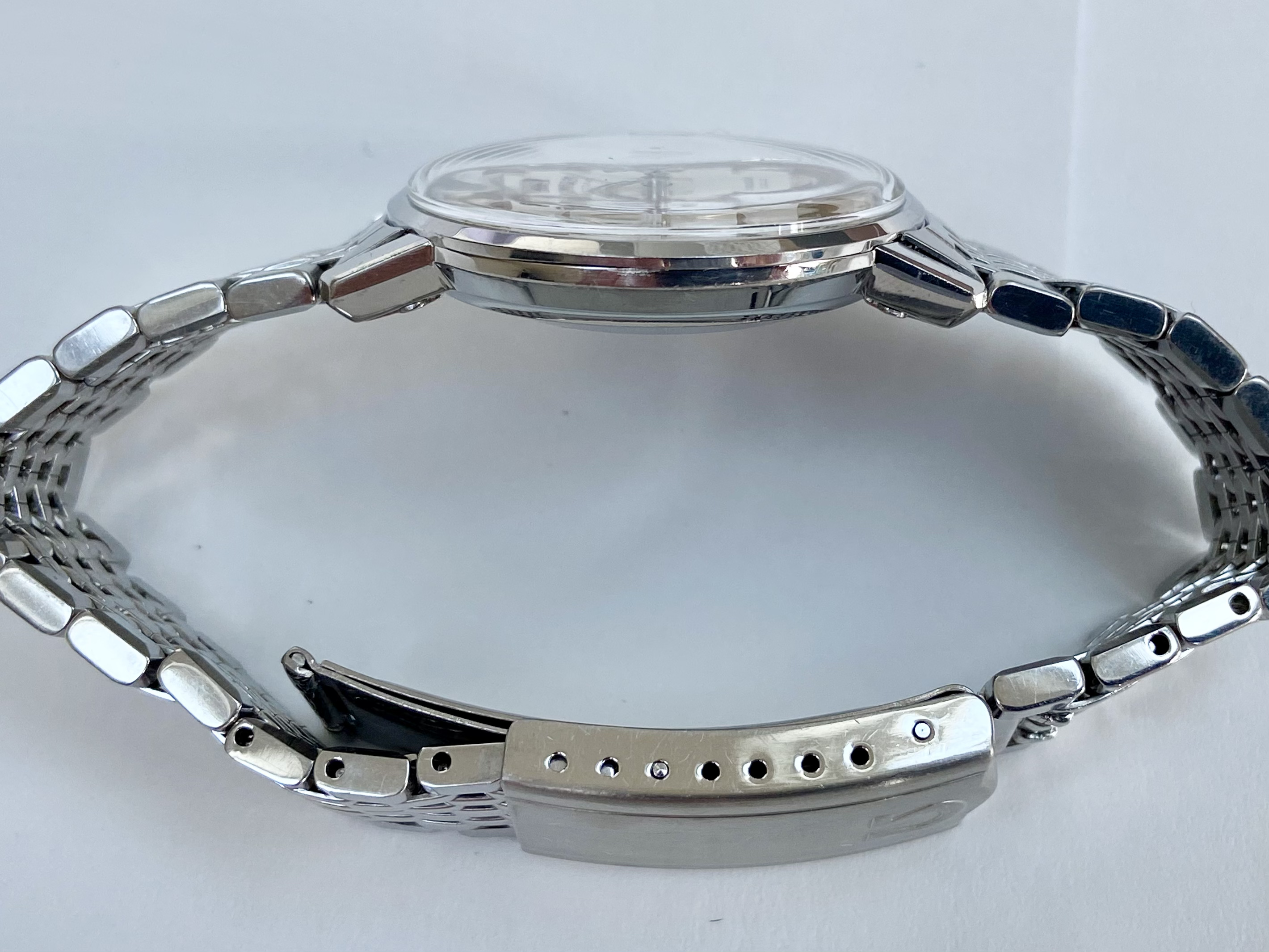 Omega caliber 565, automatic movement with date. Serviced in April this year. It is functioning perfectly and has a transferable warranty to April 23.
