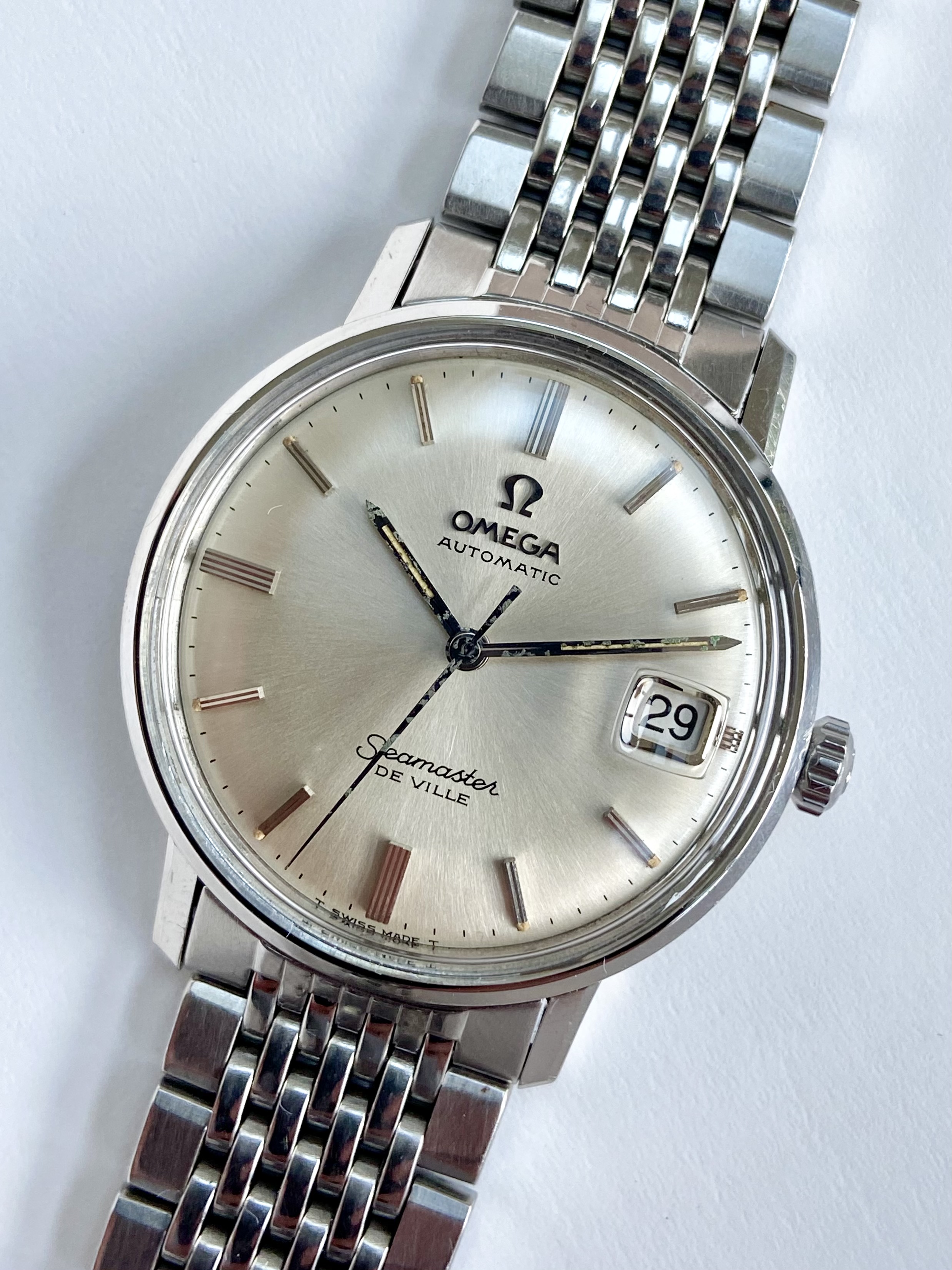 Factory original dial in excellent condition, not restored, refinished or repainted. With silver sunburst finish and applied Omega logo and hour markers. The tritium lume plots have aged to a lovely warm, yellow hue giving the dial a real warmth.