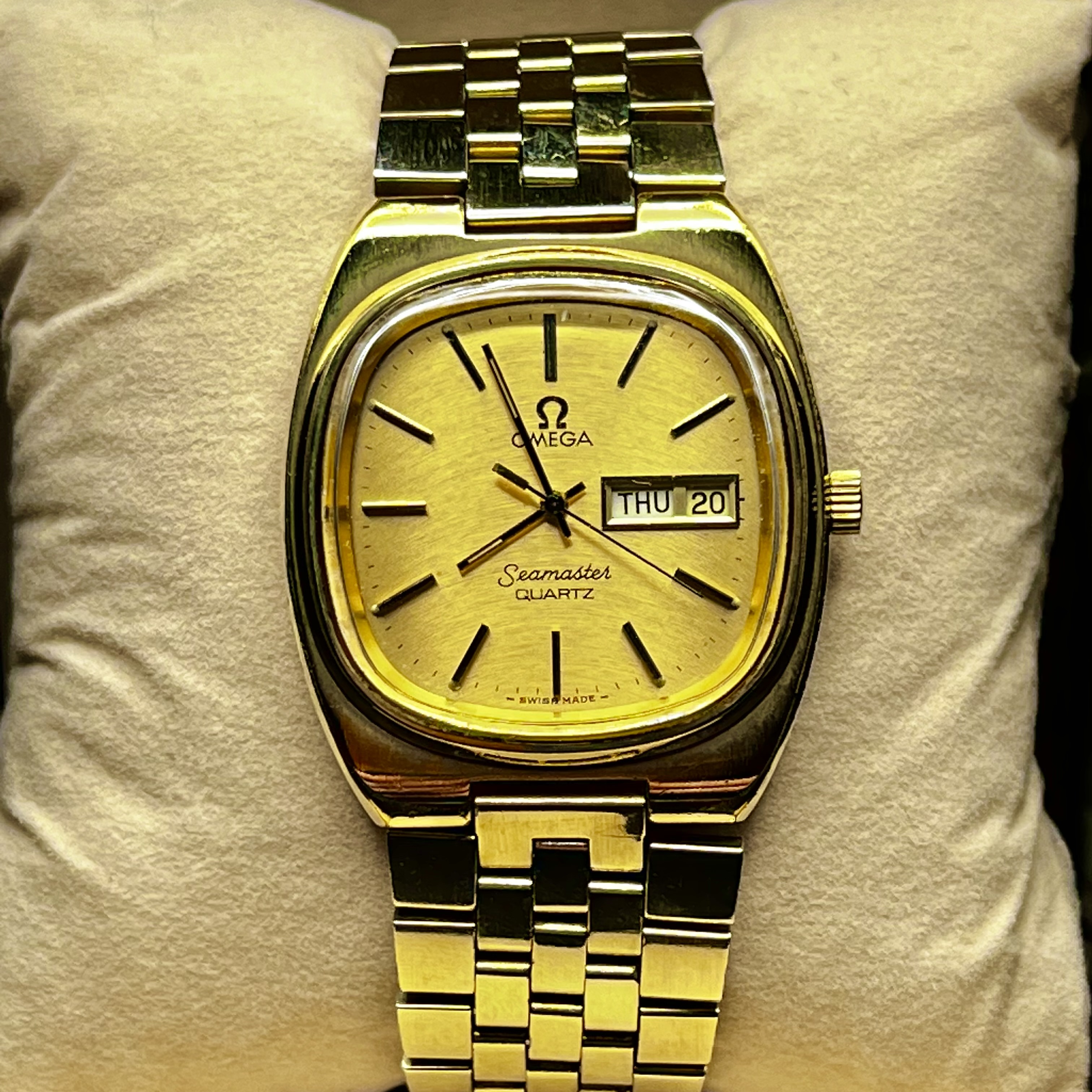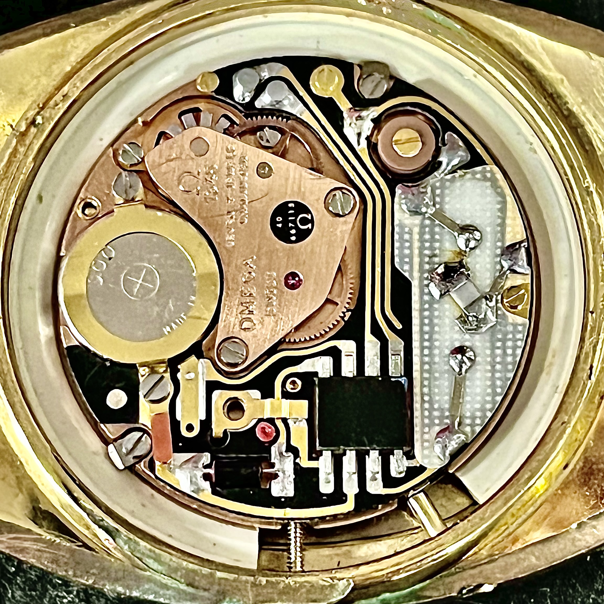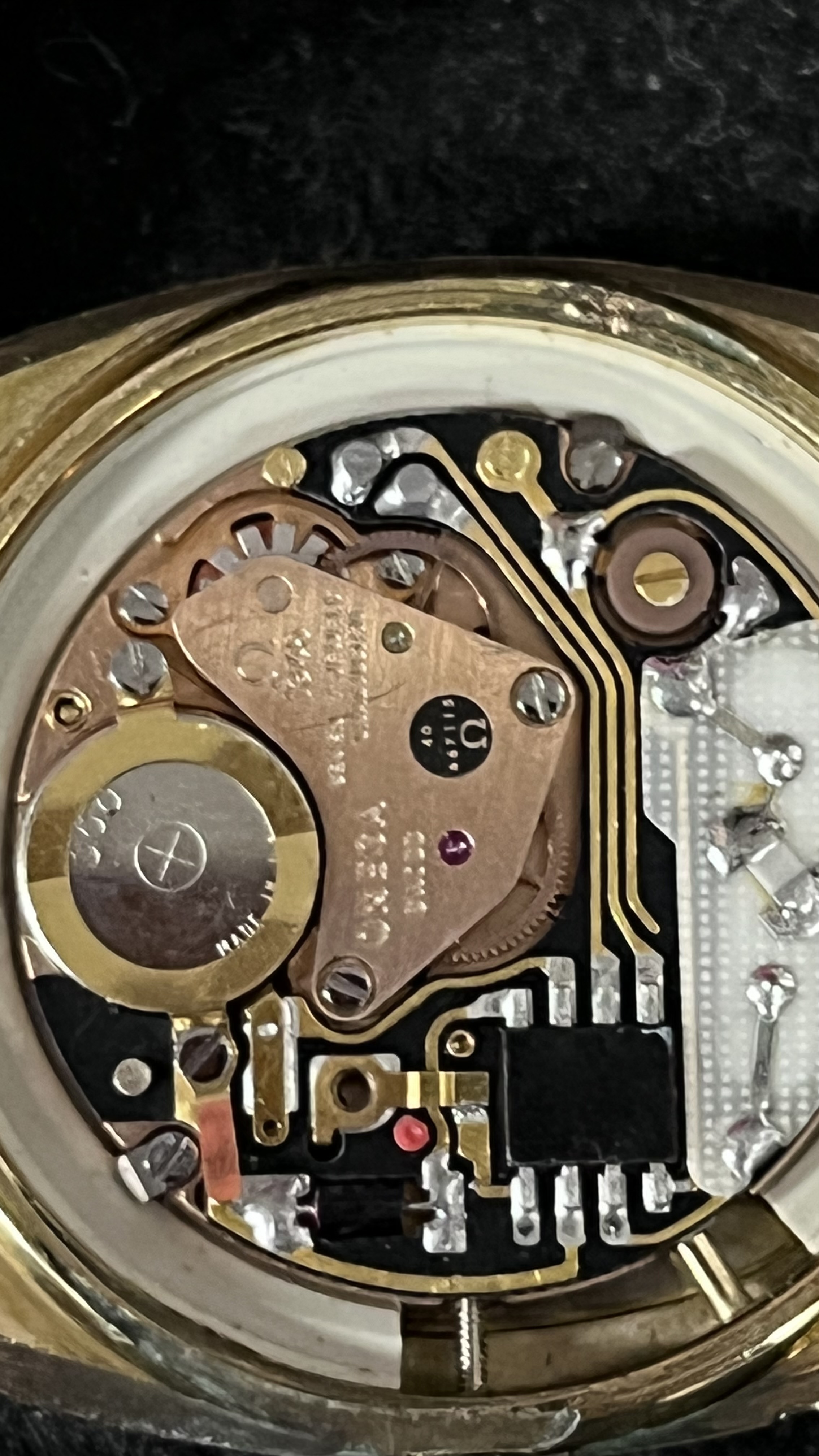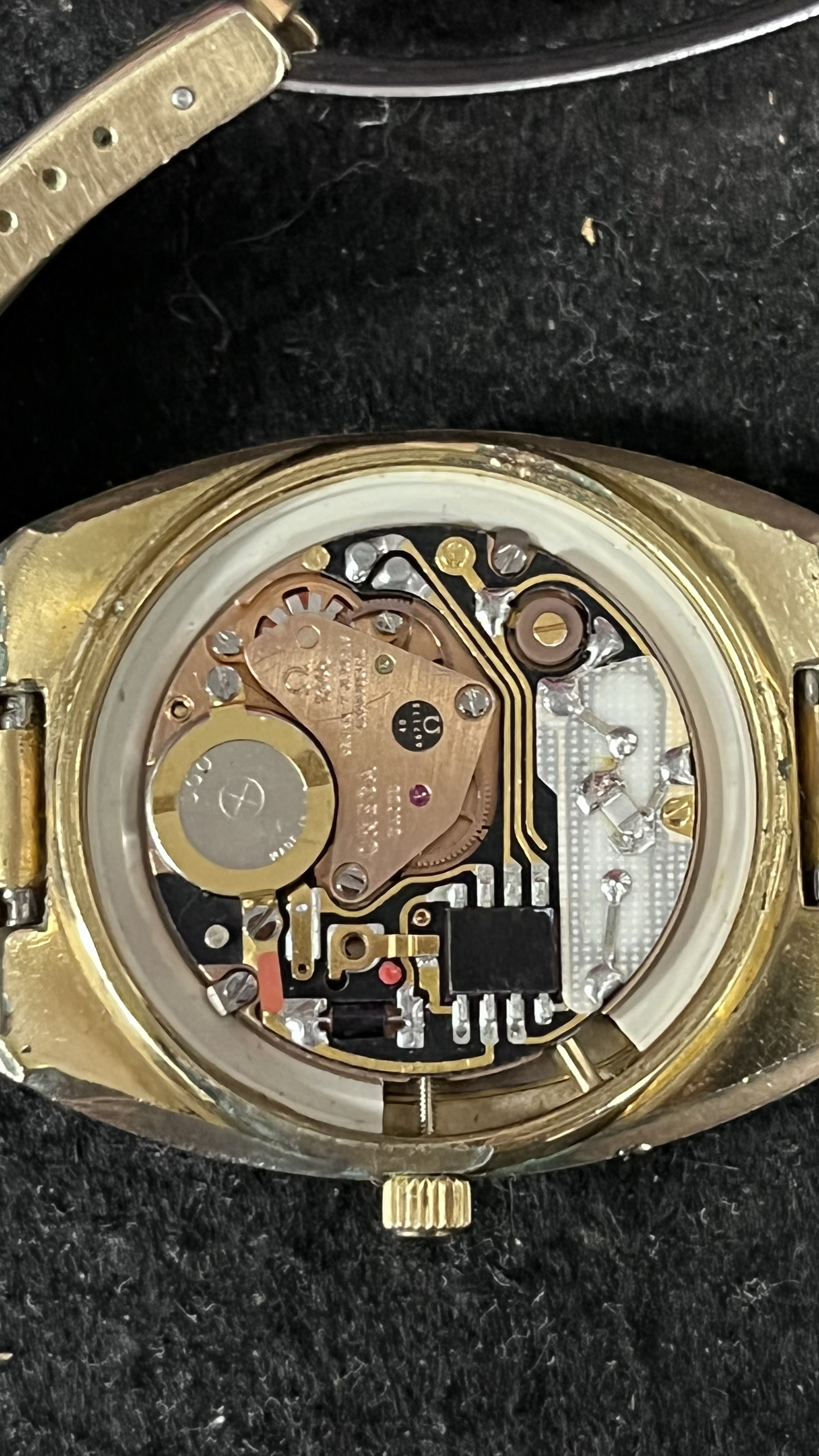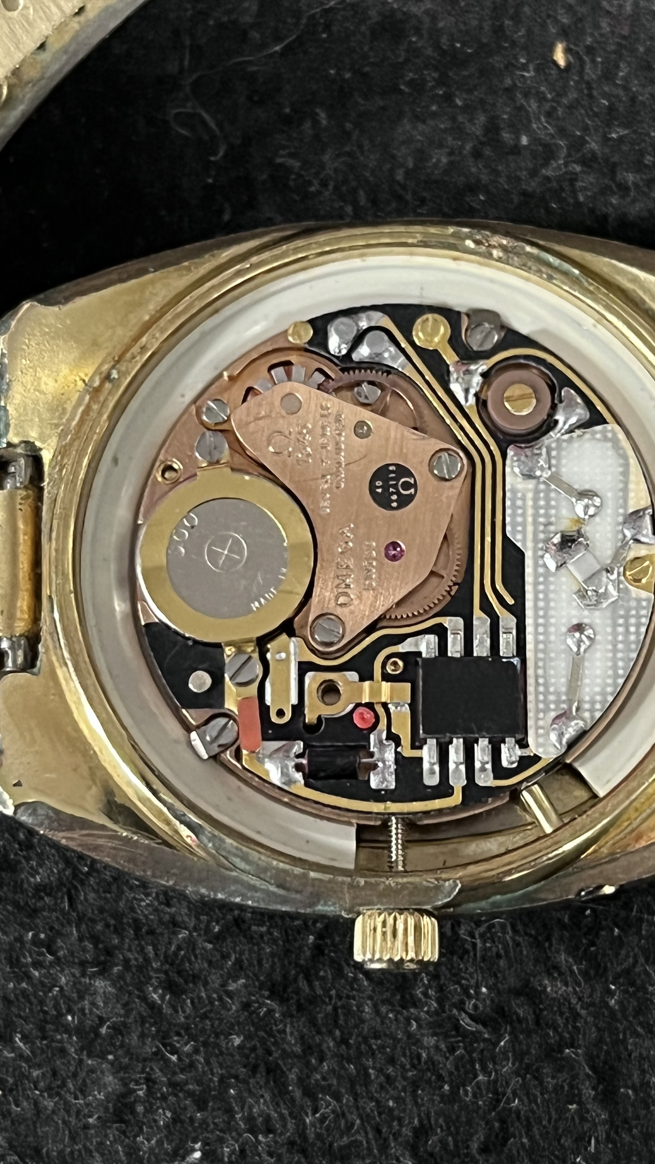 ·Hello friends, I got this Omega Seamaster Quartz recently and it is one of my favorite watches- I wear it all the time and get a lot of compliments! I'm wondering if anyone knows the type and karats of gold on the watch and the bracelet? The bracelet says 1037 and there is a 12 in a circle. I can't open the watch, I don't have the necessary tools at my house, but I received a poor cell phone photo of the movement. Any info would be much appreciated!