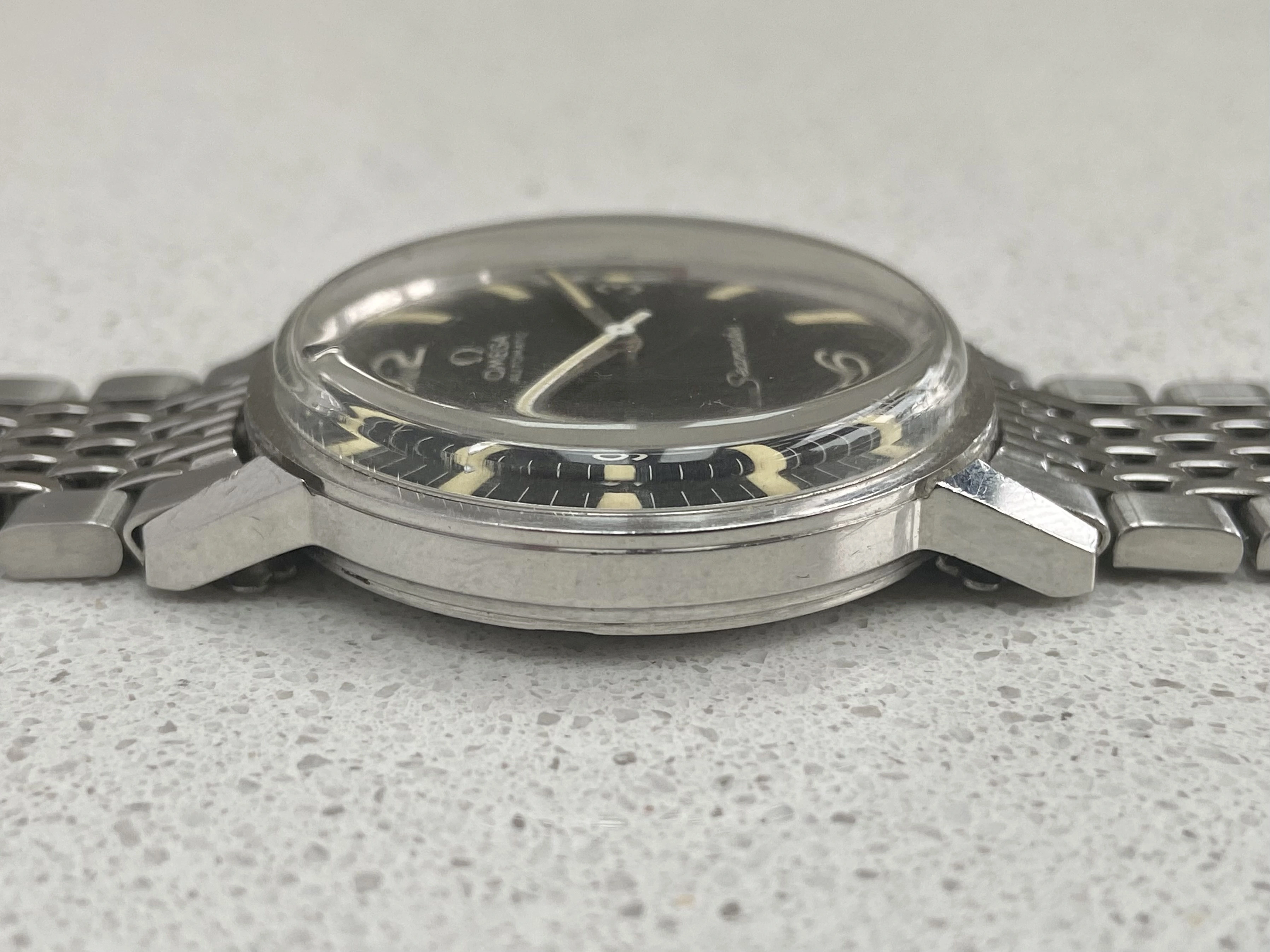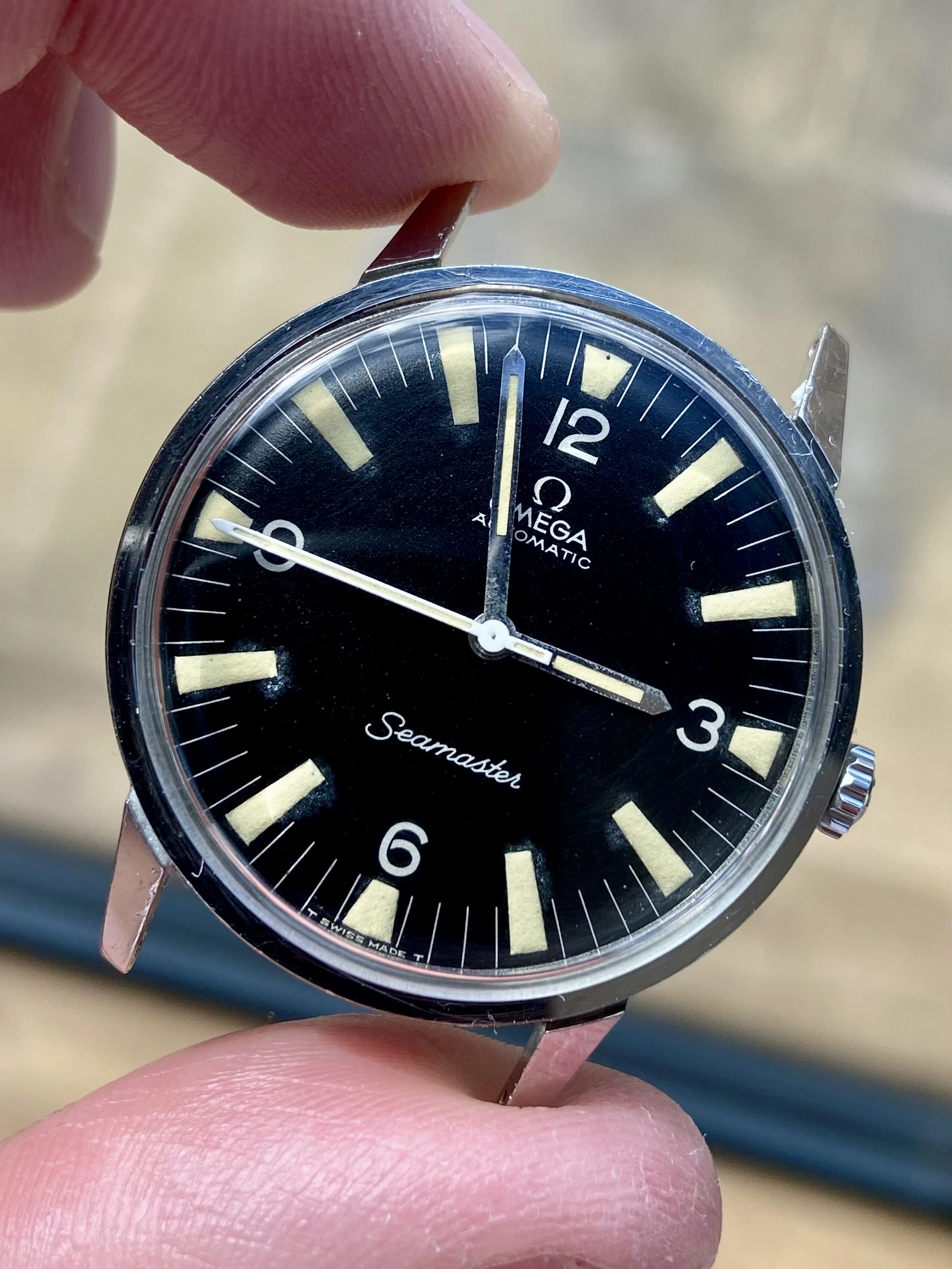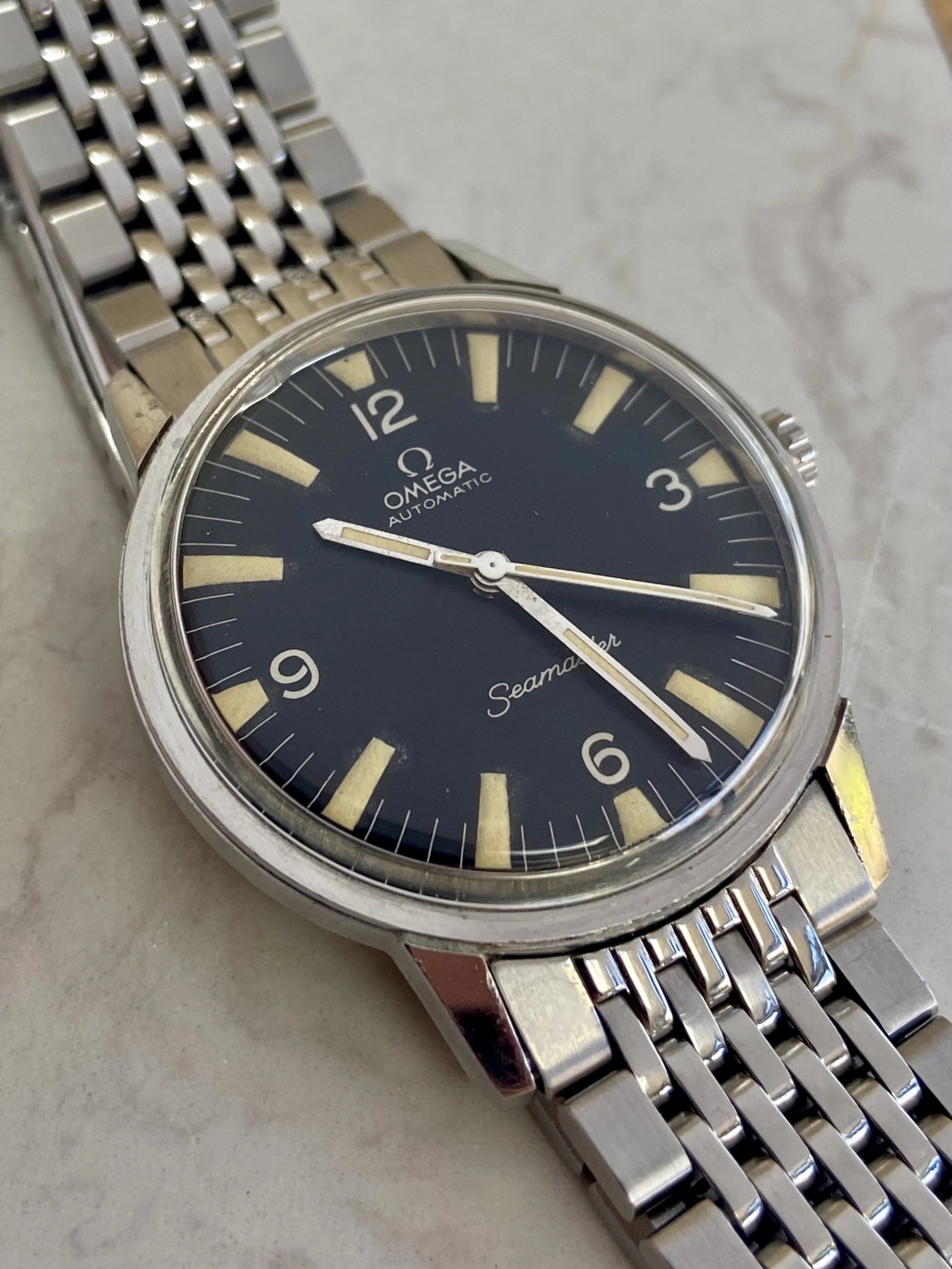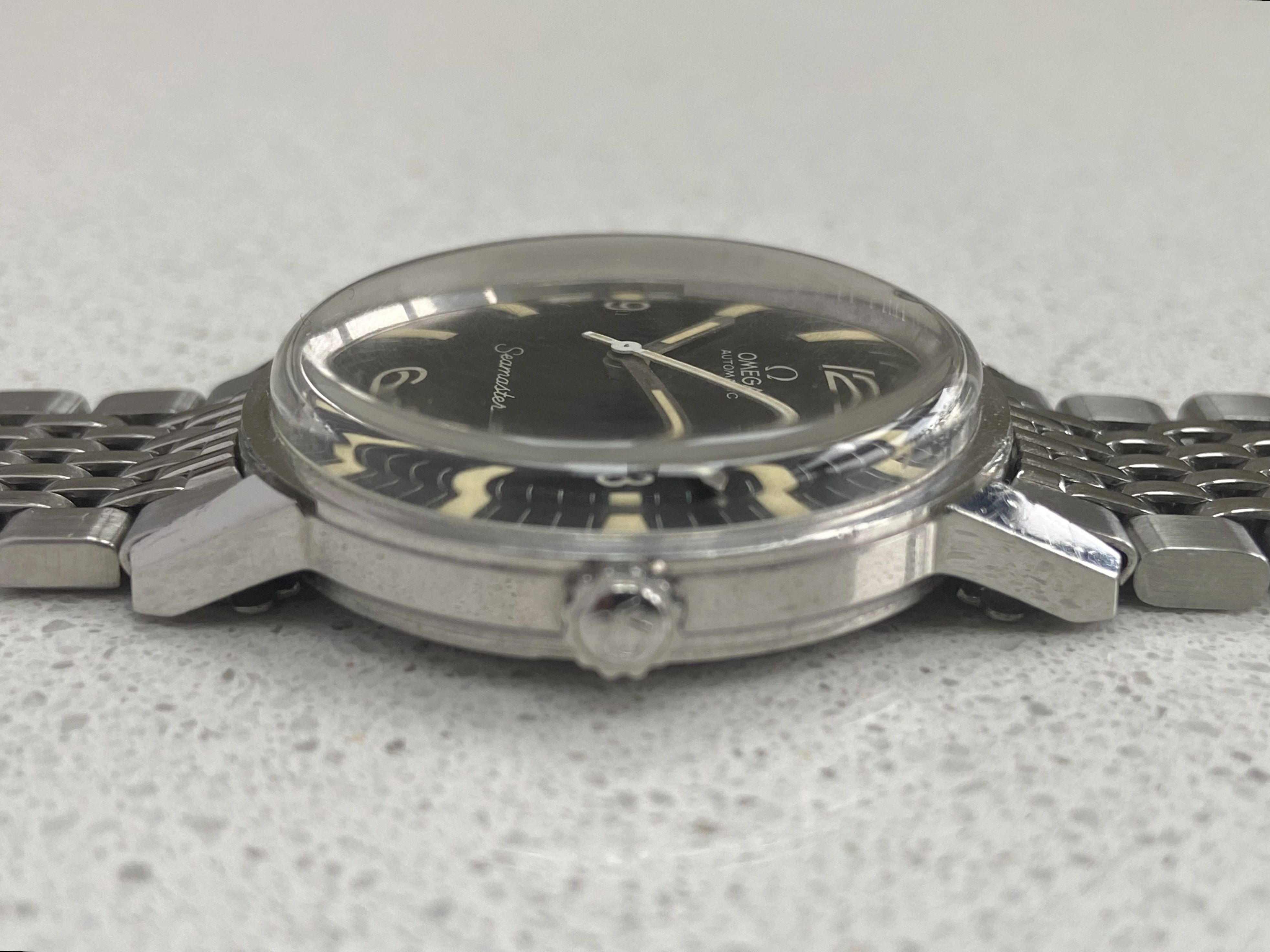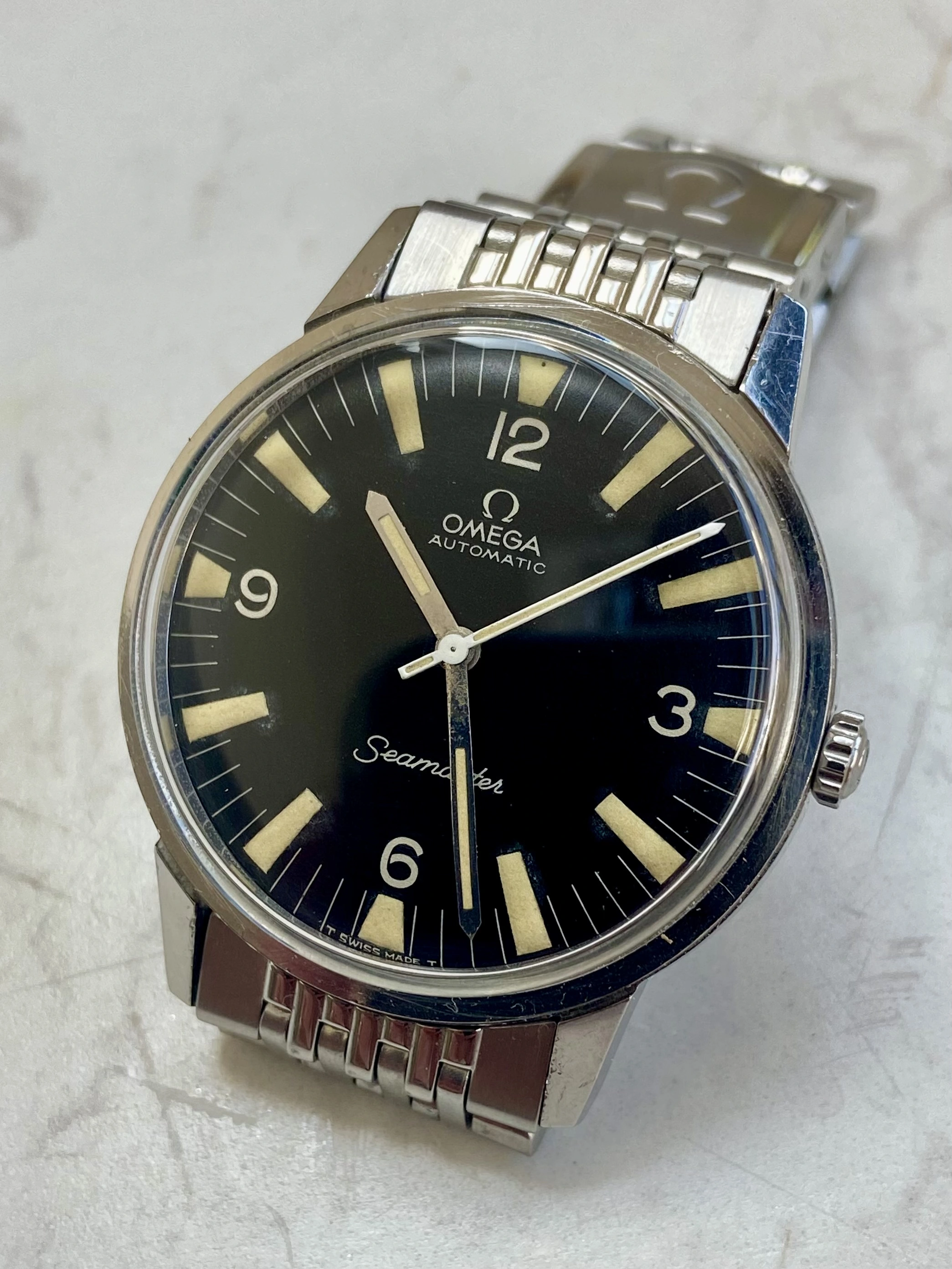 ·My 2025 Seamaster sell off continues. Here we have an uncommon Seamaster ‘300 Companion’, so called as it has a very similar layout to the Seamaster 300, This one also has the rare, fully lumed seconds hand. These Seamaster 300 Companions are very hard to find in any configuration, but those with the lumed second hand are the hardest to find. This one has been relumed so looks wonderful and all parts are correct and original.