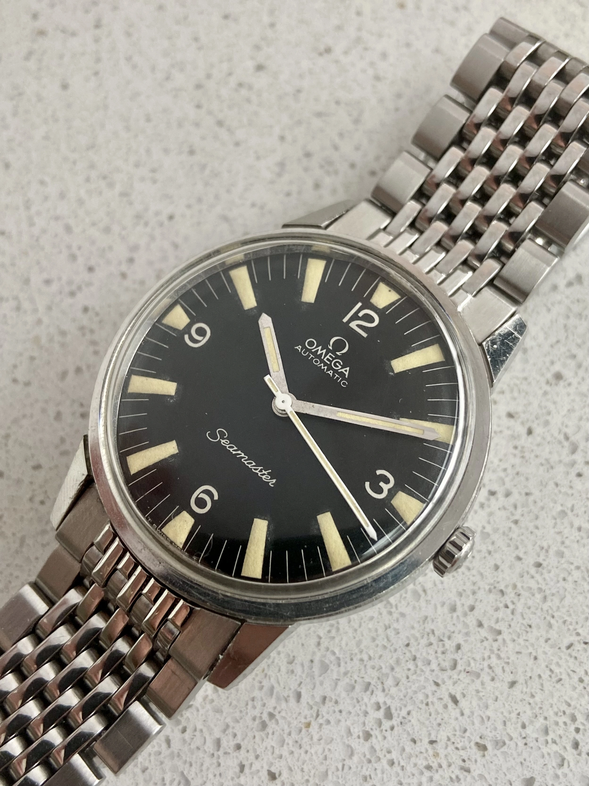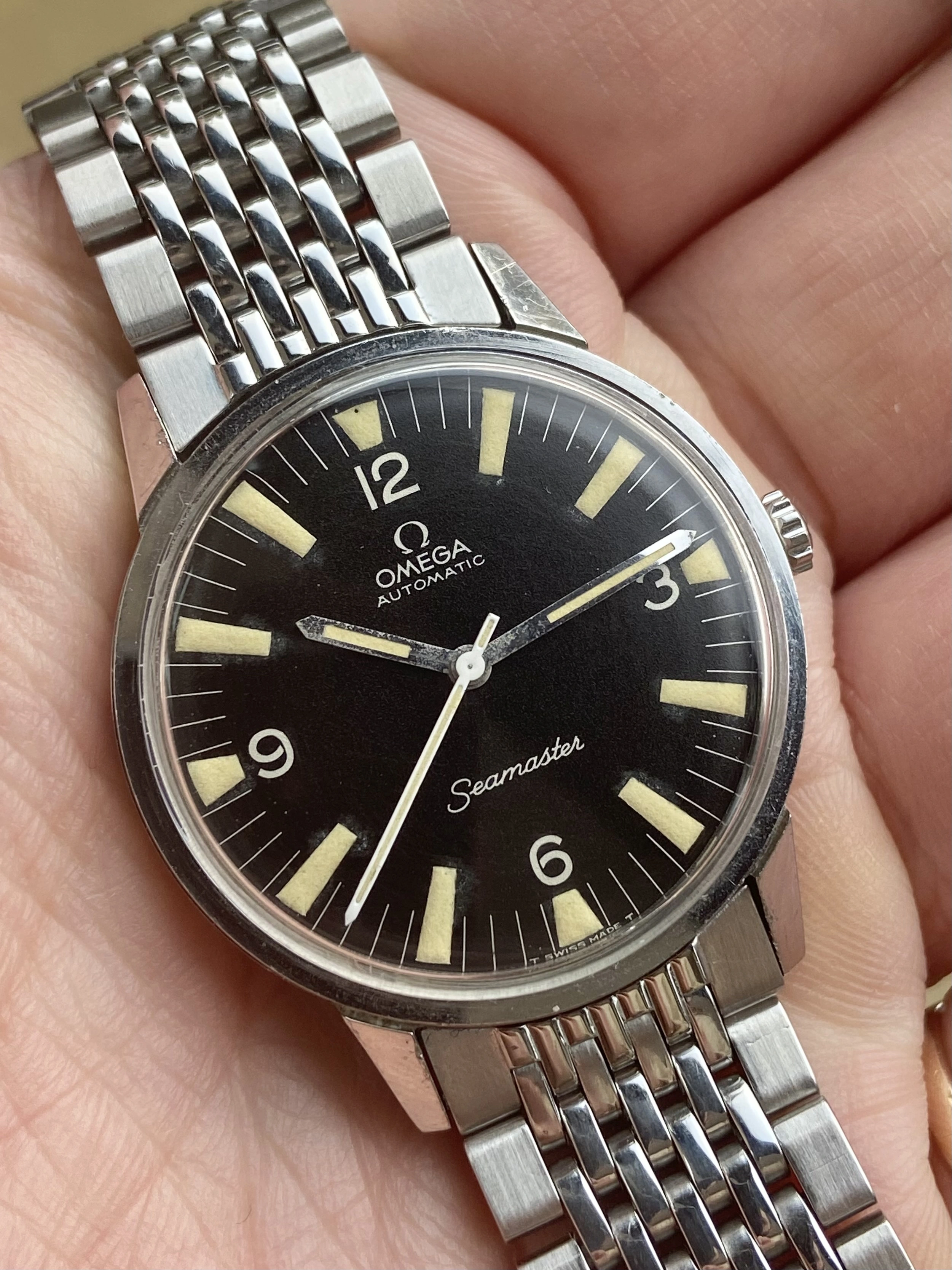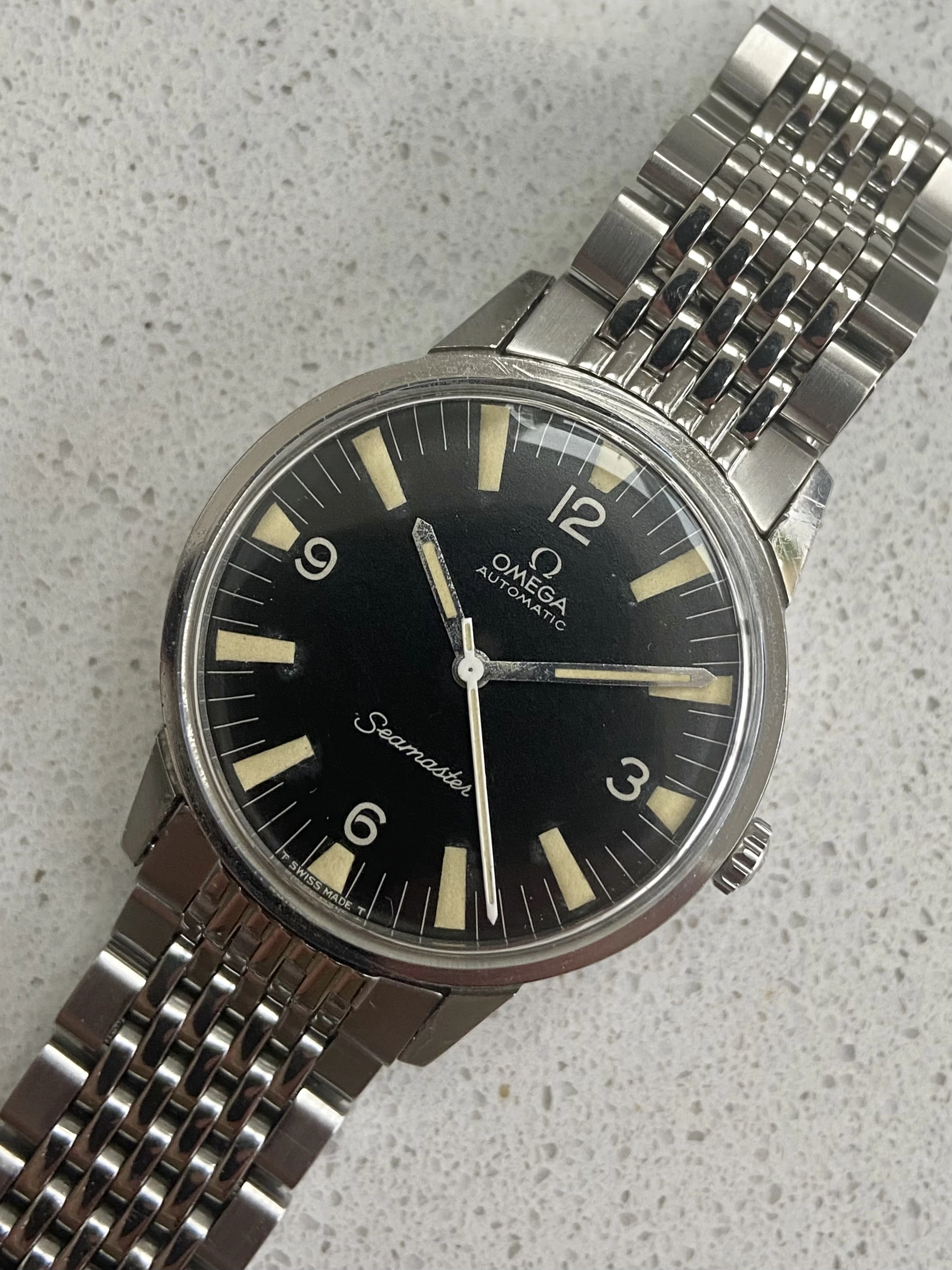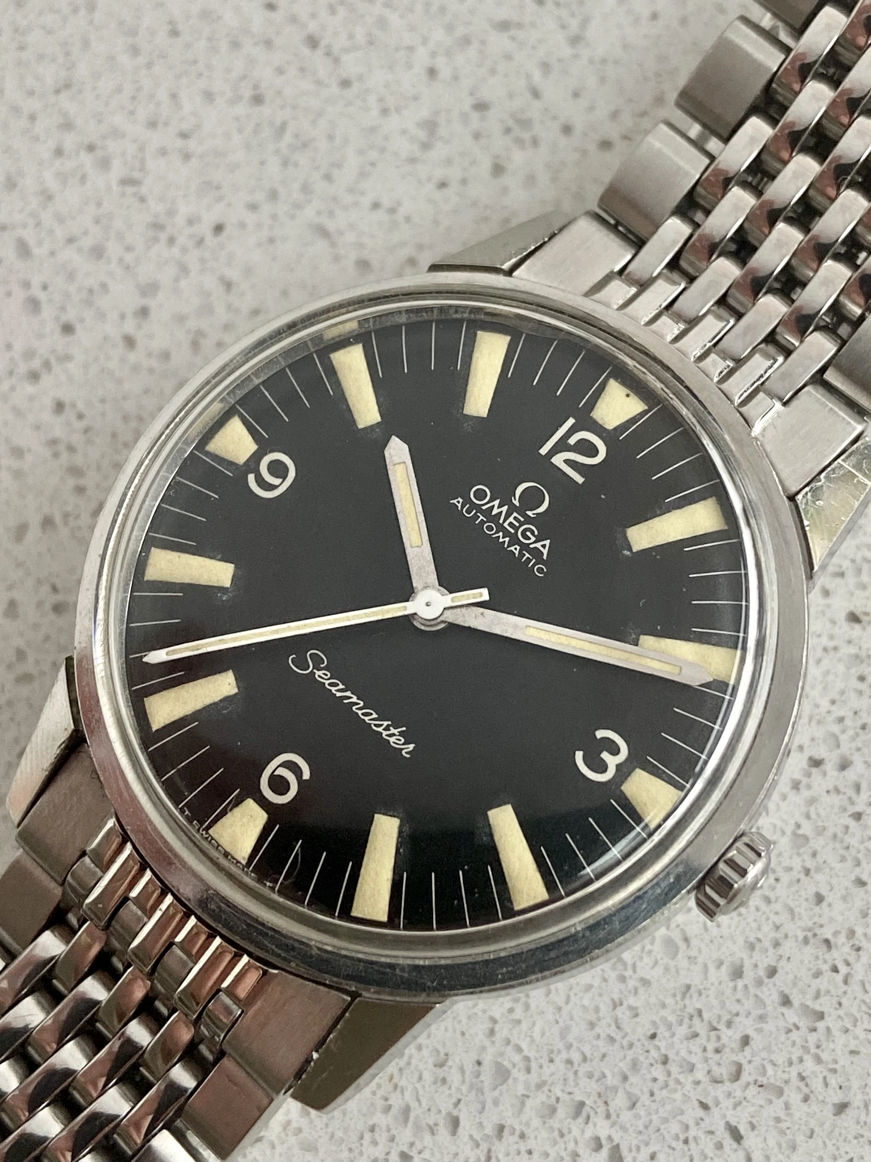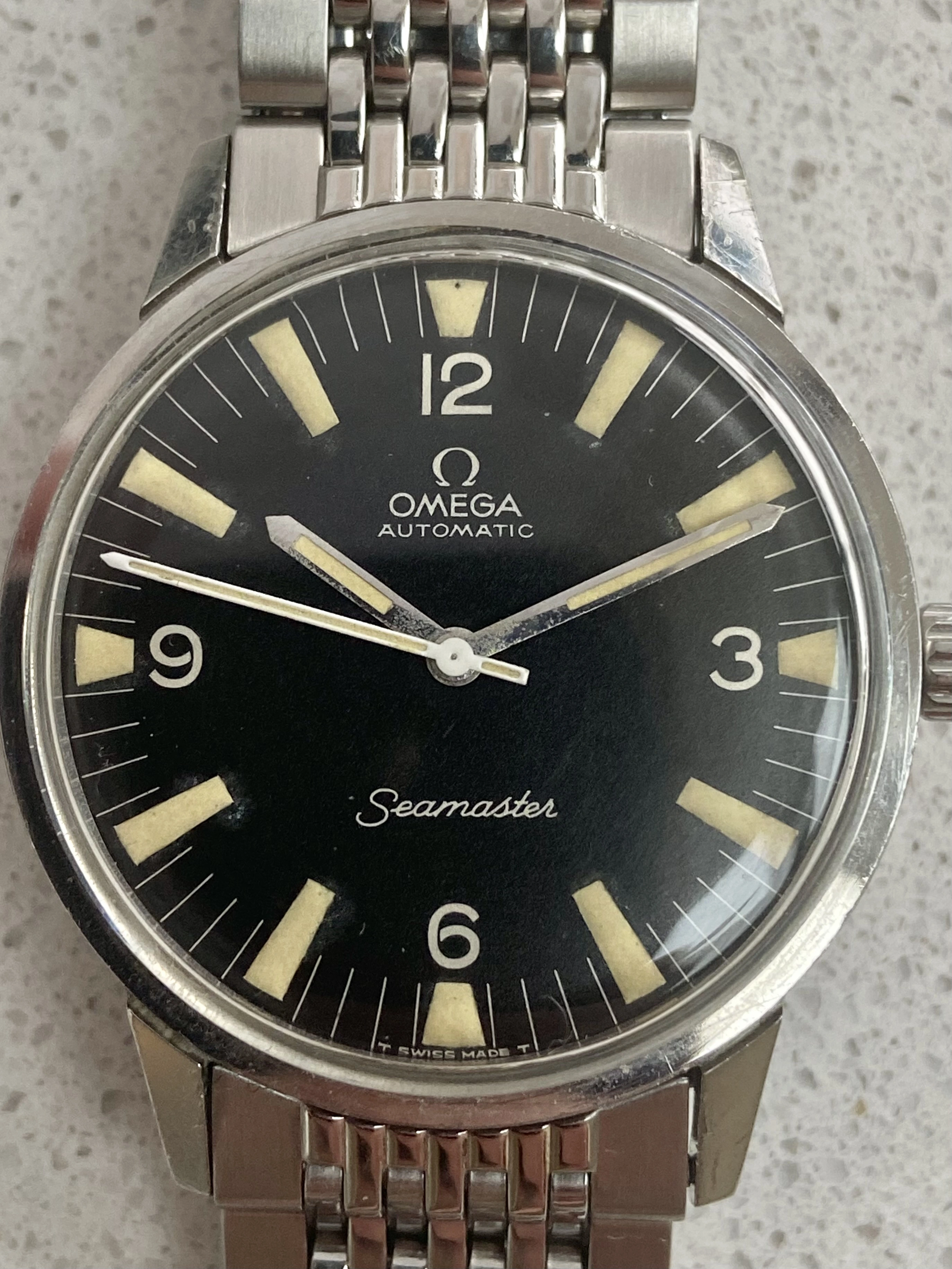 ·My 2025 Seamaster sell off continues. Here we have an uncommon Seamaster ‘300 Companion’, so called as it has a very similar layout to the Seamaster 300, This one also has the rare, fully lumed seconds hand. These Seamaster 300 Companions are very hard to find in any configuration, but those with the lumed second hand are the hardest to find. This one has been relumed so looks wonderful and all parts are correct and original.
