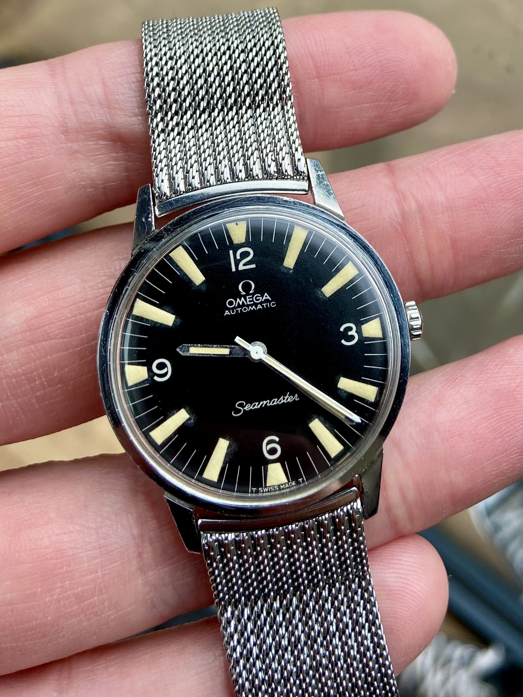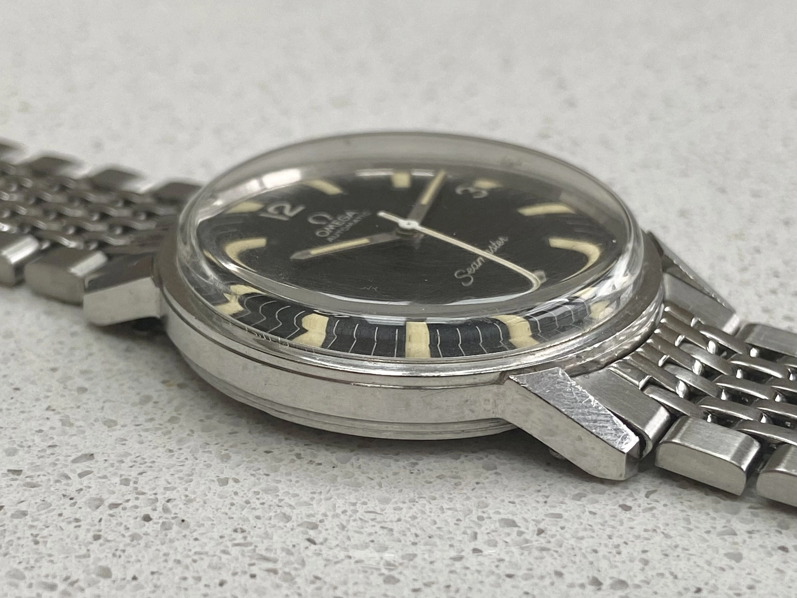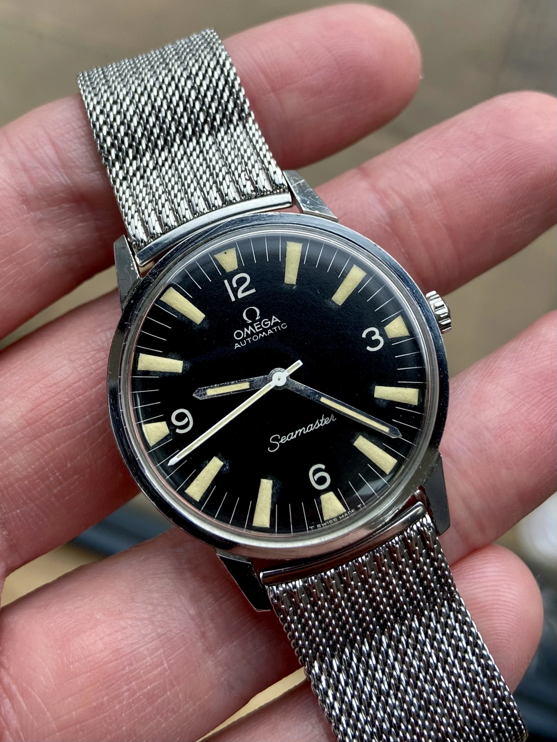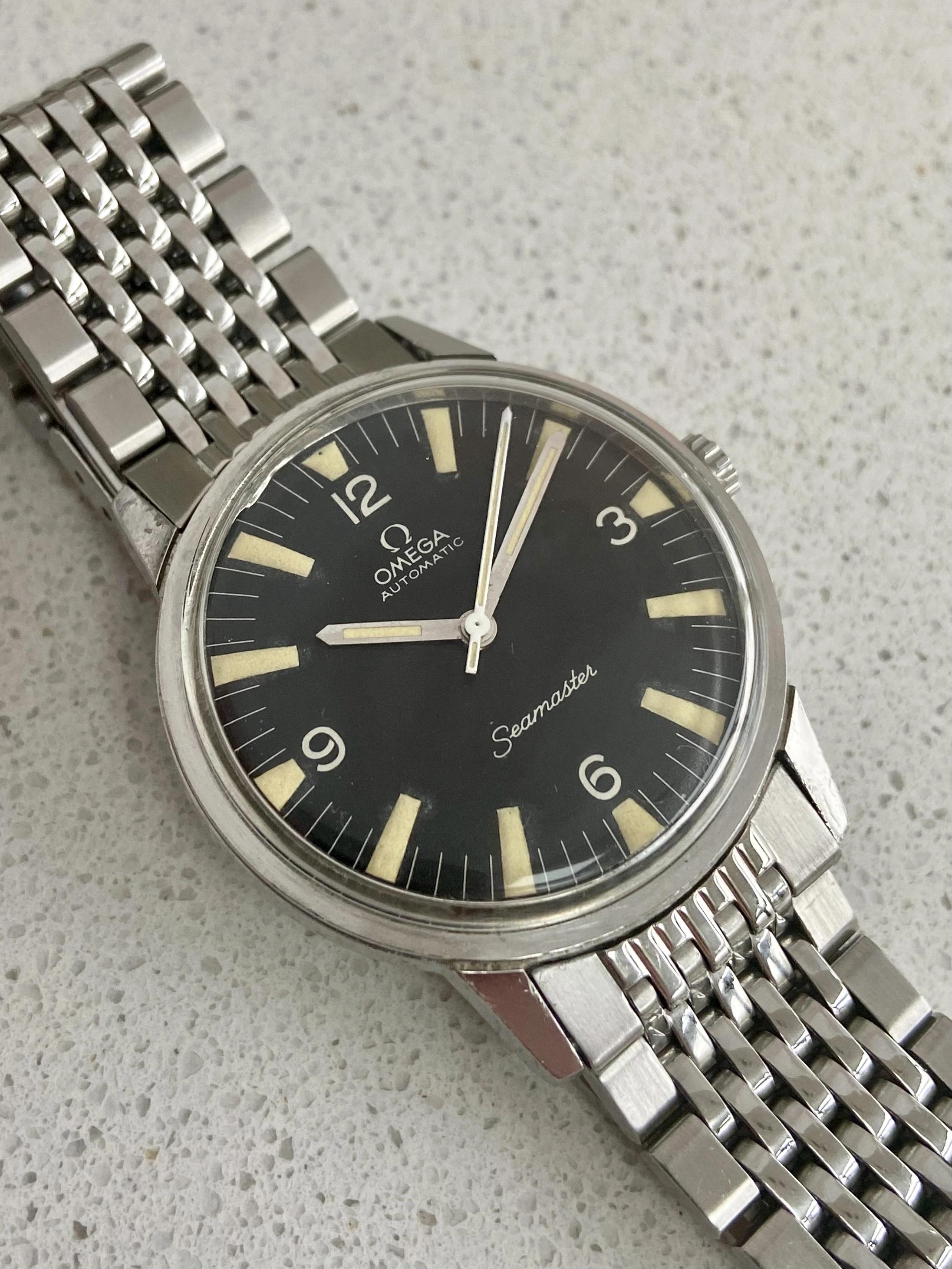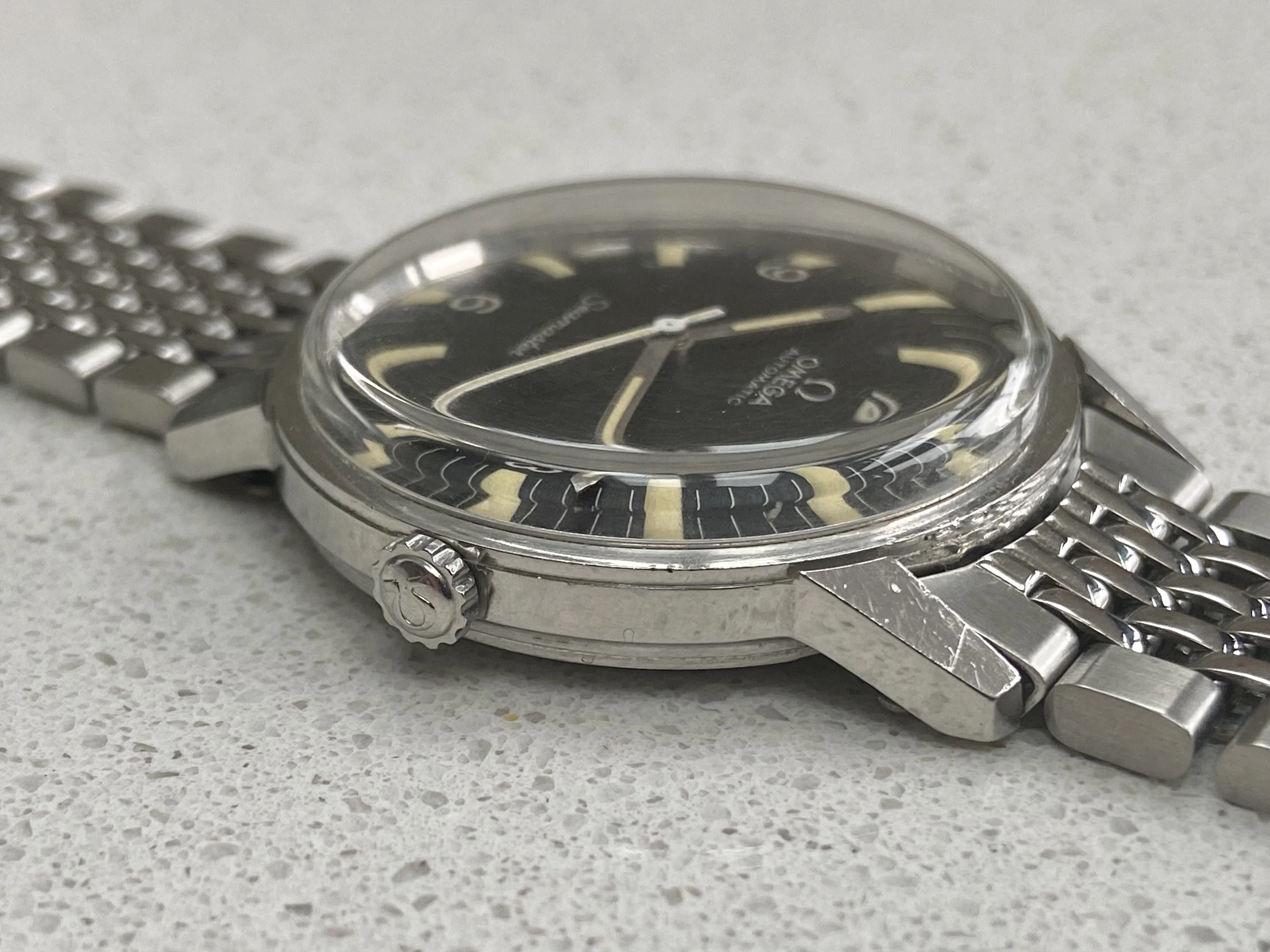 ·My 2025 Seamaster sell off continues. Here we have an uncommon Seamaster ‘300 Companion’, so called as it has a very similar layout to the Seamaster 300, This one also has the rare, fully lumed seconds hand. These Seamaster 300 Companions are very hard to find in any configuration, but those with the lumed second hand are the hardest to find. This one has been relumed so looks wonderful and all parts are correct and original.