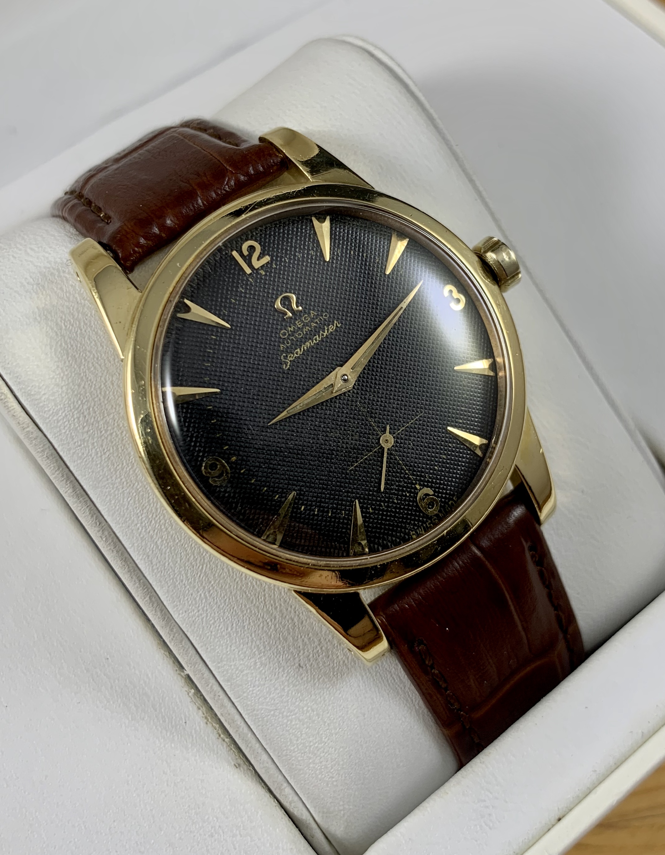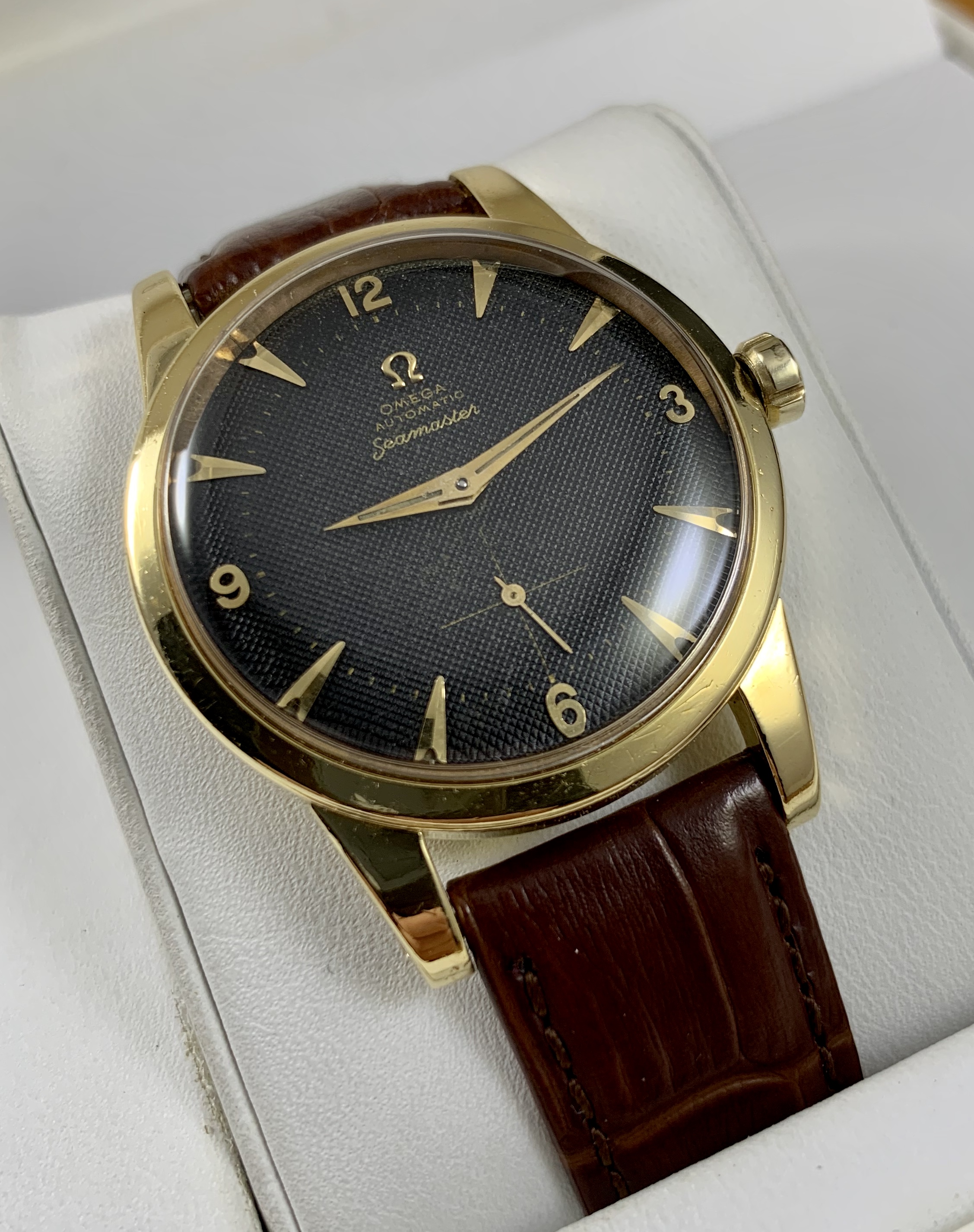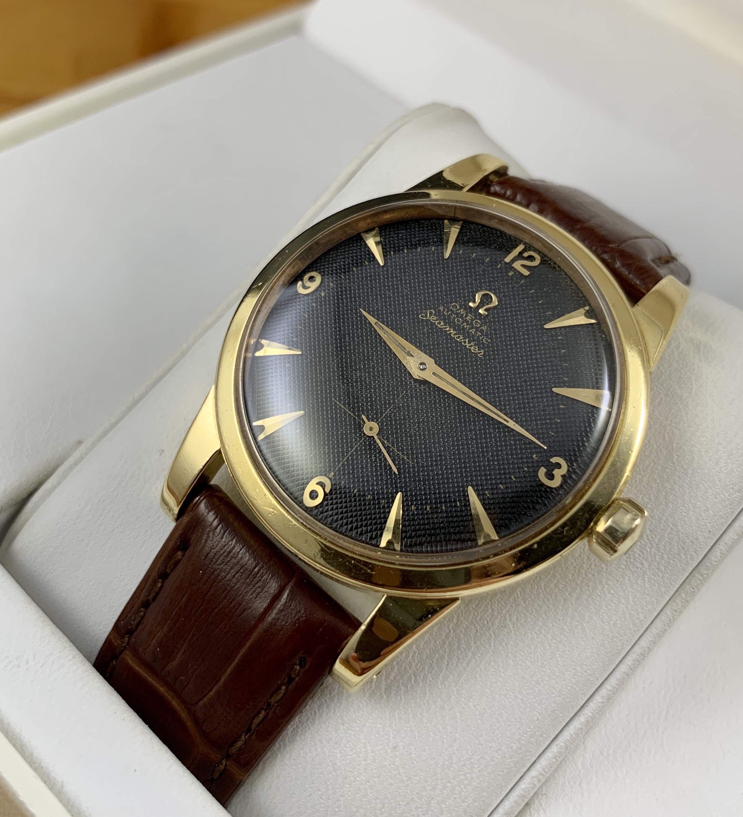 This beauty hasn’t been getting much wrist time. It’s a fantastic early Seamaster with a black waffle dial.
