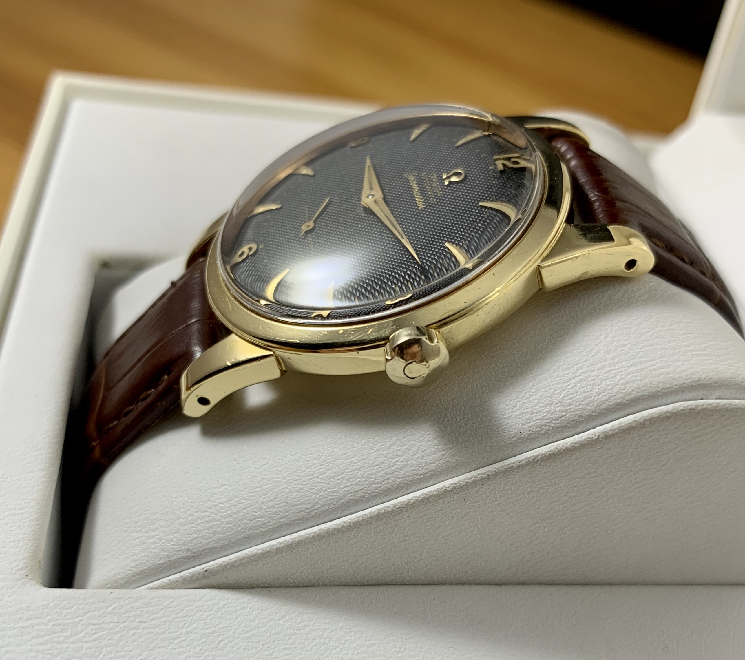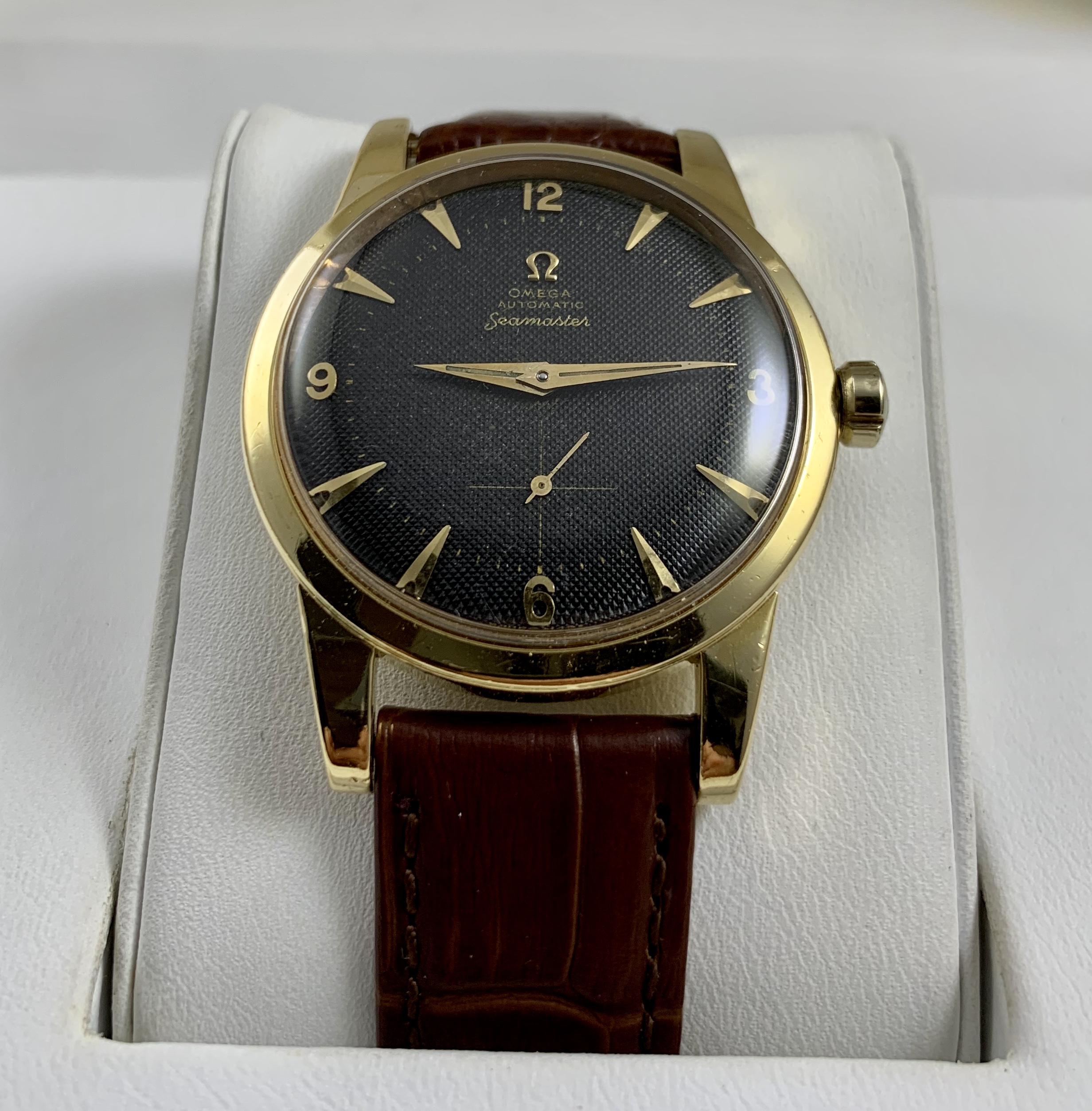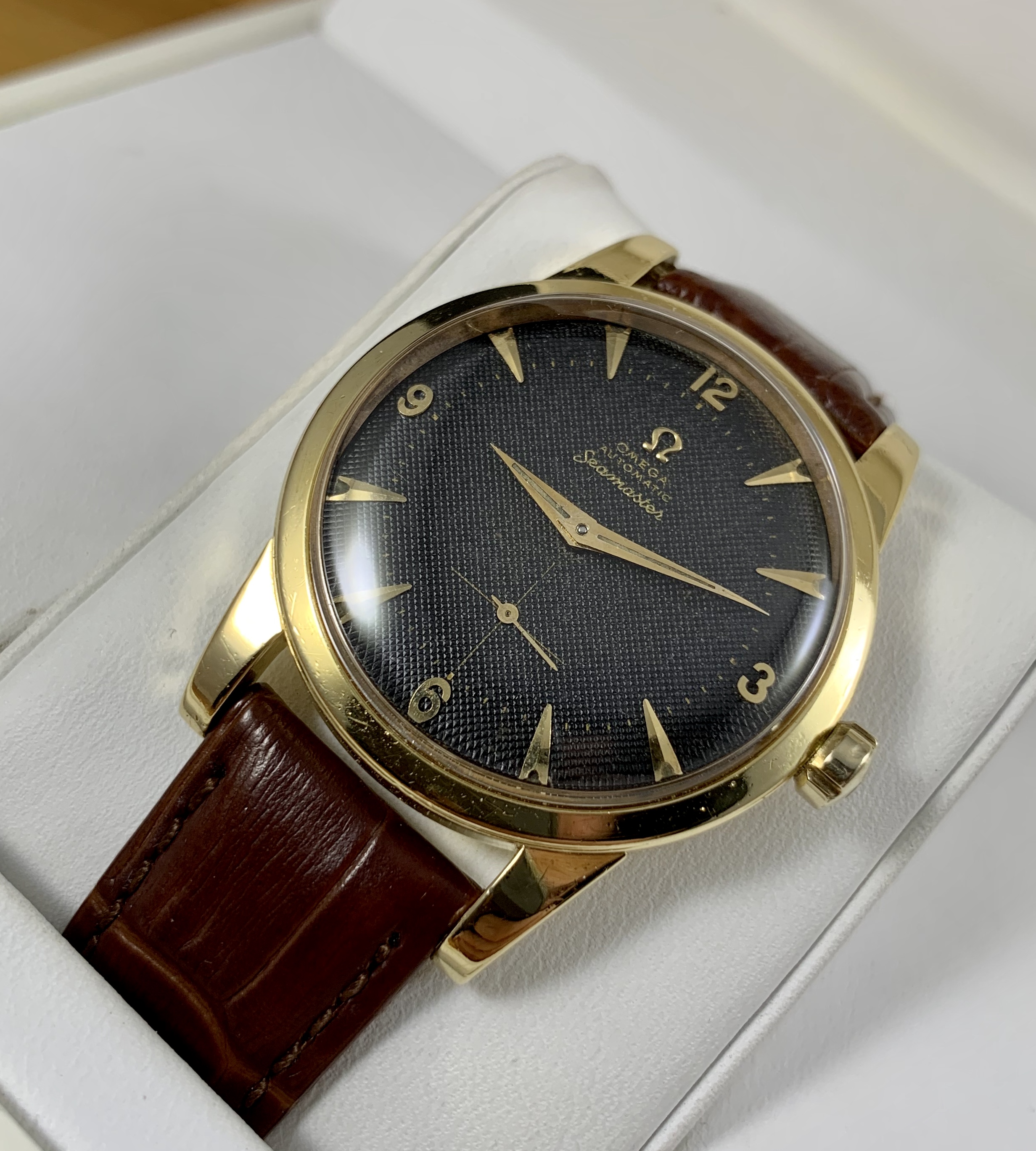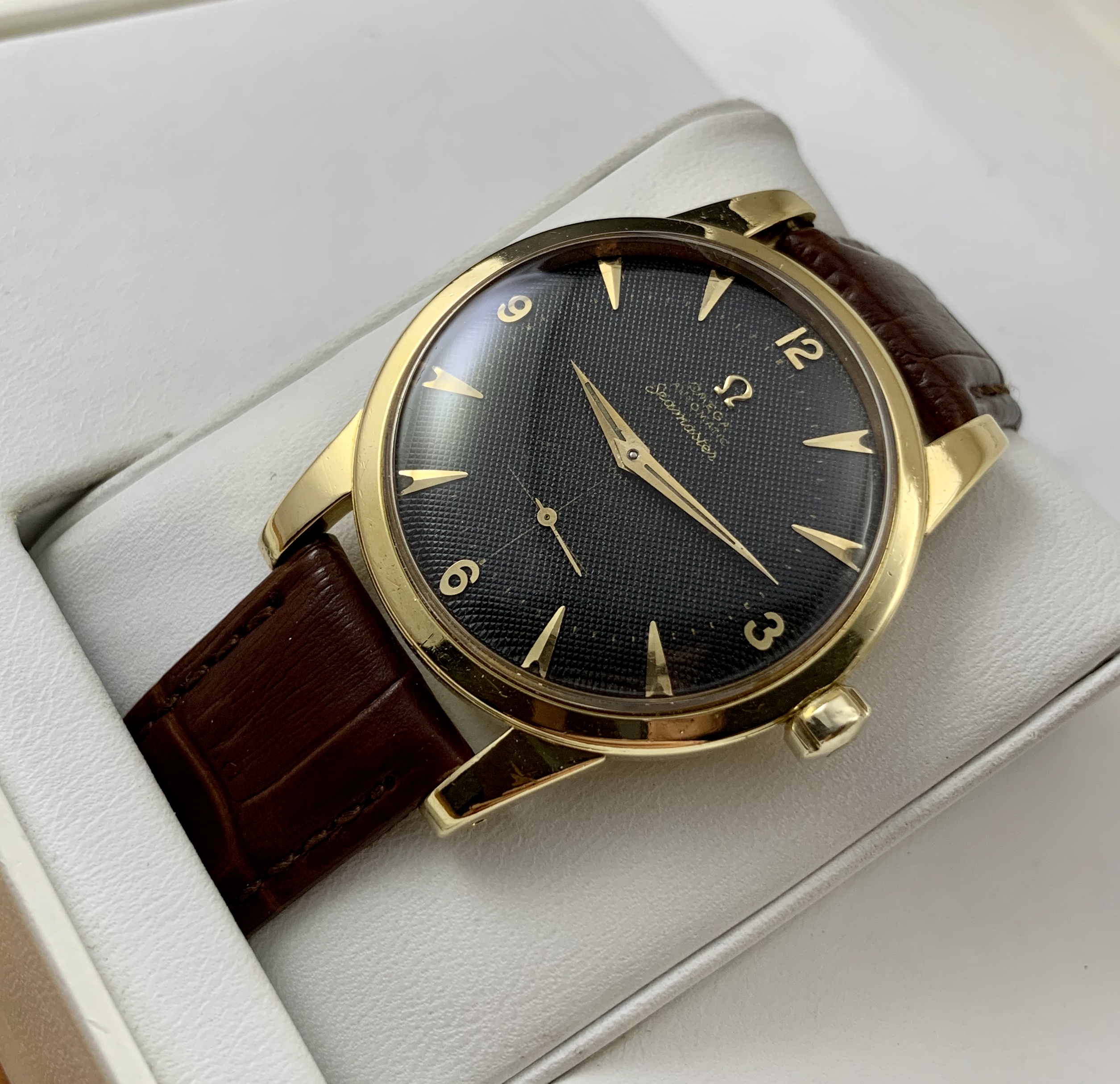This beauty hasn’t been getting much wrist time. It’s a fantastic early Seamaster with a black waffle dial.