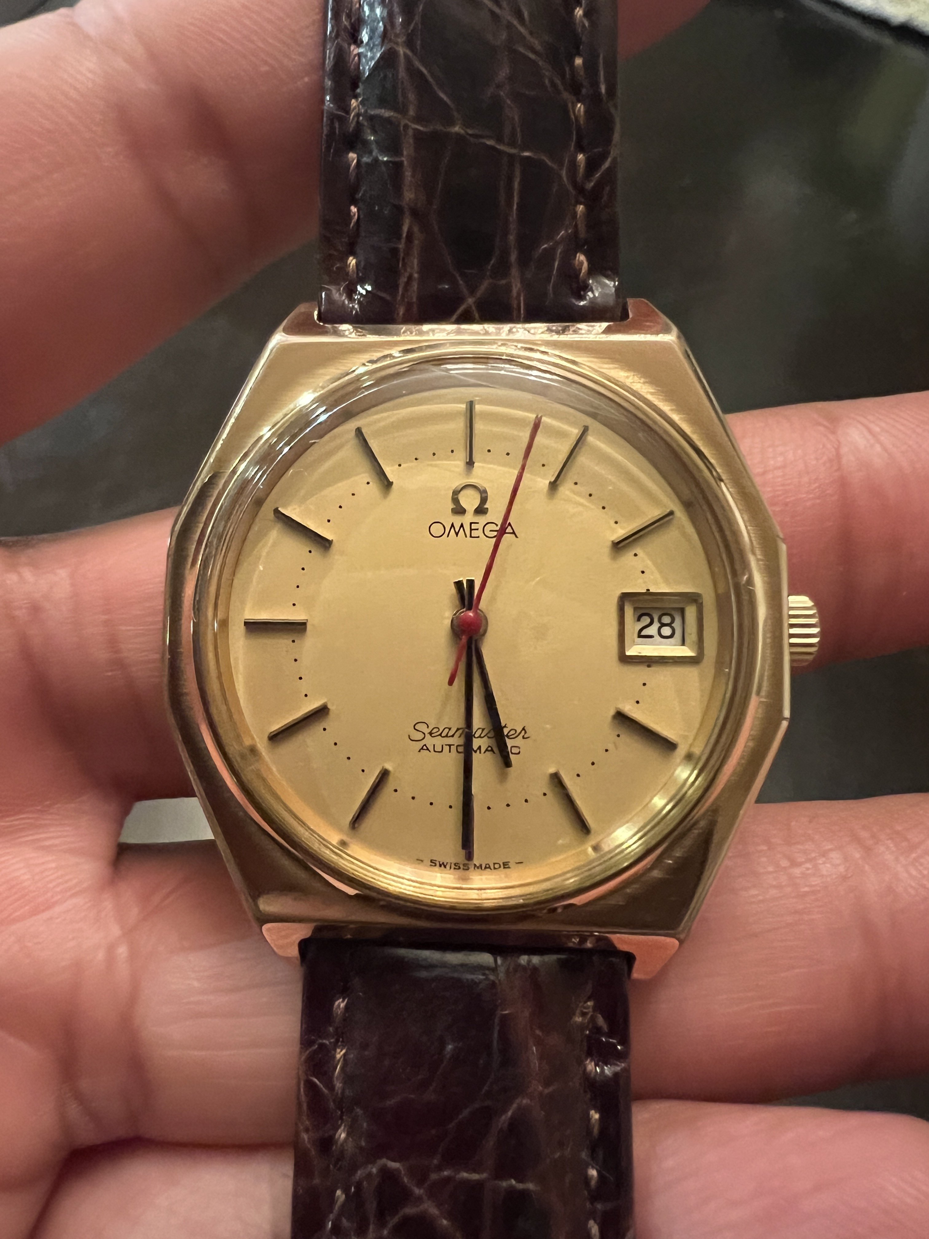 ·Hello everyone, I’m pretty new to the omega world. Just wanted some info on this piece I recently bought. I bought the watch alone with no band for a little over $400 and was told everything is original minus the seconds hand and it’s gold filled. I added a custom strap to it and here are some photos I have of the piece. Does it look authentic and if anybody knows more Info I’d appreciate it!
