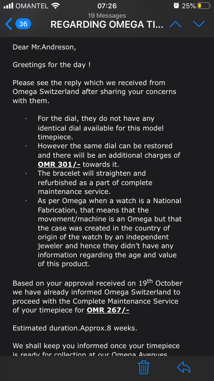 Omega shop and HQ have said they wouldn’t repair if fake. I’m sure that’s True right?