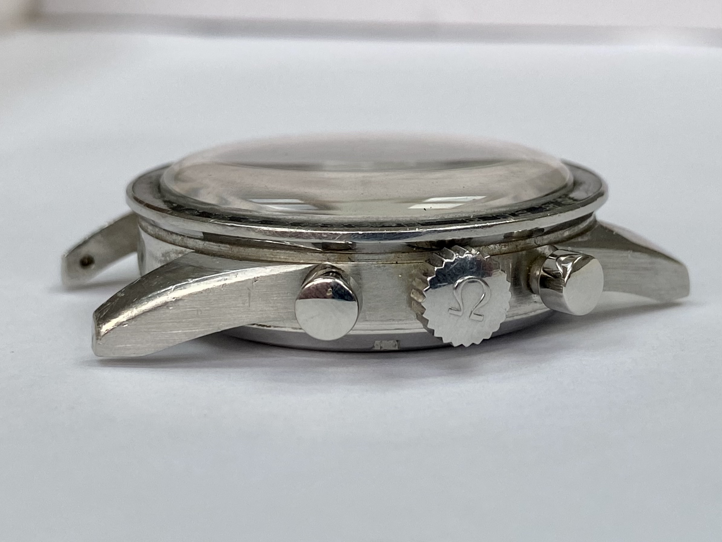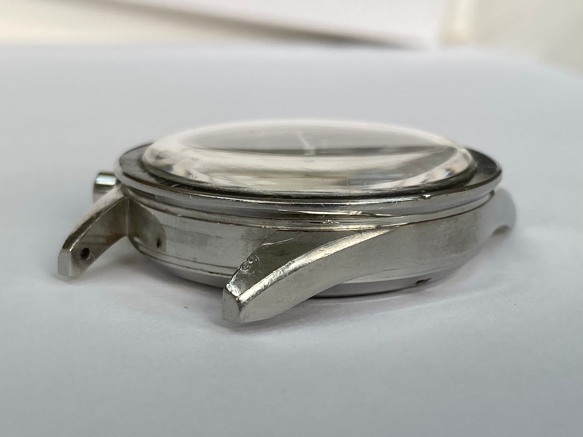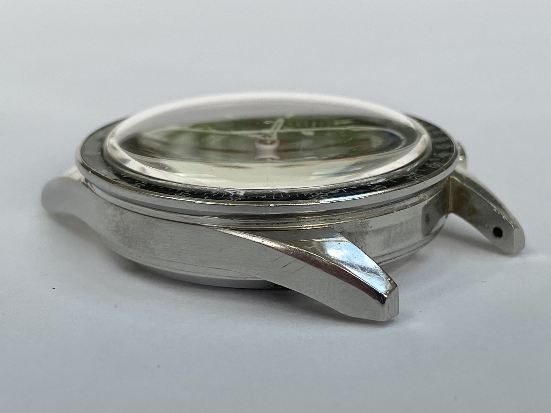 Original stainless steel straight lug case in very good unpolished condition, with surface wear as to be expected. No corrosion or damage. Never been polished or restored and retains thick lugs with the original brushed sides, polished tops and strong facets the -65’s are known for.