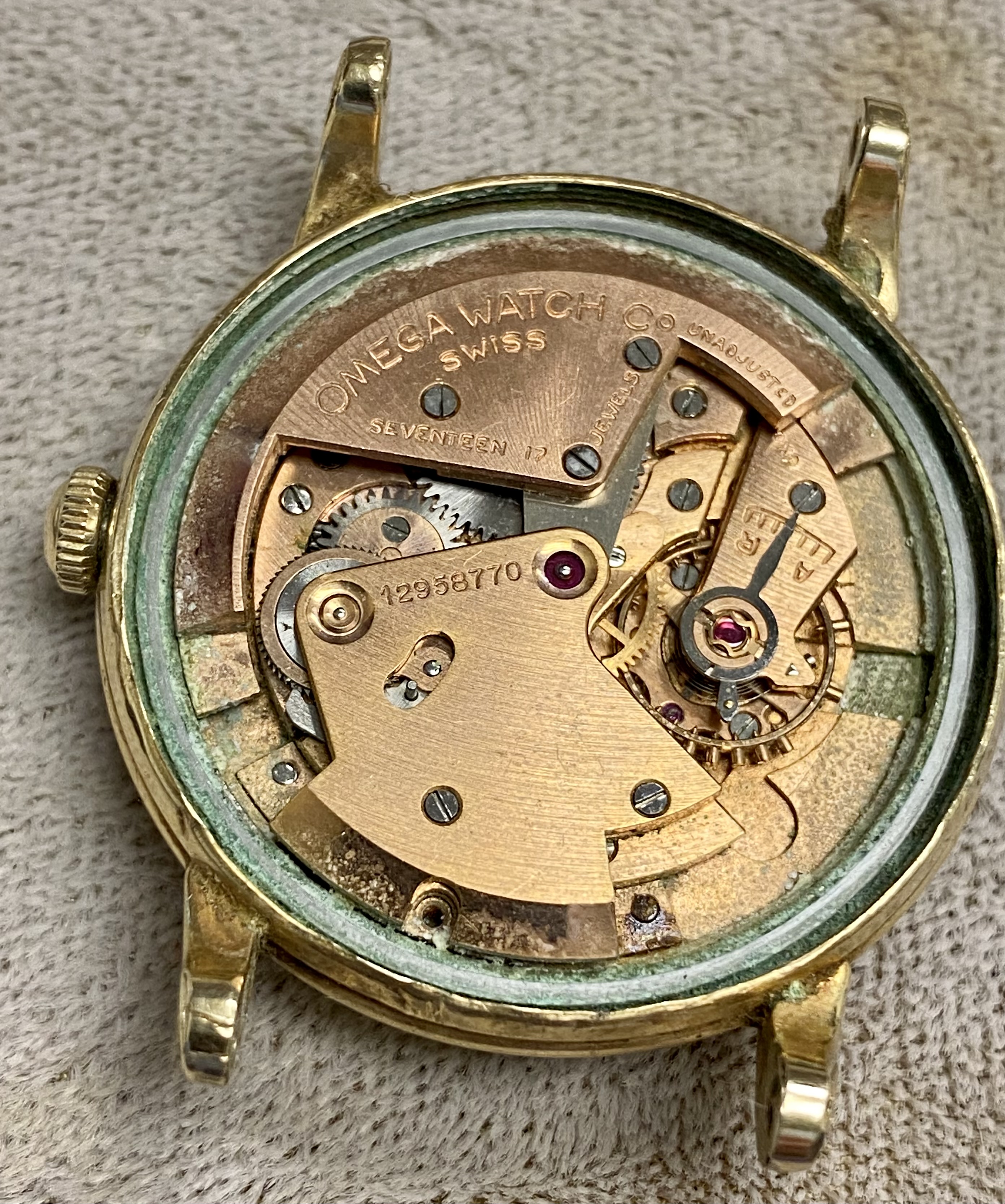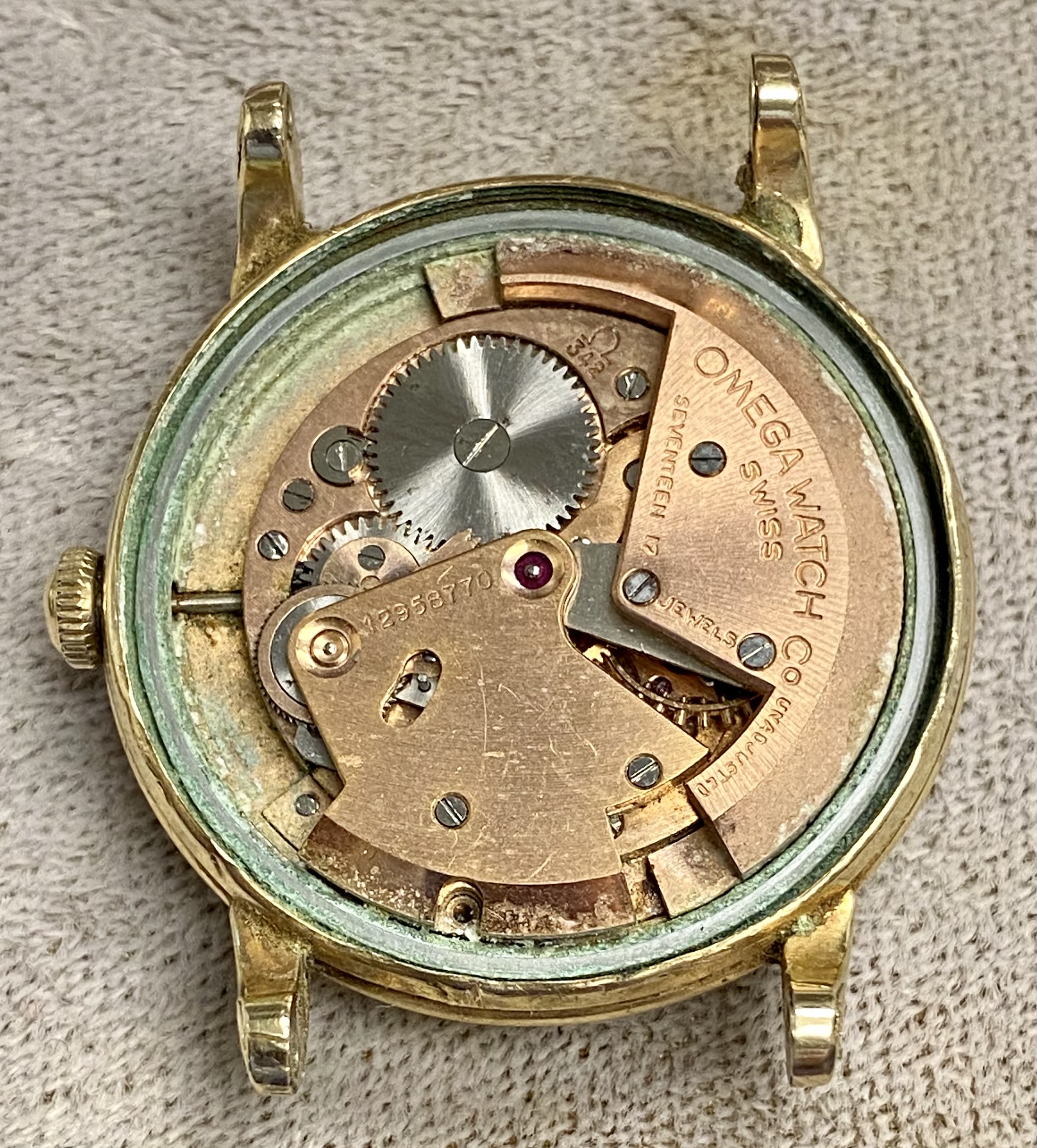 ·Hi, I just purchased this Omega watch. Looks to be in decent condition. Looks like someone replaced the stem with a Bulova one. And part of the back case has some wear around the edges.