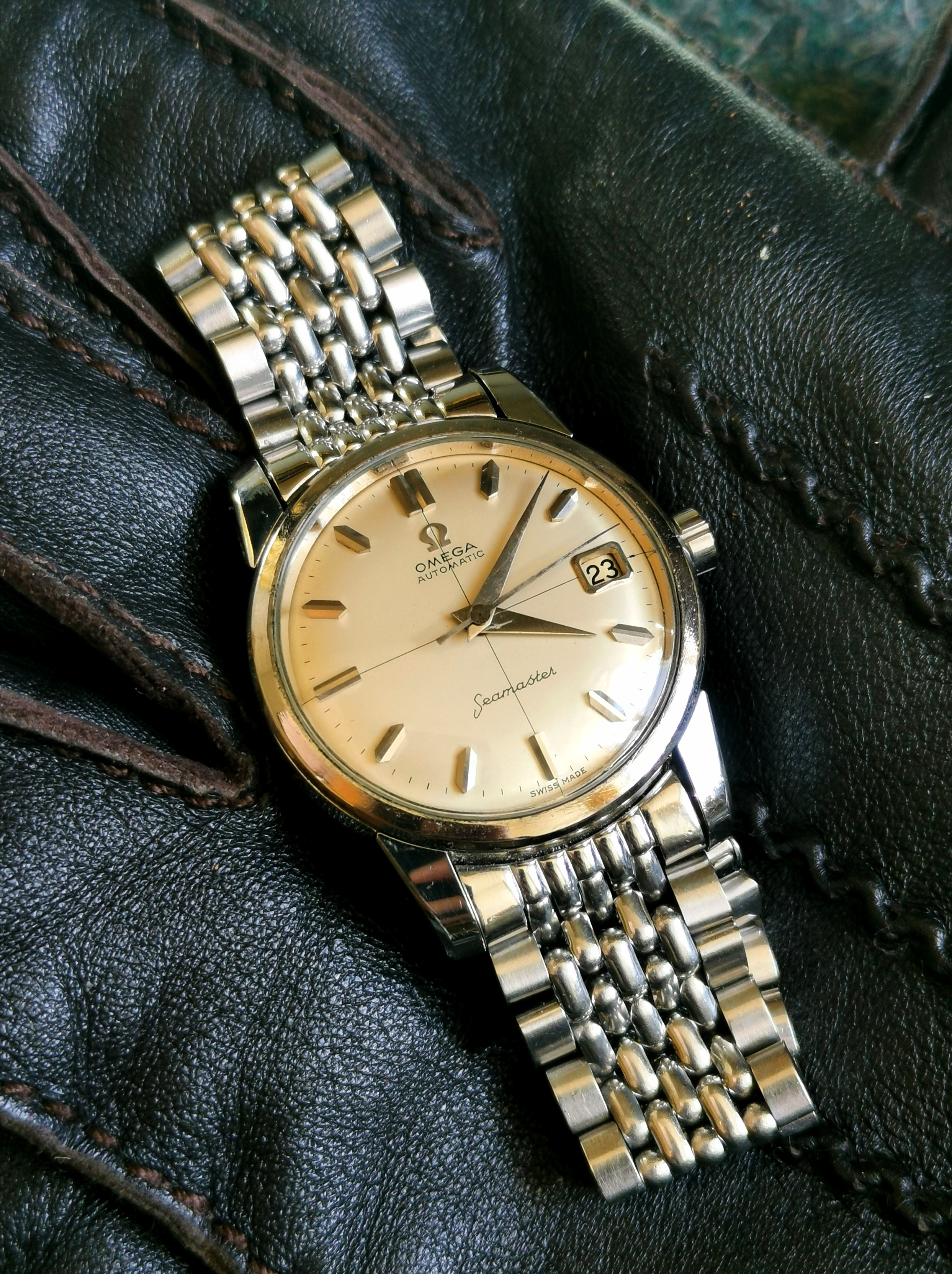 路Hello Omega Forum! Hoping to get some help in finding a Vintage Omega watch with a Salmon Dial, does anybody know the model and/or model number when Omega produced a Salmon dial watch? Have had trouble finding information about one online. Had saw one a year ago in a video of what looked like a Omega Seamaster or Omega DeVille with a Salmon dial but was hard to tell if it was a Salmon dial or from patina. Any help with this would be greatly appreciated. Thank you!