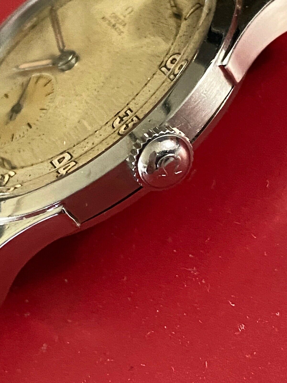 I don't see any red flags on the watch, correct hands, dial looks original with a nice patina; the crown is marked and is correct I believe; case back comes with retaining ring.