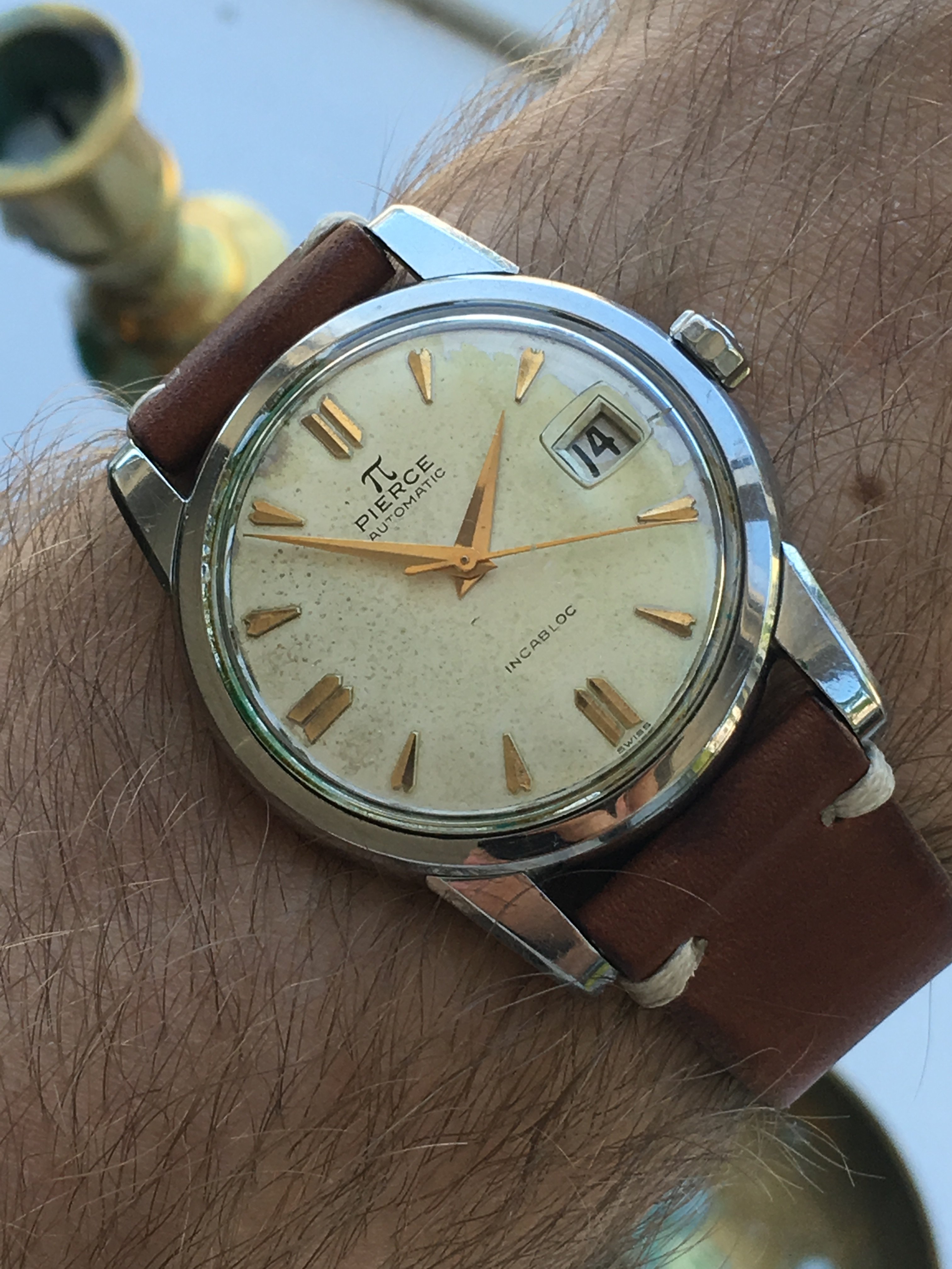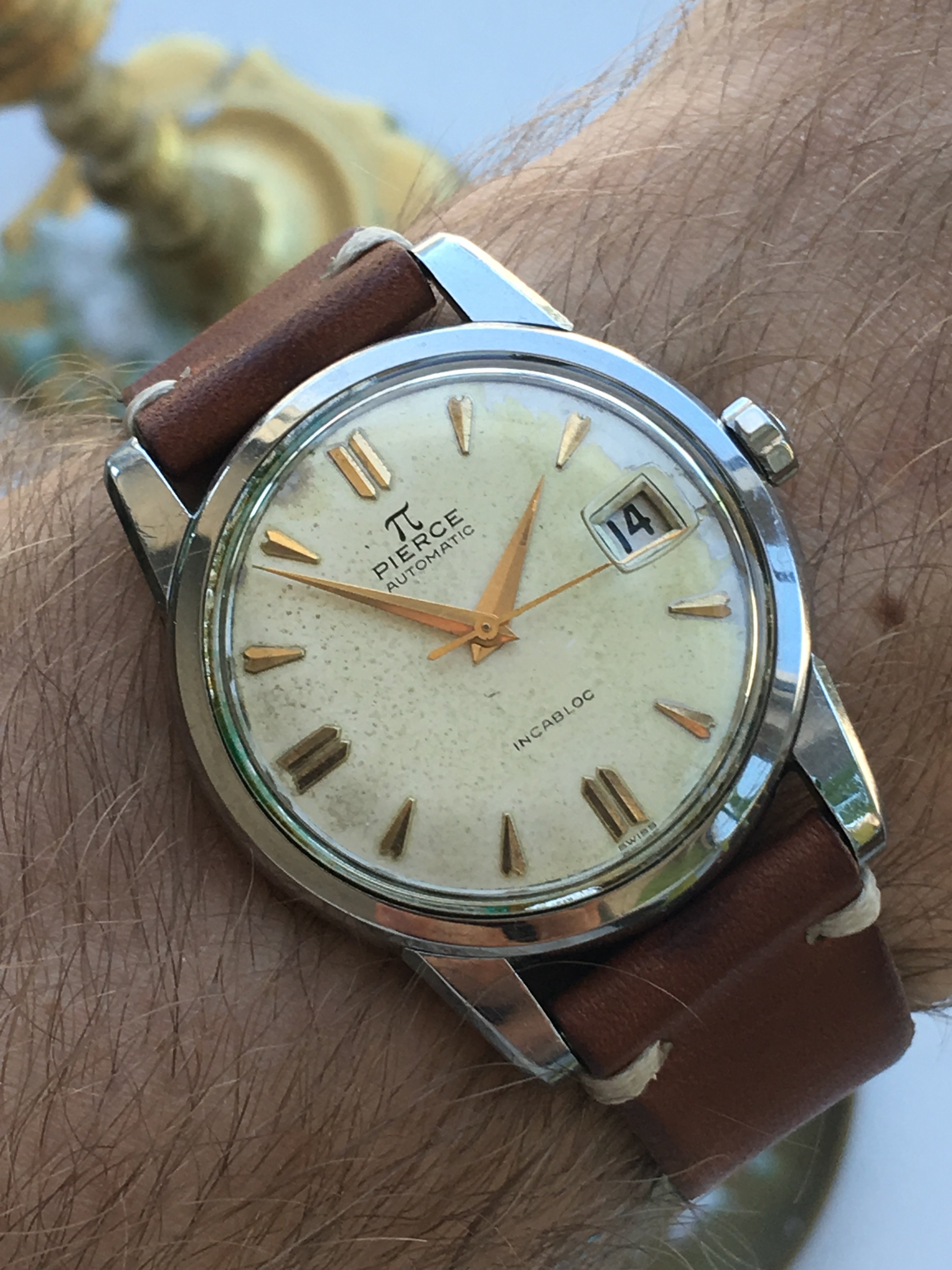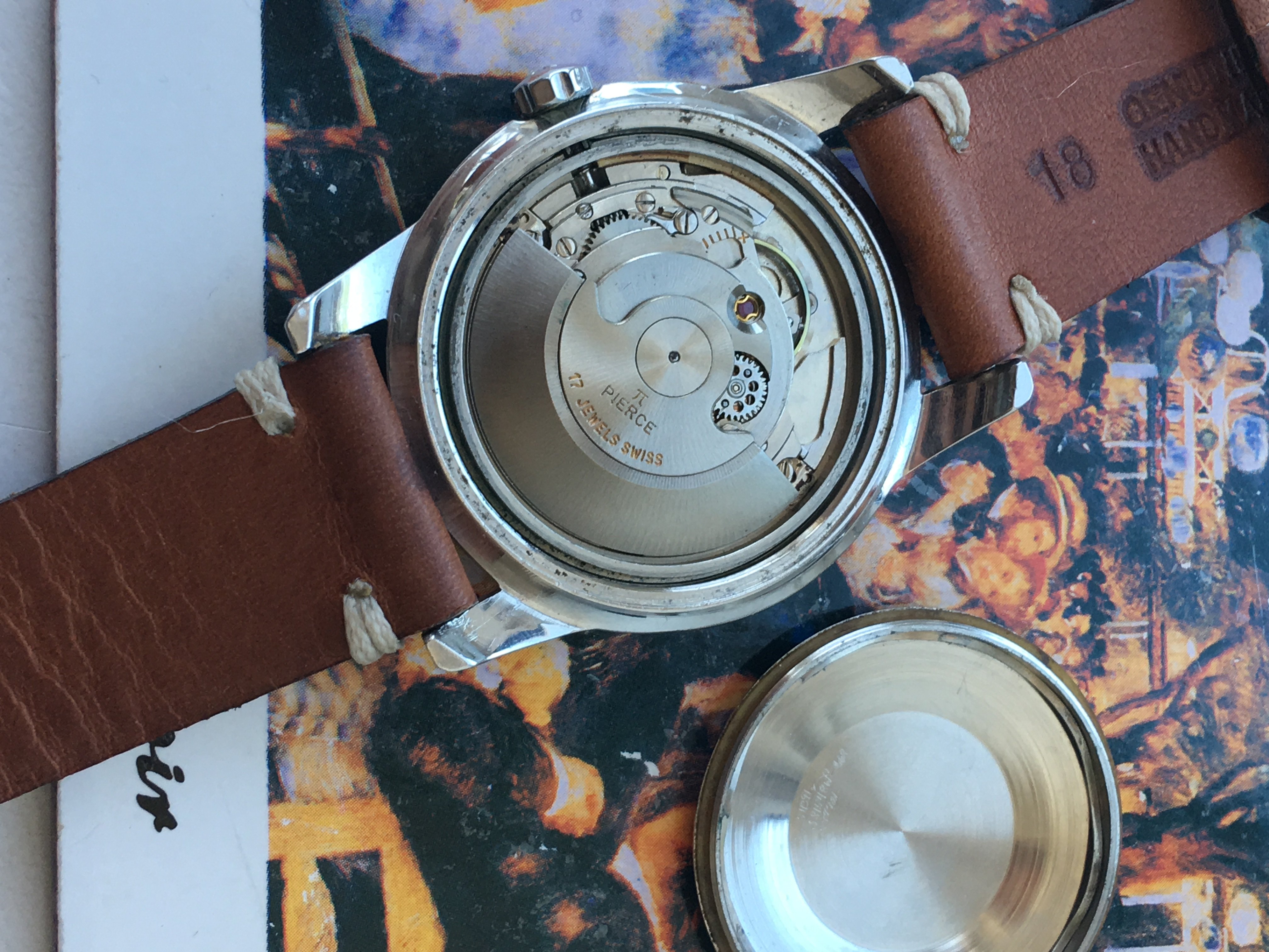 For sale today I have a very cool Pierce Automatic. As the title indicates, its clear where Pierce got there inspiration from, as the case is almost an exact copy of the classic 50's Seamaster case design 😀