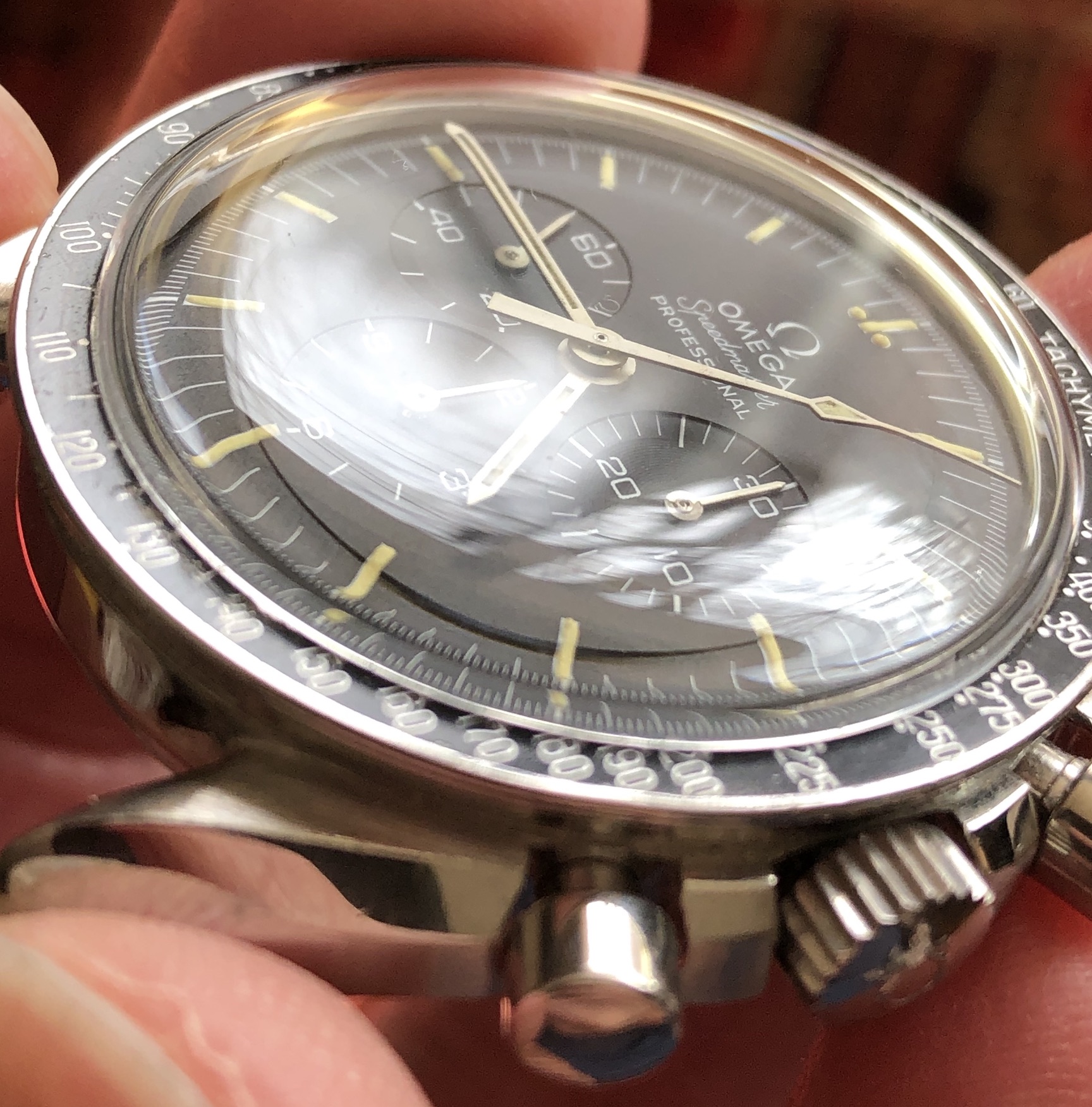 - The dial and hands are really nice. All lume glows under UV and dies off quickly. Sorry for the dust and dog hair on some photos, but the dial is unmarked. No spots, scratches, or hand drag that I can see.