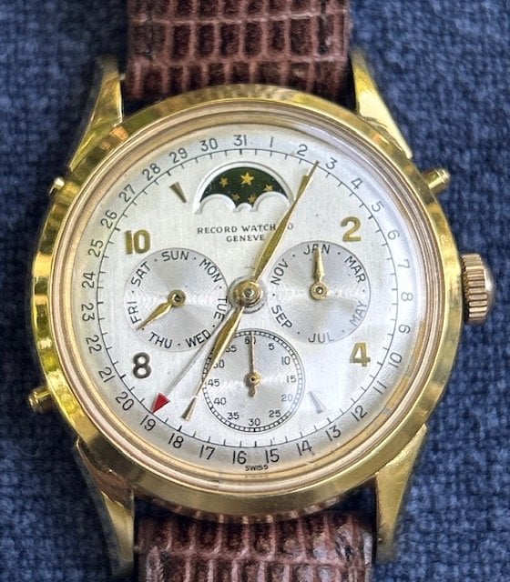 I bought this watch around 2 years ago: https://omegaforums.net/threads/vintage-record-watch-co-triple-date-moonphase-watch.153129/