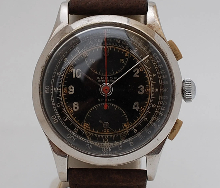 ·I always found these Venus 170 based chronographs a nice change from traditional 2 and 3 register designs. They also seem to be a relatively good value compared to other vintage chronographs. Various brands, many now defunct, utilized this movement with Breitling versions seemingly the most prized. Rodana (pre-Rodania) also appears to be among these brands. At first I thought this example was possibly a redial but now I’m not so sure after seeing the striking resemblance to the Arbor Sport version (photo from the internet). Thoughts?
