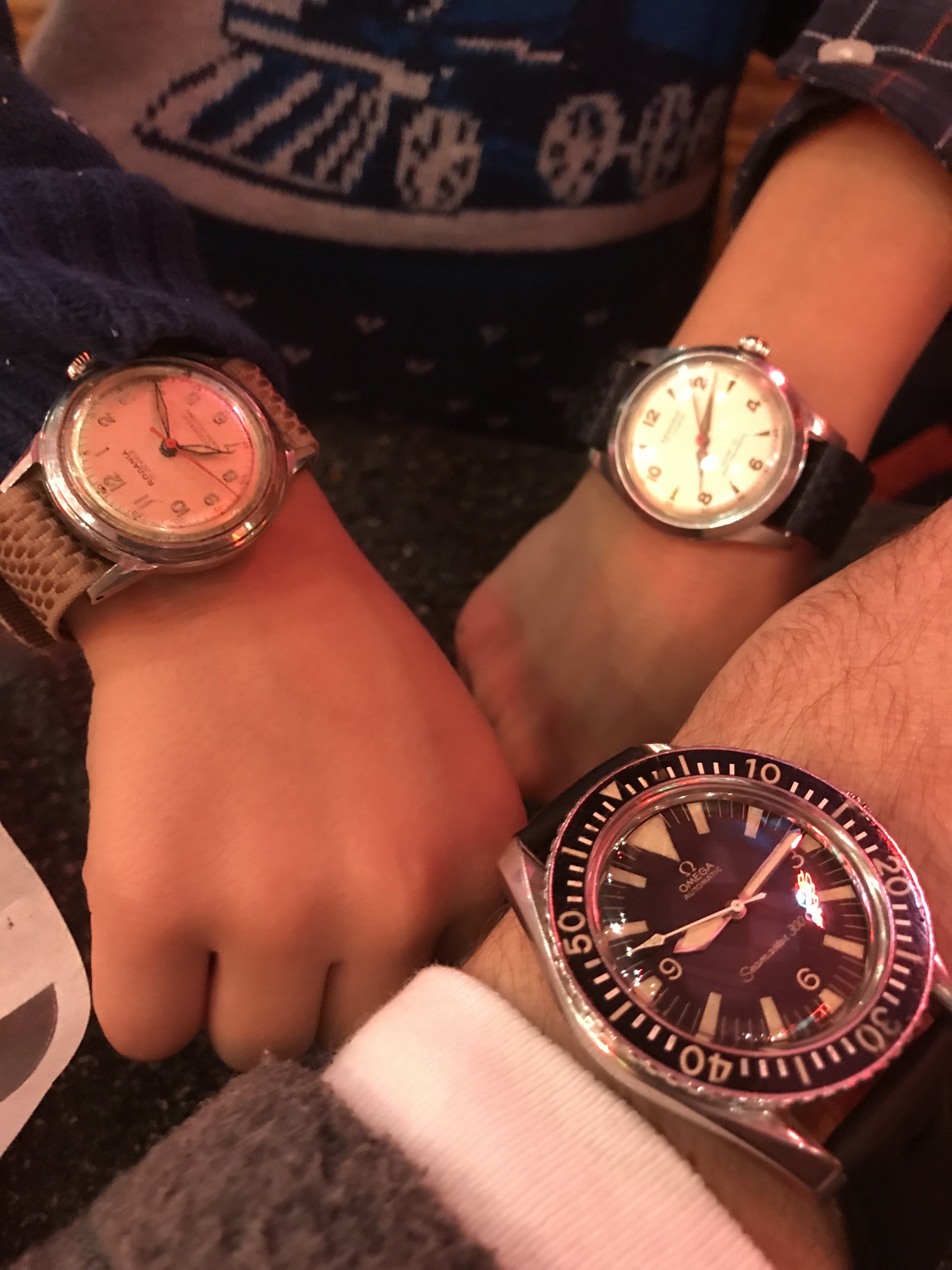 ·Hello, I had a nice little watch from a lot I purchased. I picked it up, wound it and it started running. My boys are fascinated with my obsession (errr...hobby) and were pumped to receive watches of their very own (see my poor quality photo taken at the restaurant).