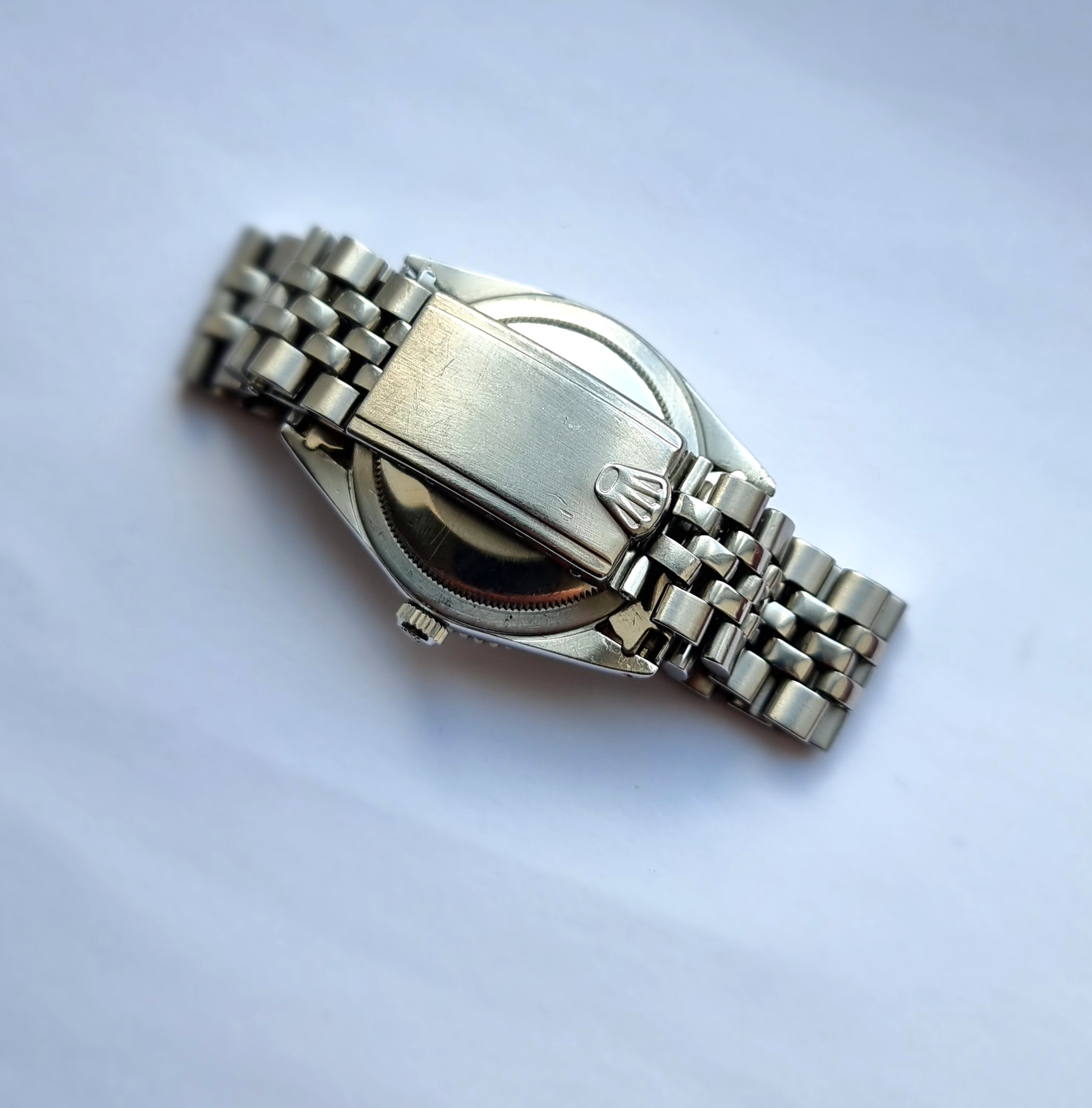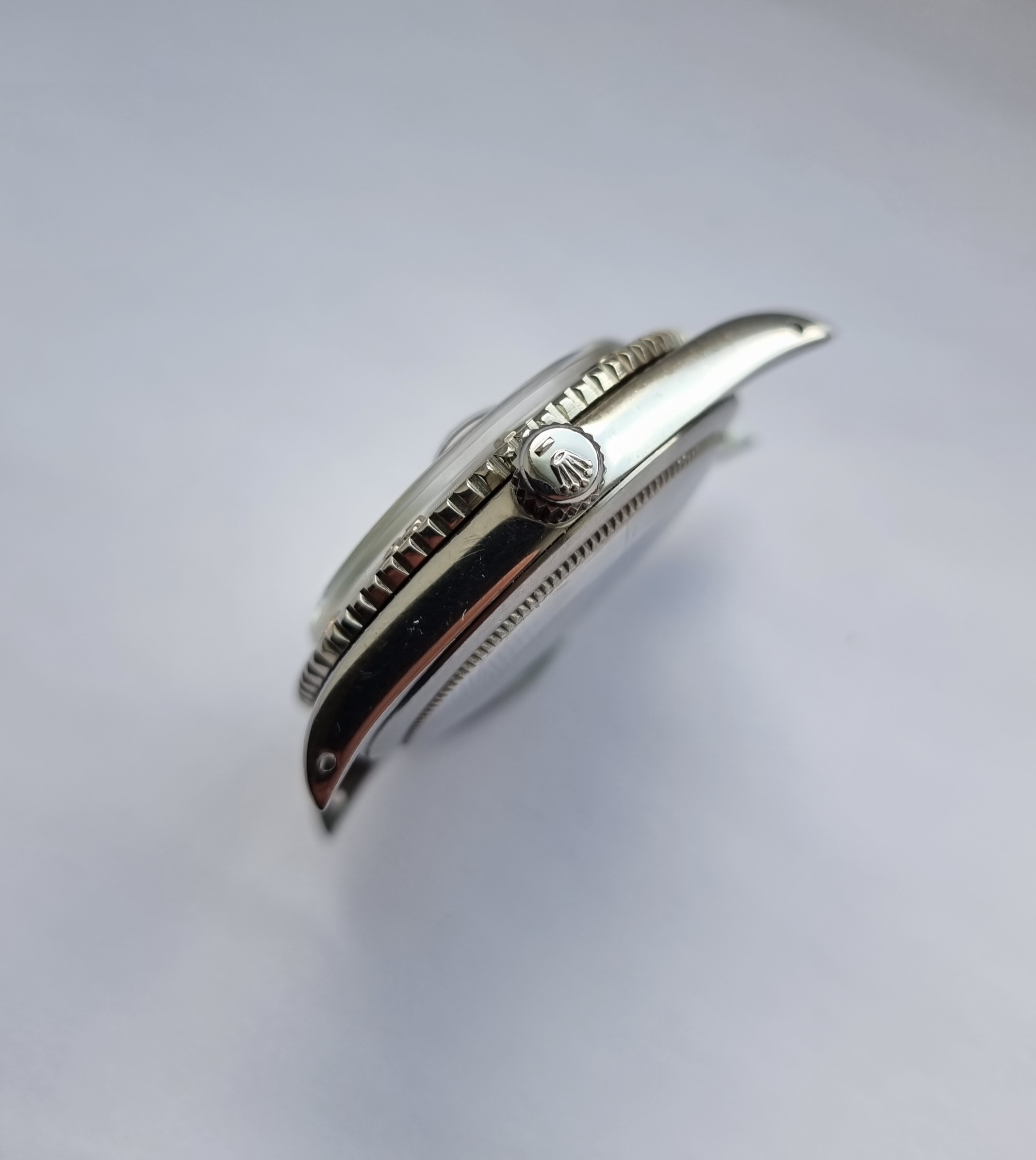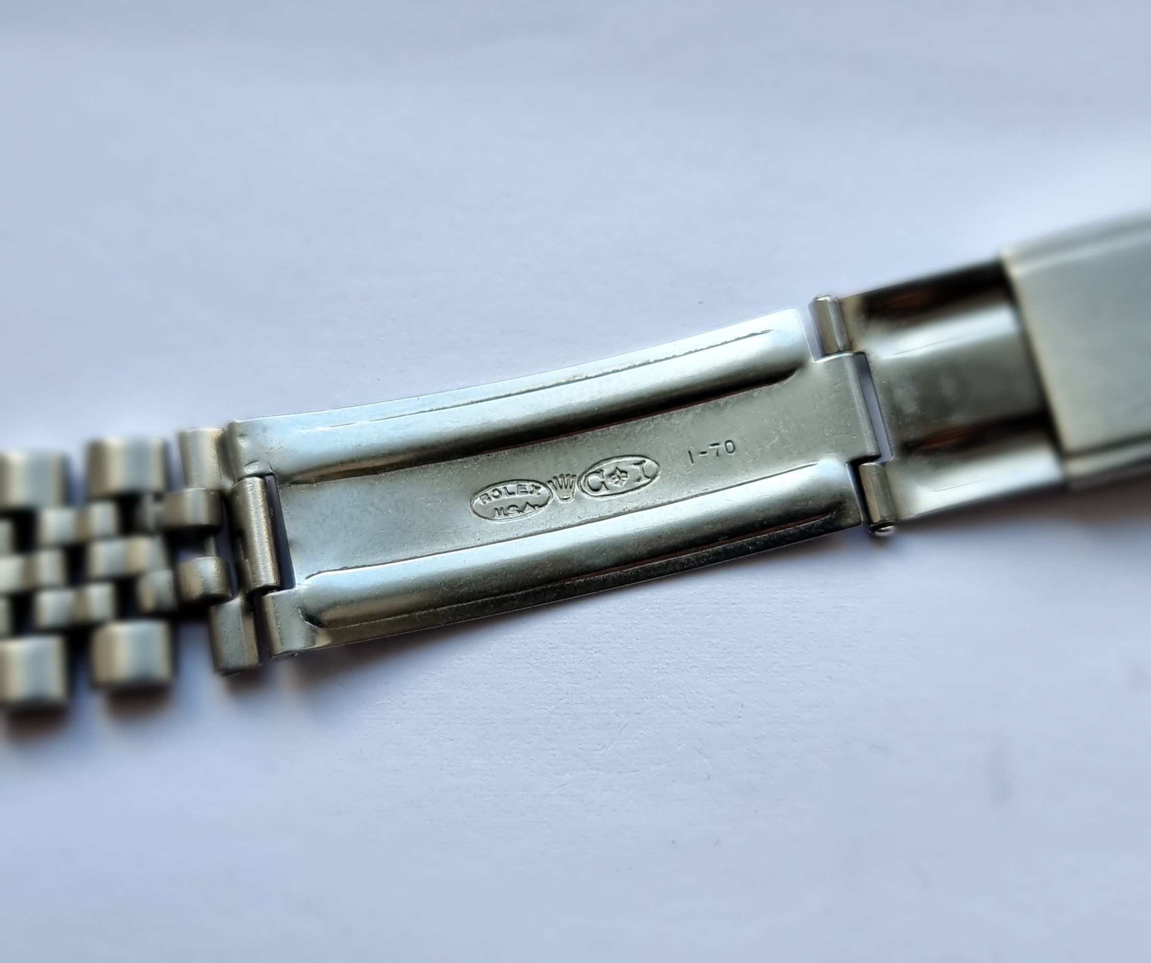 1625 and 1280860 are stamped between lugs, and are still visible. Crown with Rolex stamp. The plexi appears original, there is a small scuff to the cyclops that may buff out.