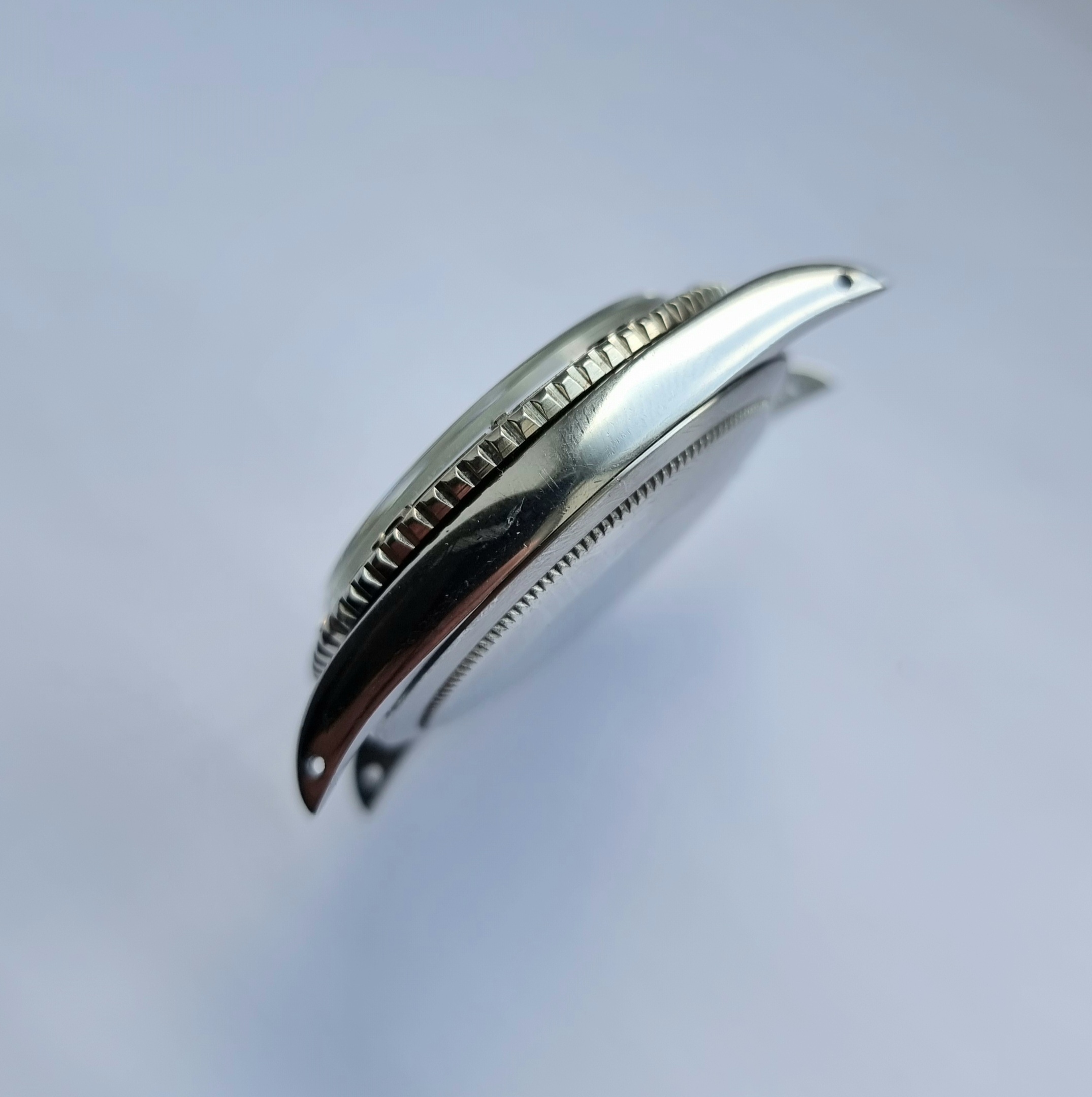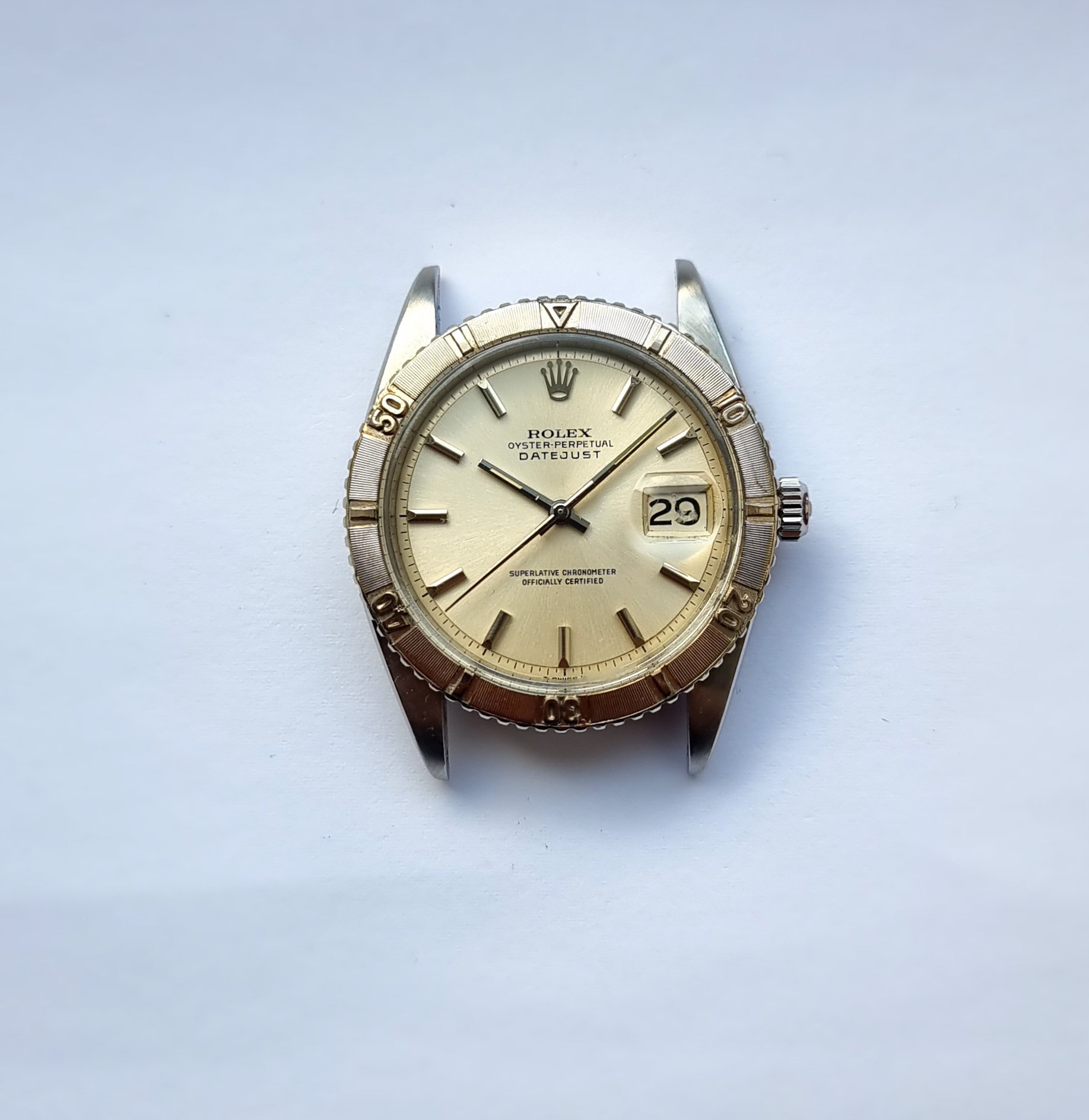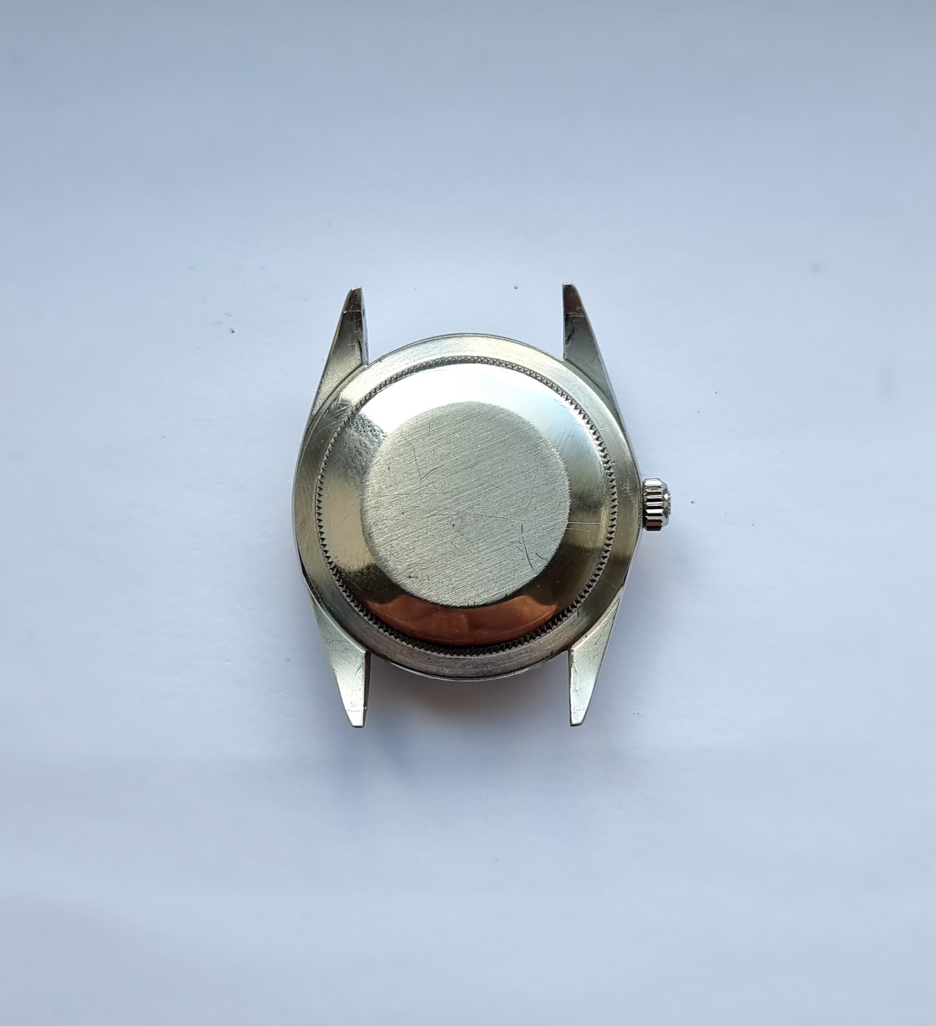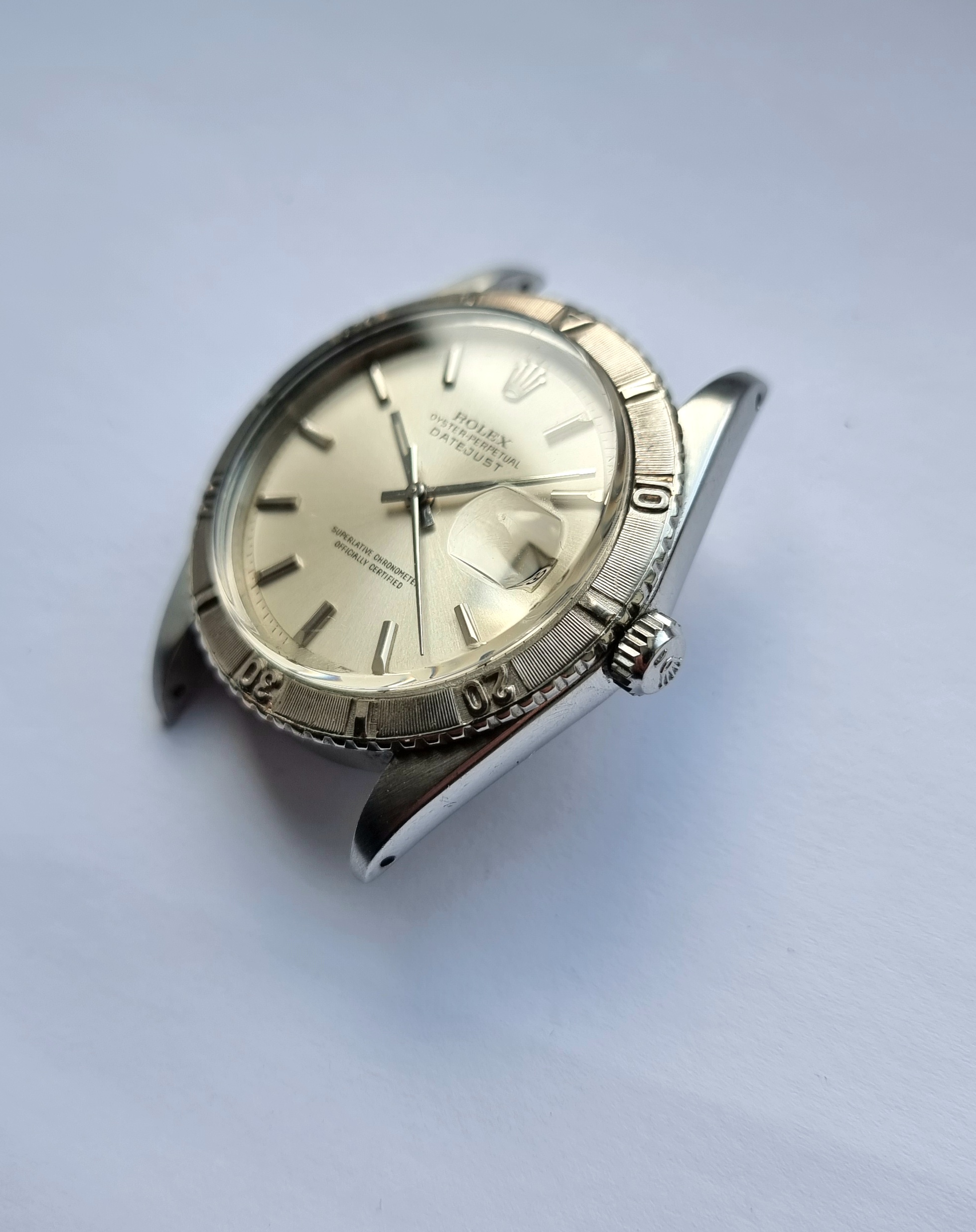 1625 and 1280860 are stamped between lugs, and are still visible. Crown with Rolex stamp. The plexi appears original, there is a small scuff to the cyclops that may buff out.