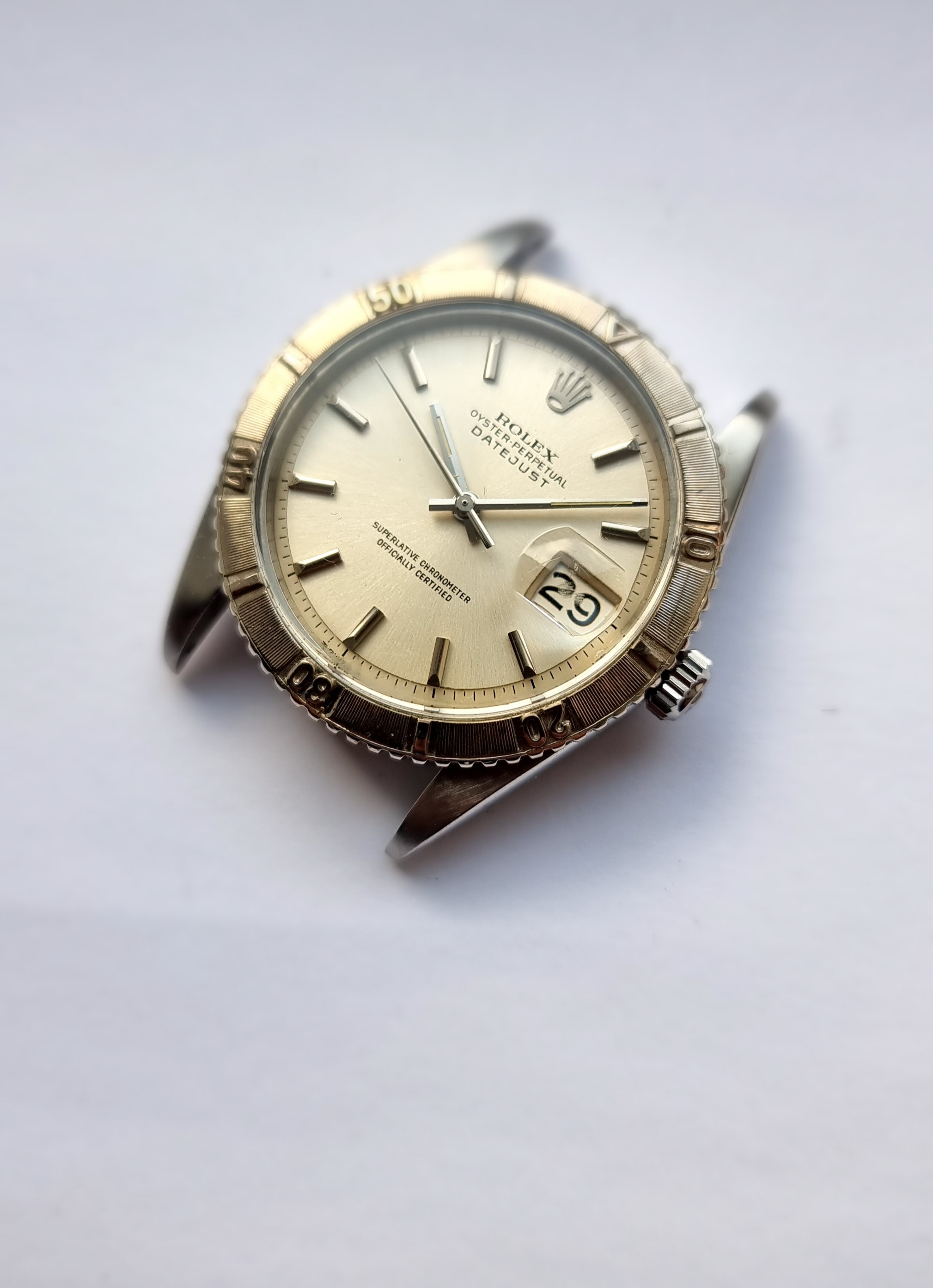 The 1575 movement has not been serviced by me, but is running well and keeping good time. Date clicks over nicely.