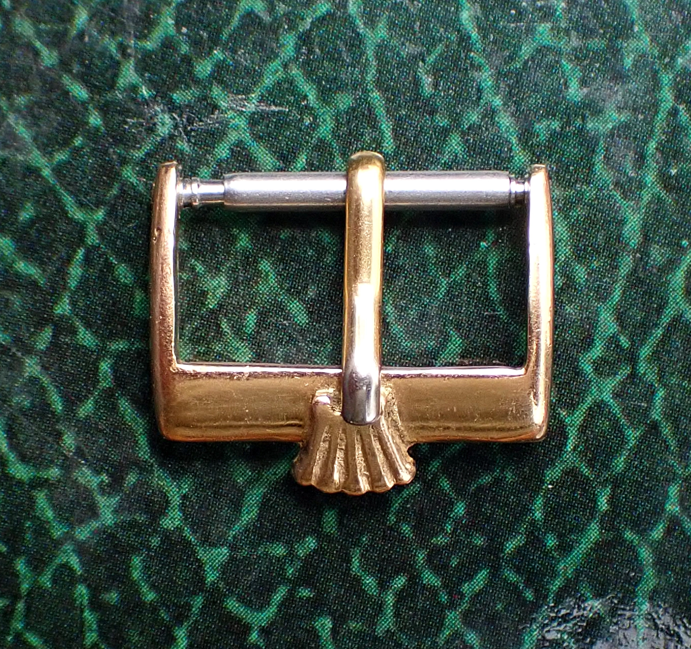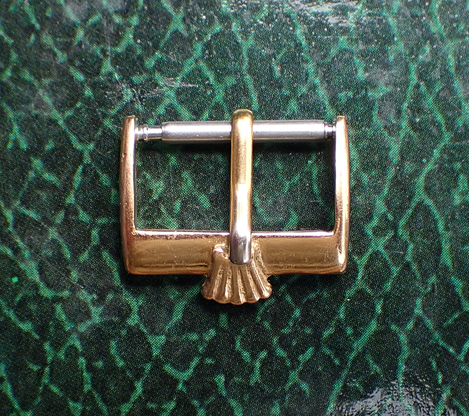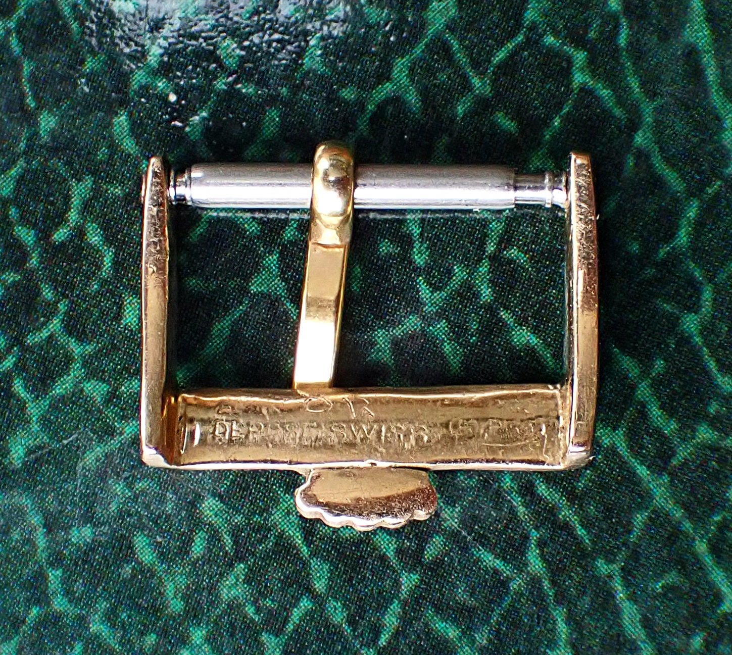 This buckle is in Very Good overall vintage condition, with some signs of wear and age but no major defects, although I don’t believe the tang is solid gold (looks like gold plated steel to me with some wear). The nomenclature on the underside is worn but still legible with a loupe and reads “DEPOSE” “SWISS” and the encircled “ROLEX S.A.”