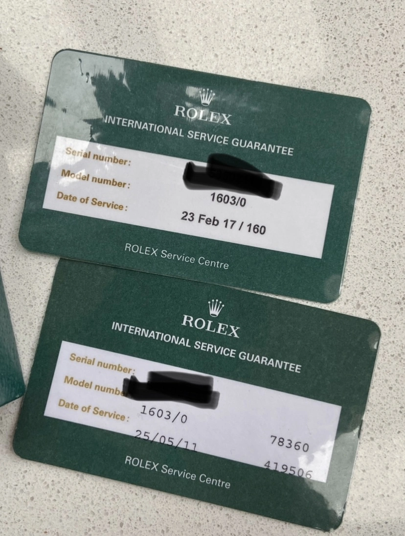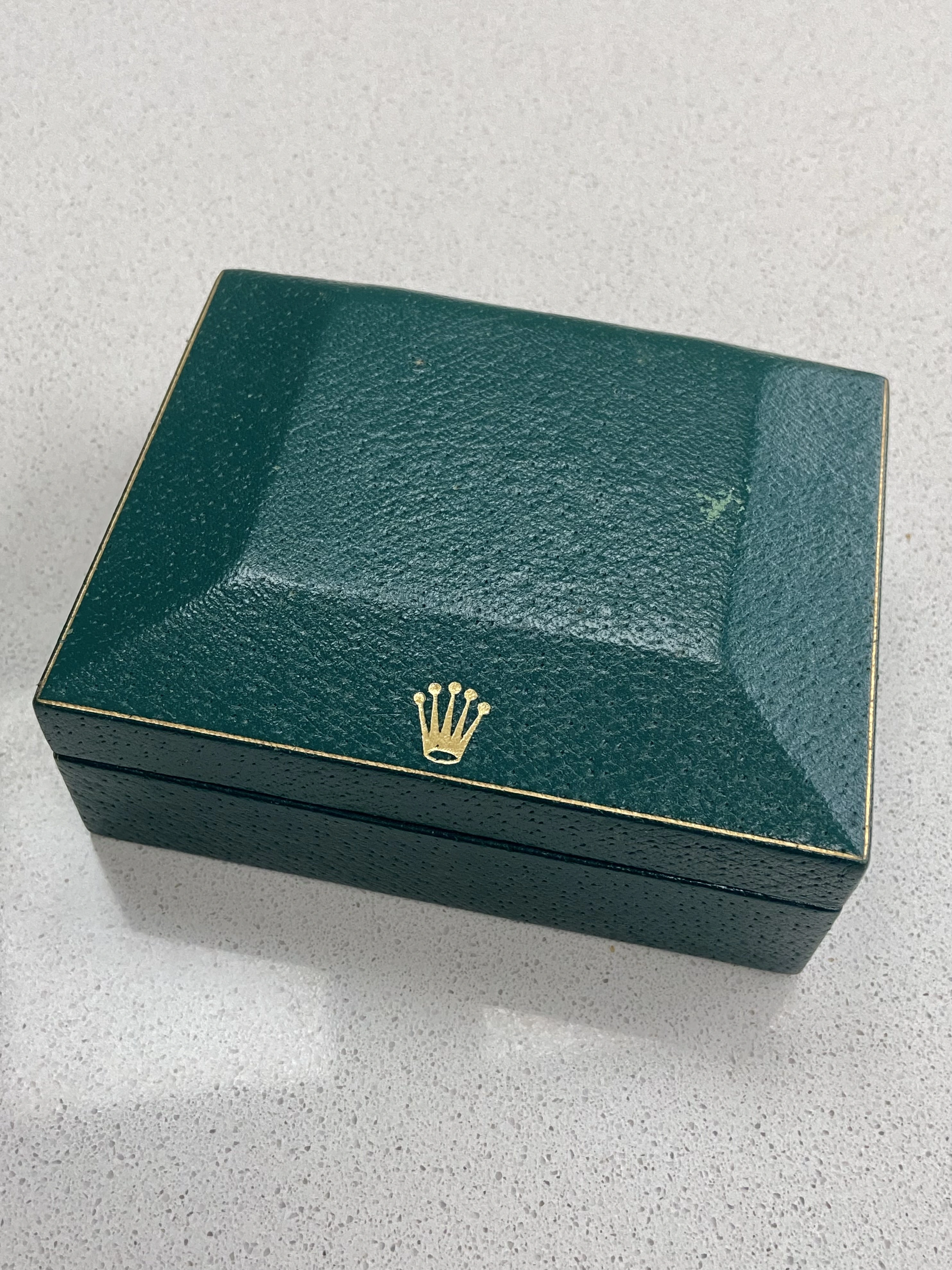Comes with its original green ‘coffin’ box, card holder and two Rolex service cards from 2011 and 2017.