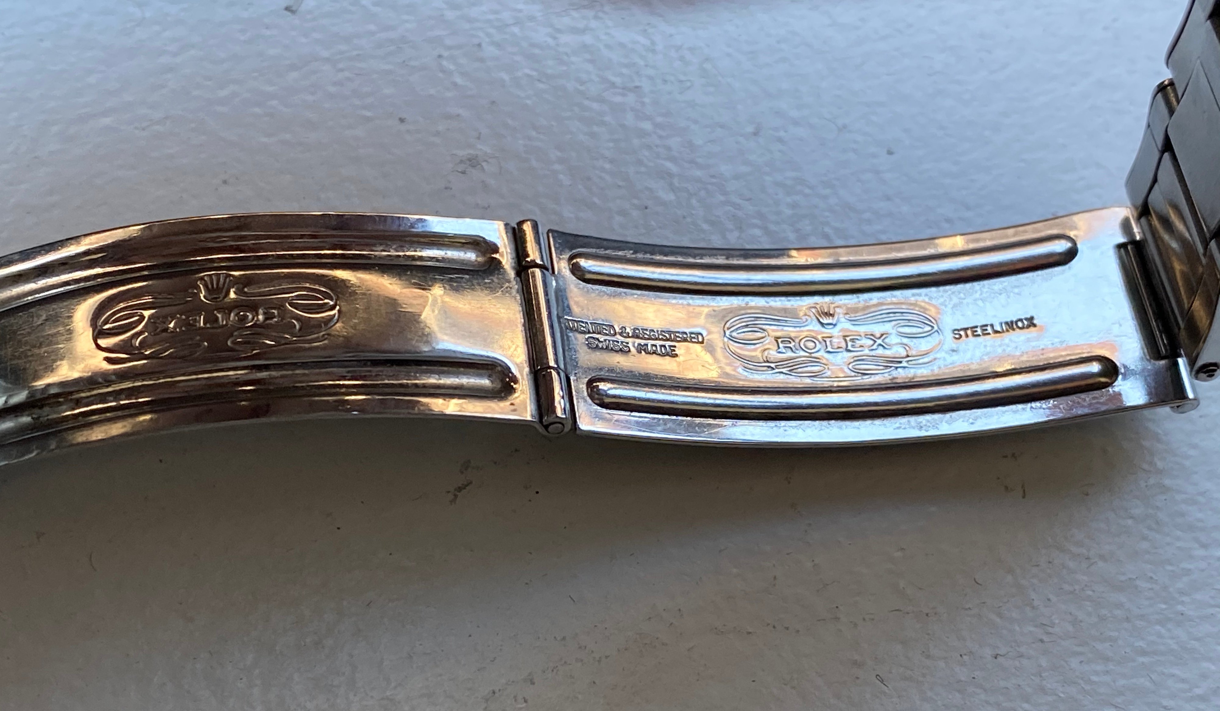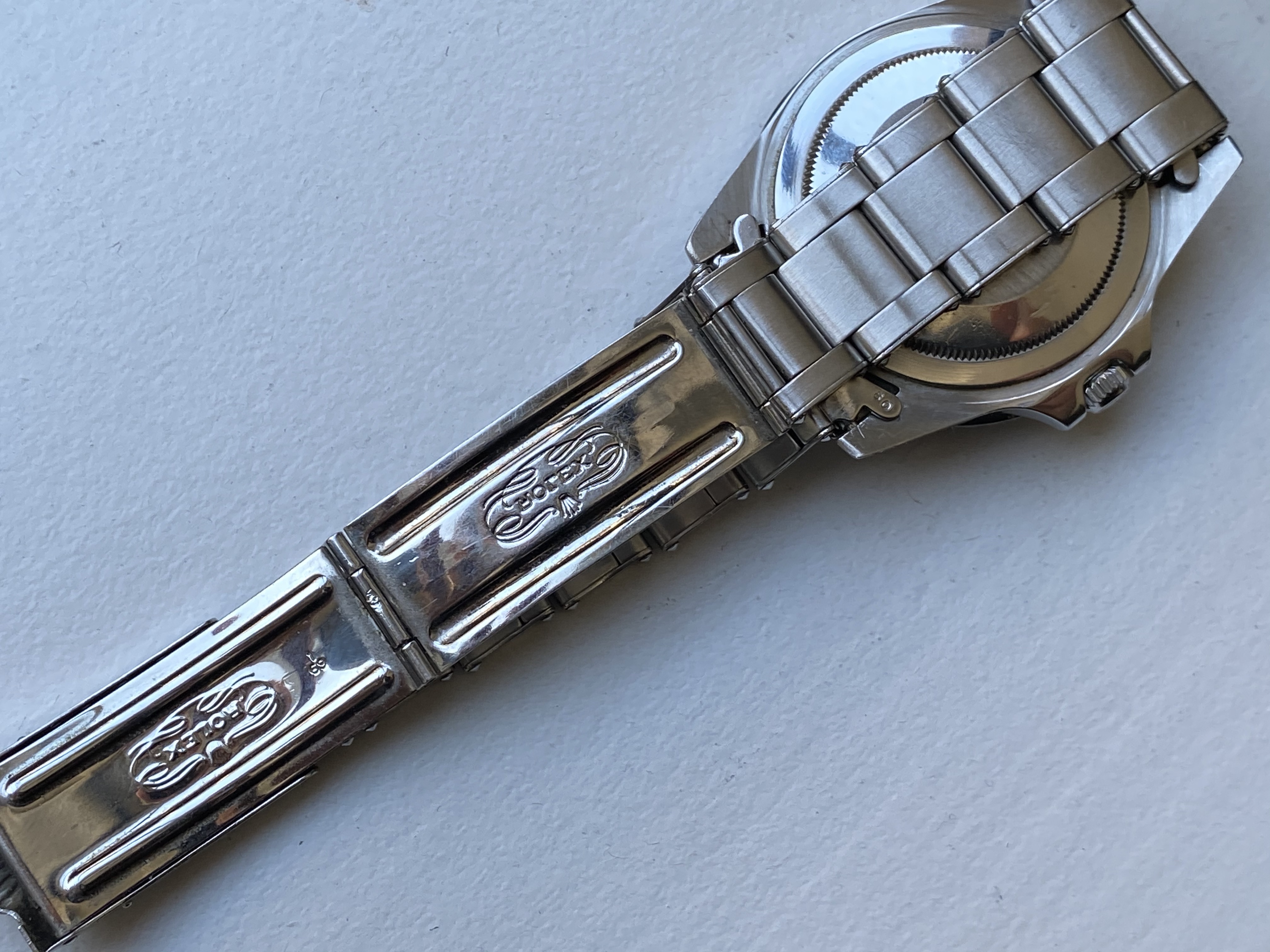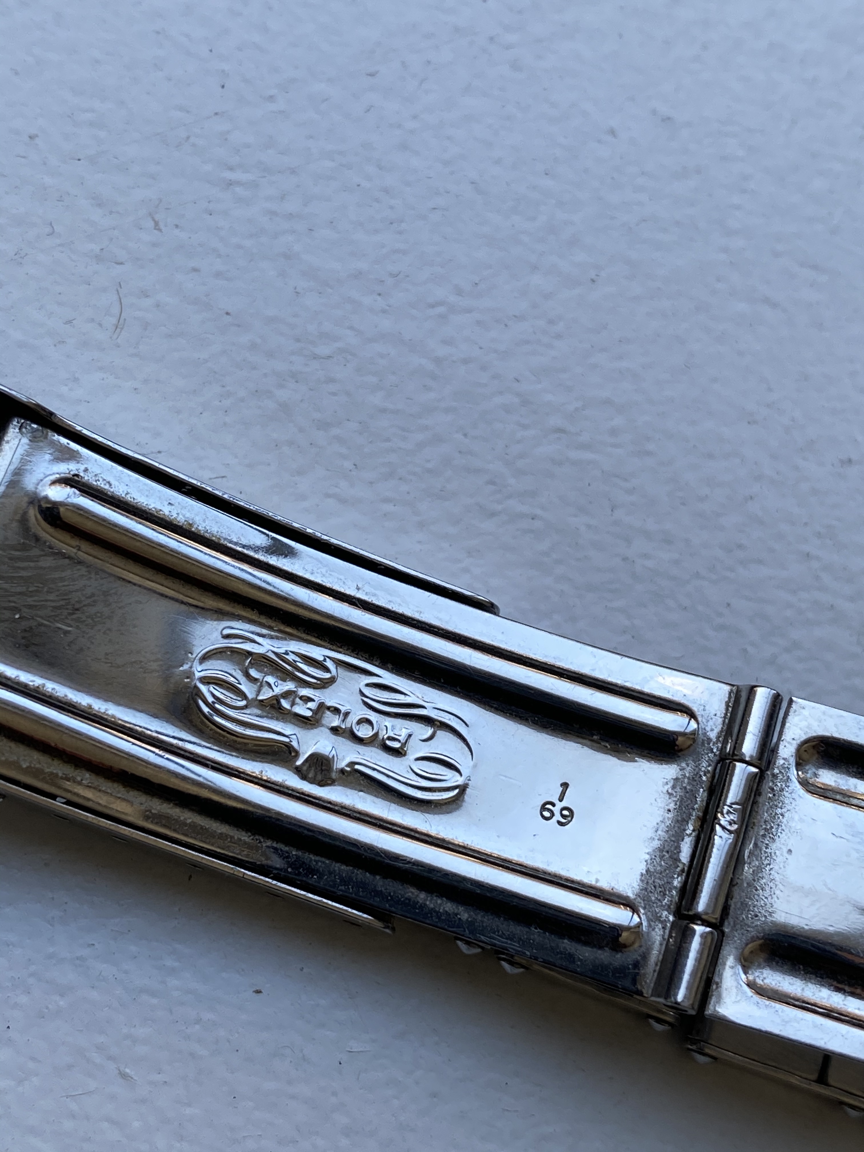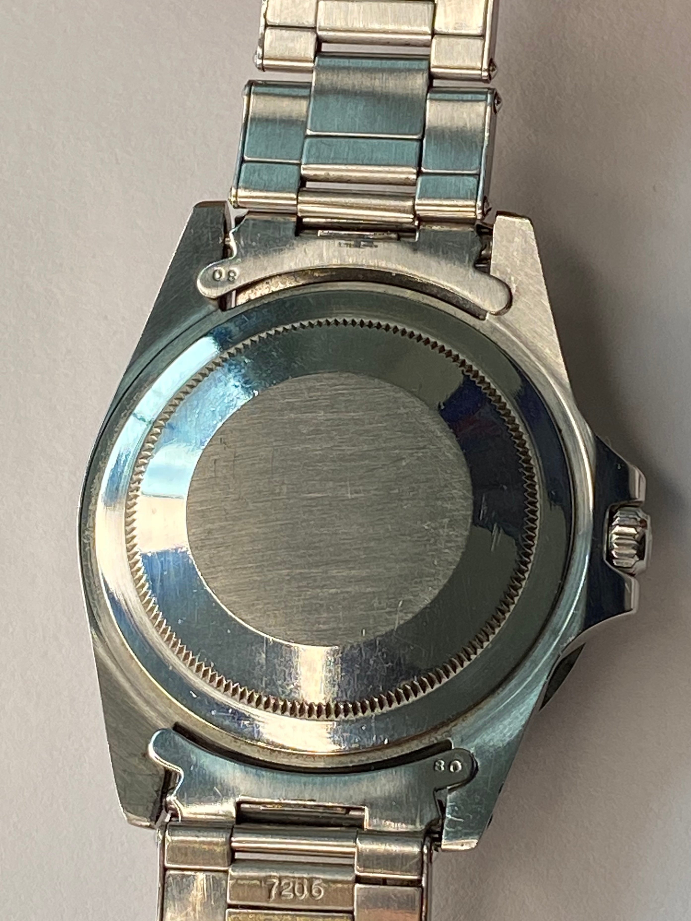 Bracelet: Stainless steel 7206 bracelet and 80 end-links. Clasp has 1 69 date code. Has stretch consistent with age. Links could be tightened up, no issue on my wrist.