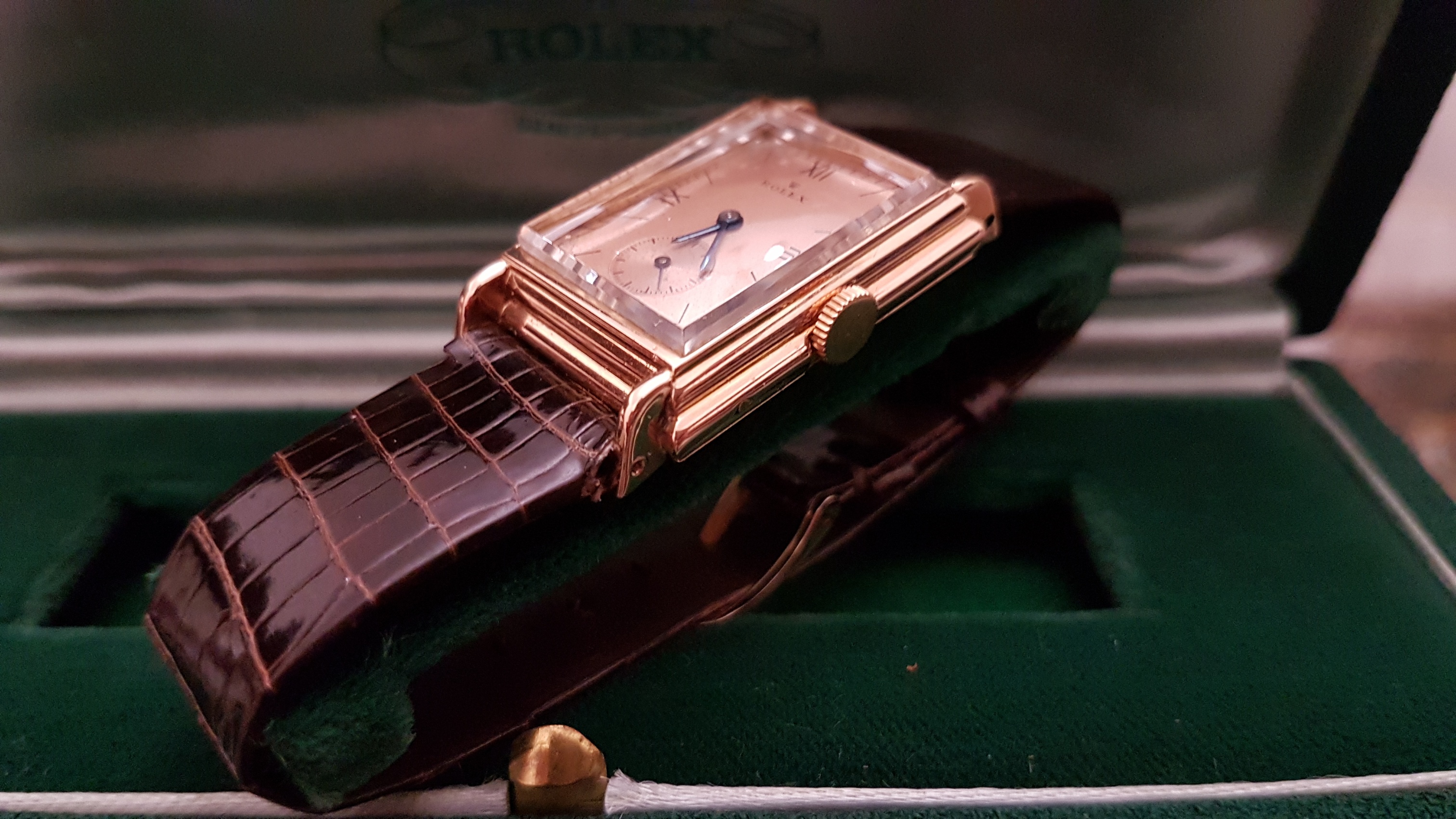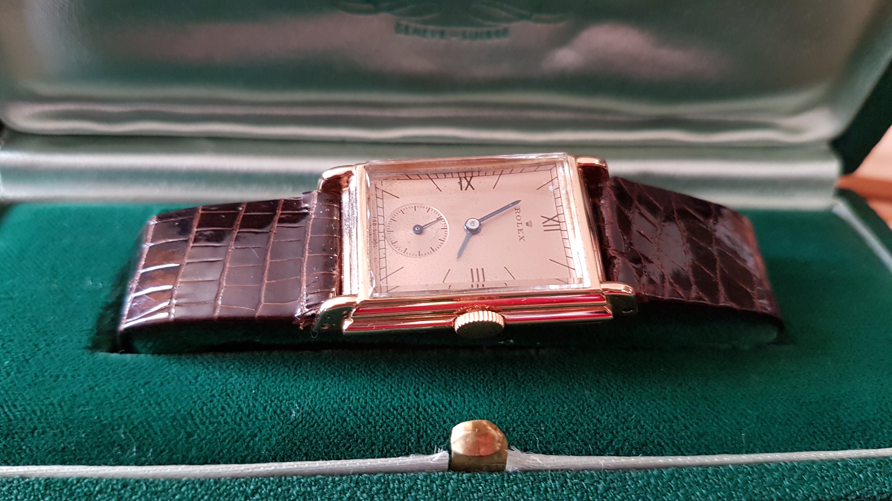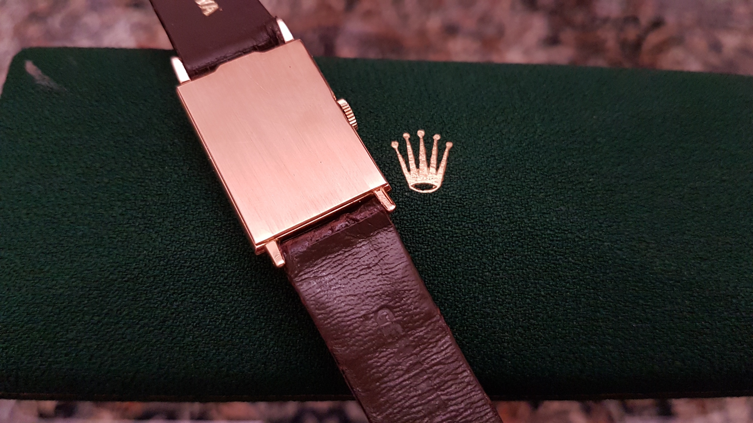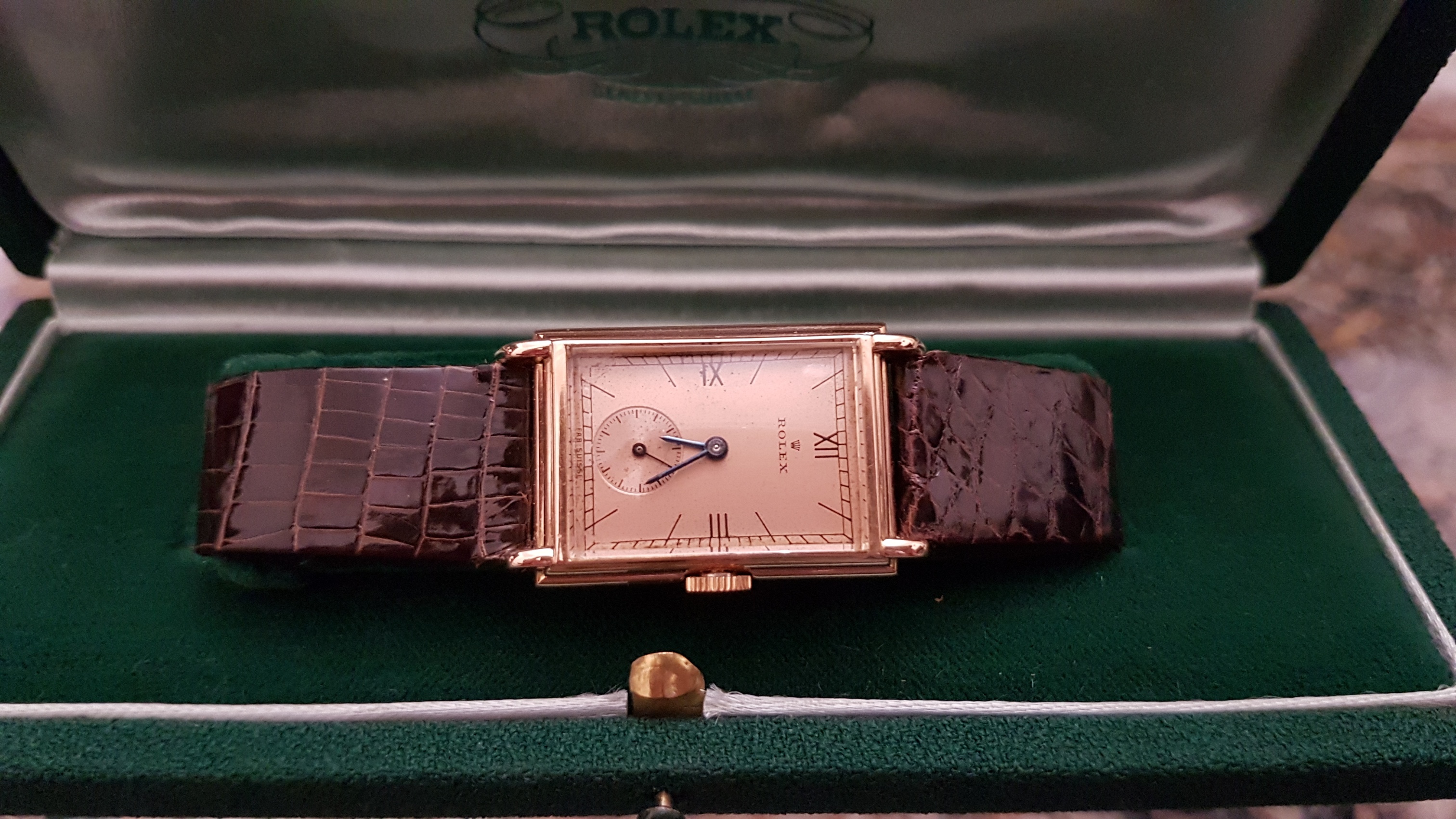 Vintage Rolex "Rectangulaire De Ville" Pink Gold French Case 50 s