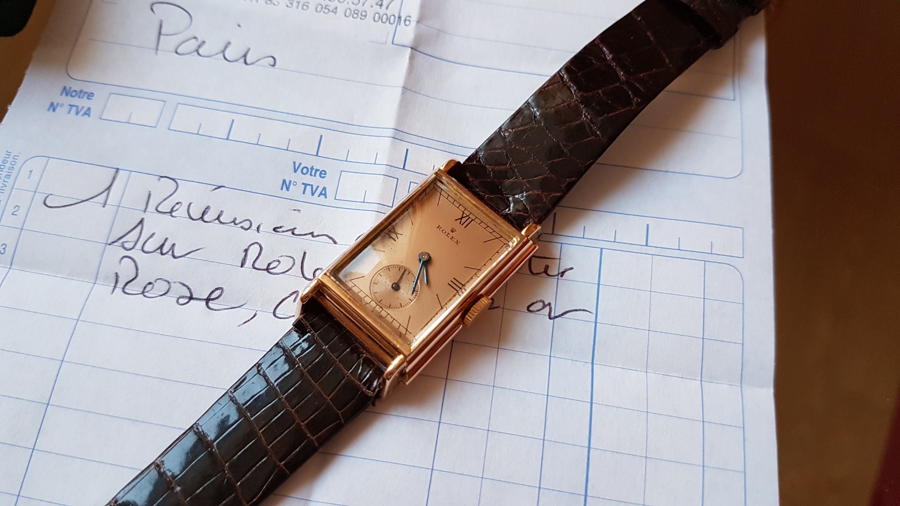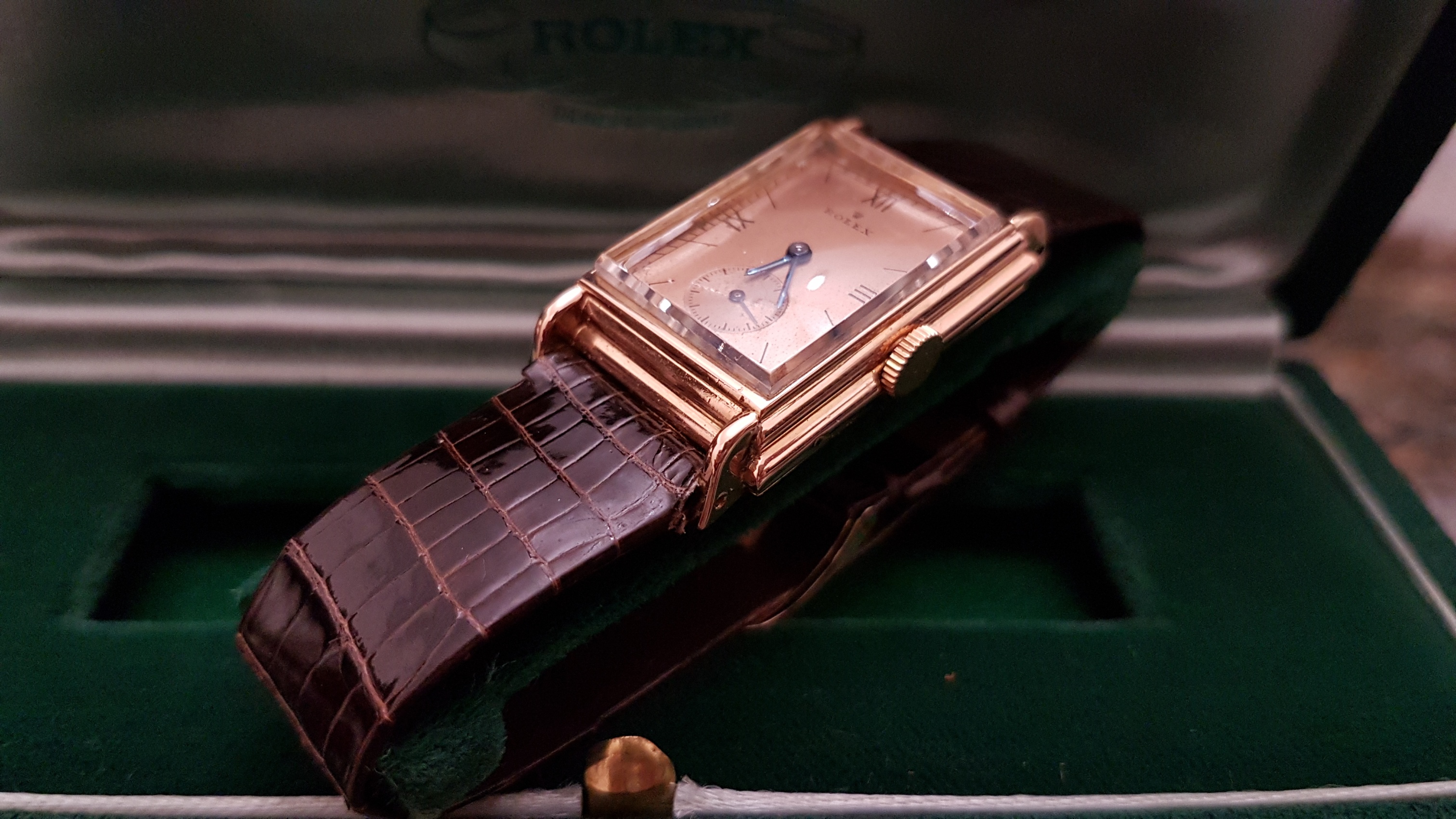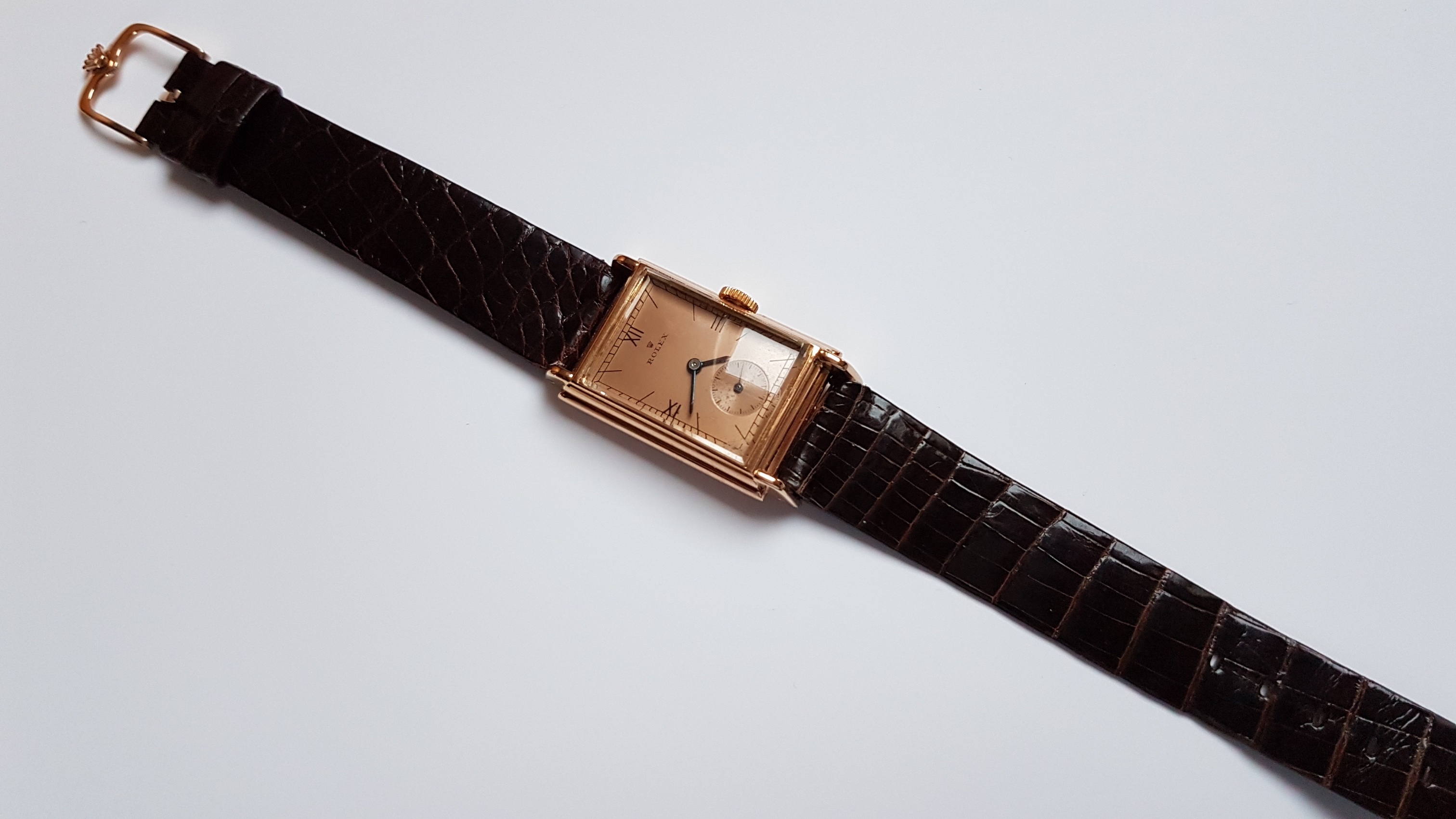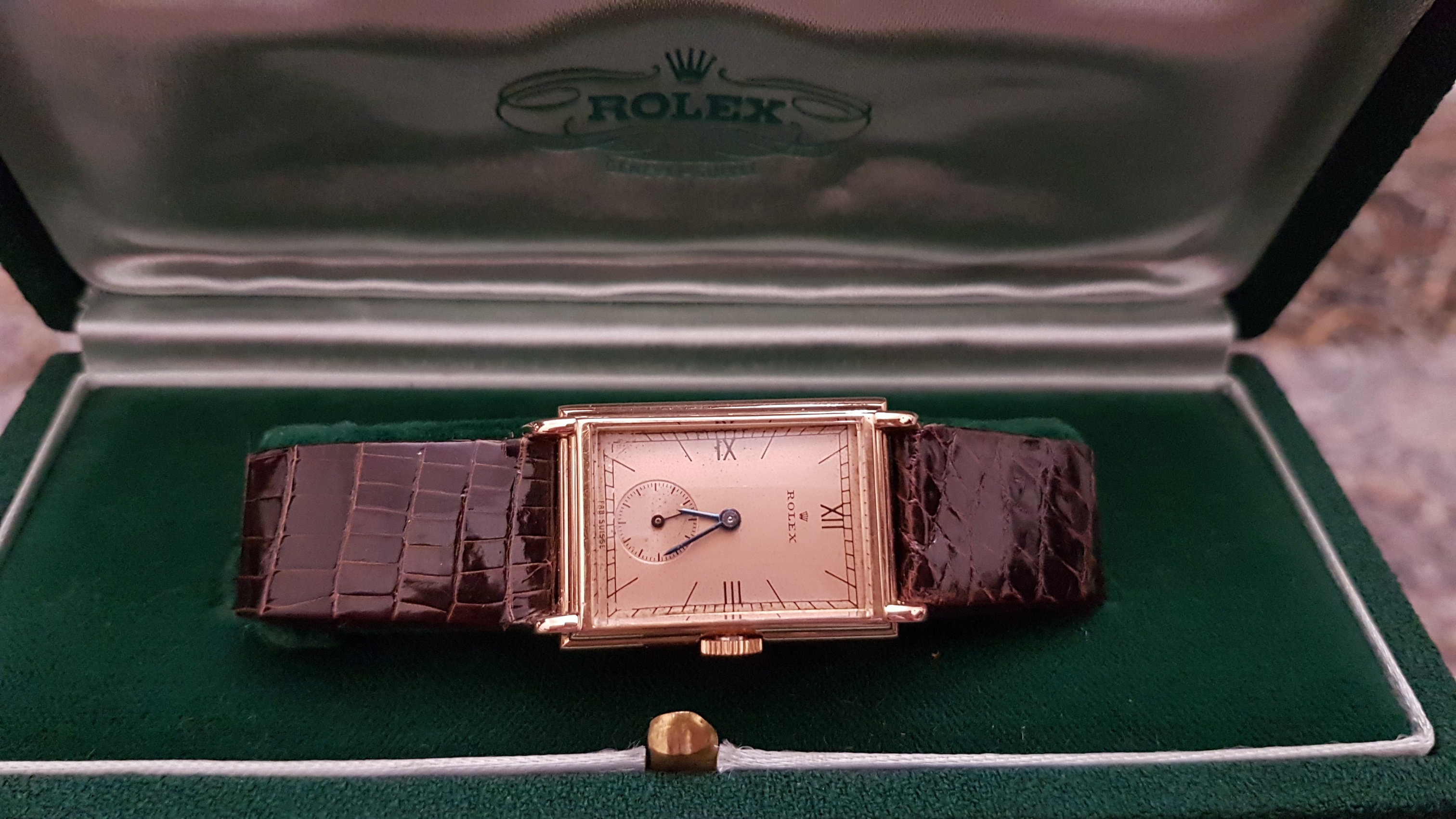 Vintage Rolex "Rectangulaire De Ville" Pink Gold French Case 50 s