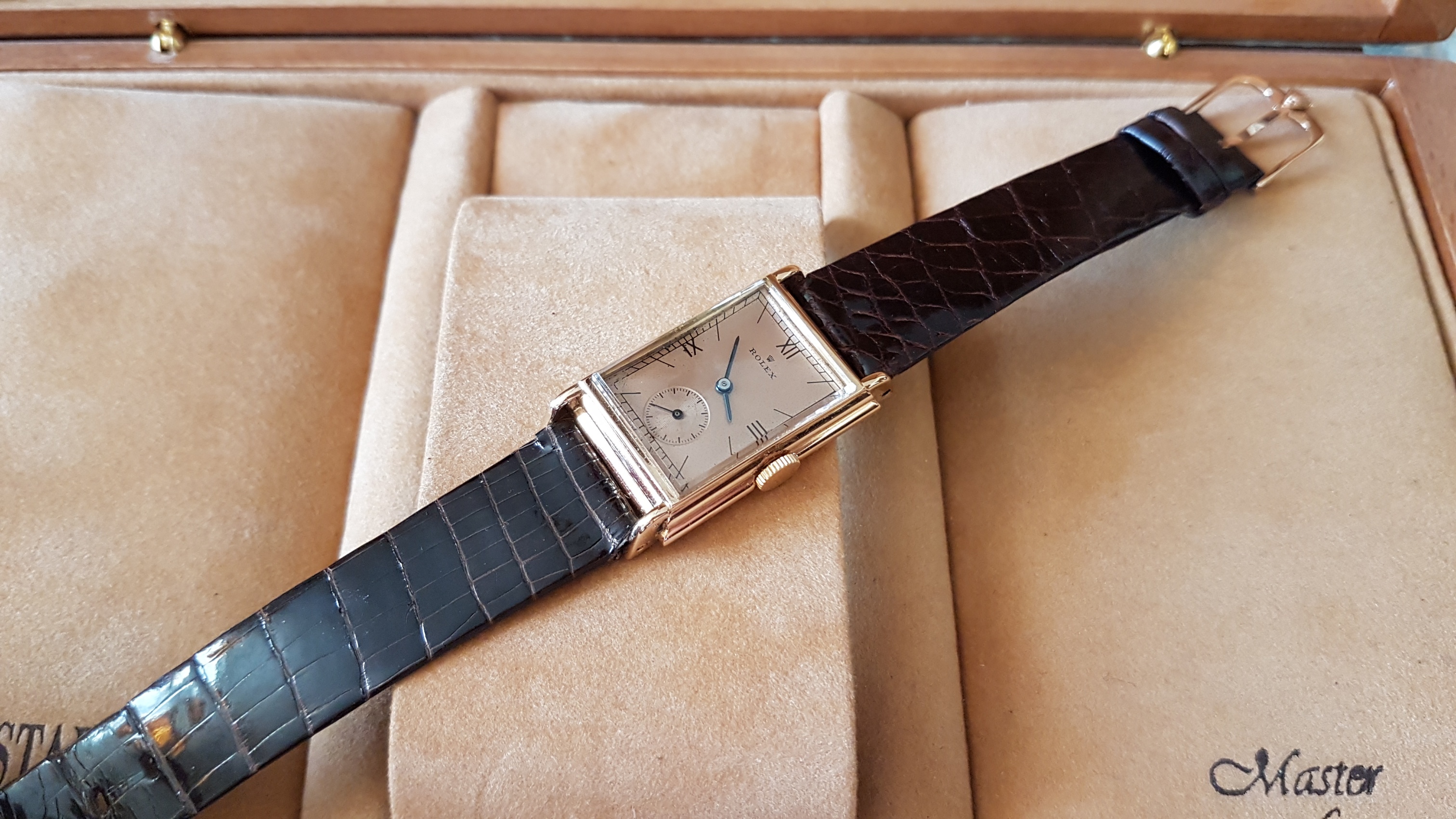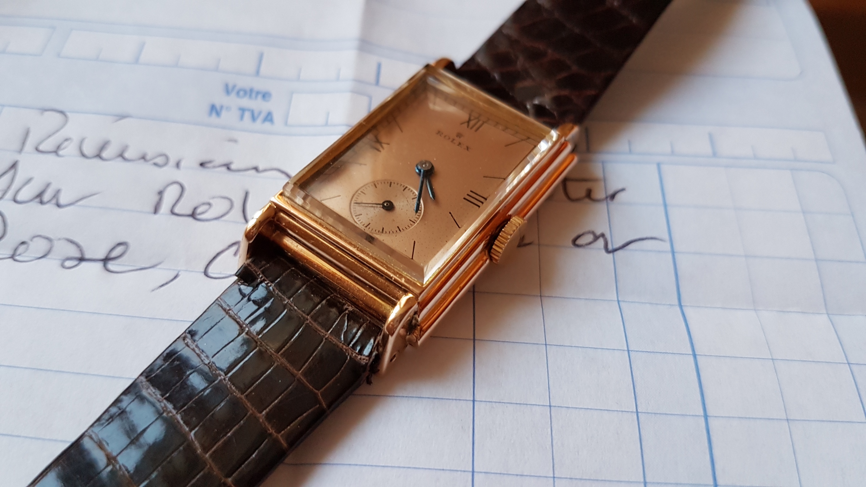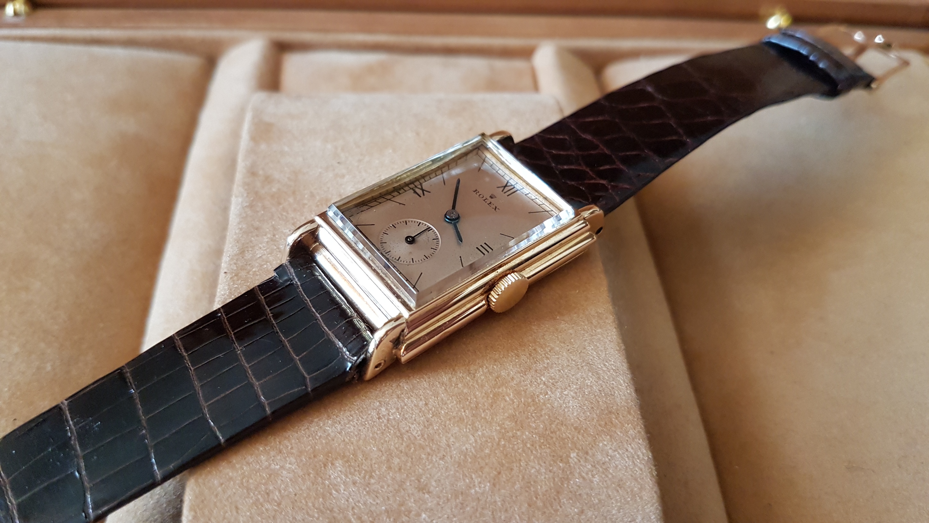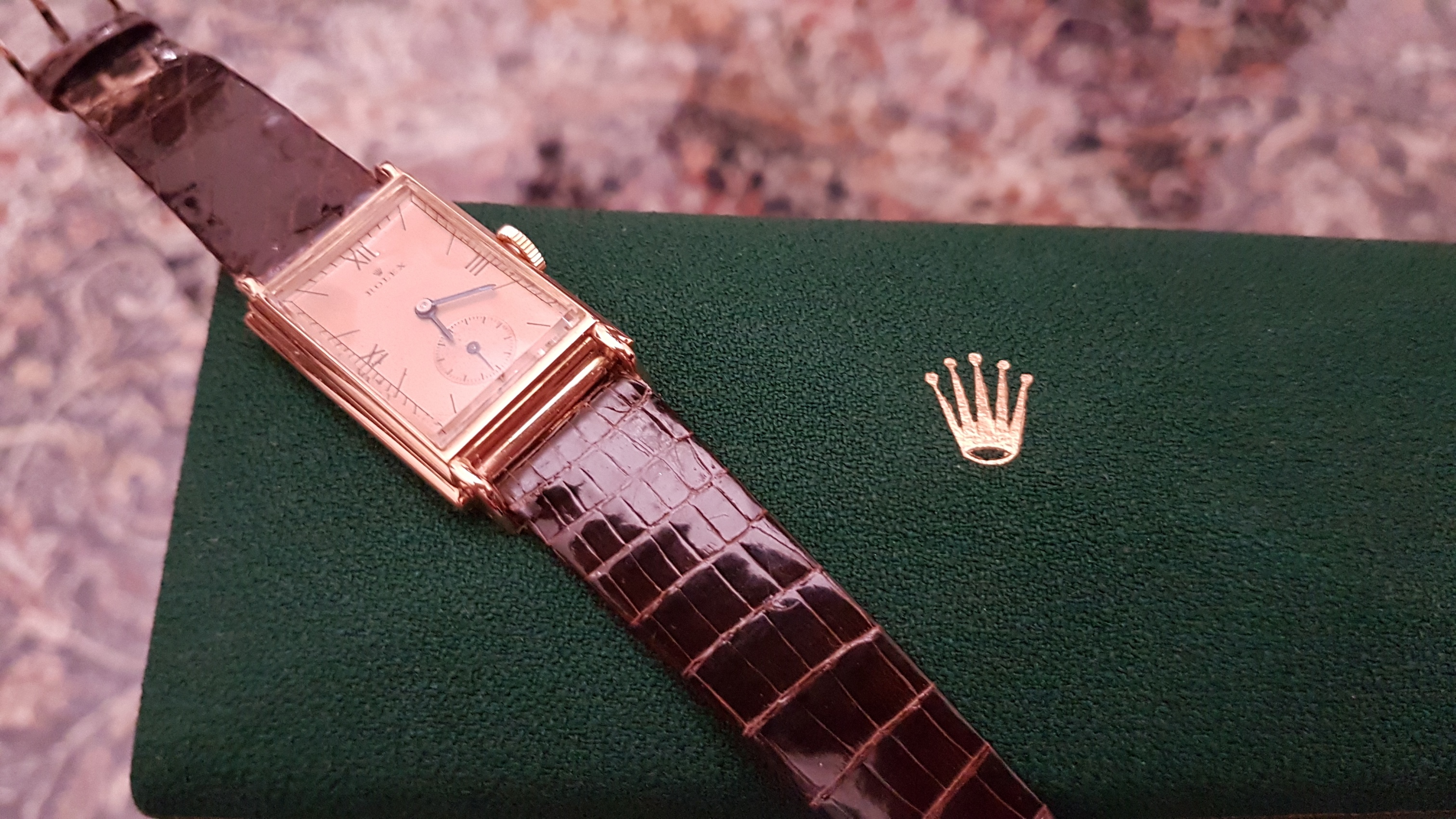 Vintage Rolex "Rectangulaire De Ville" Pink Gold French Case 50 s