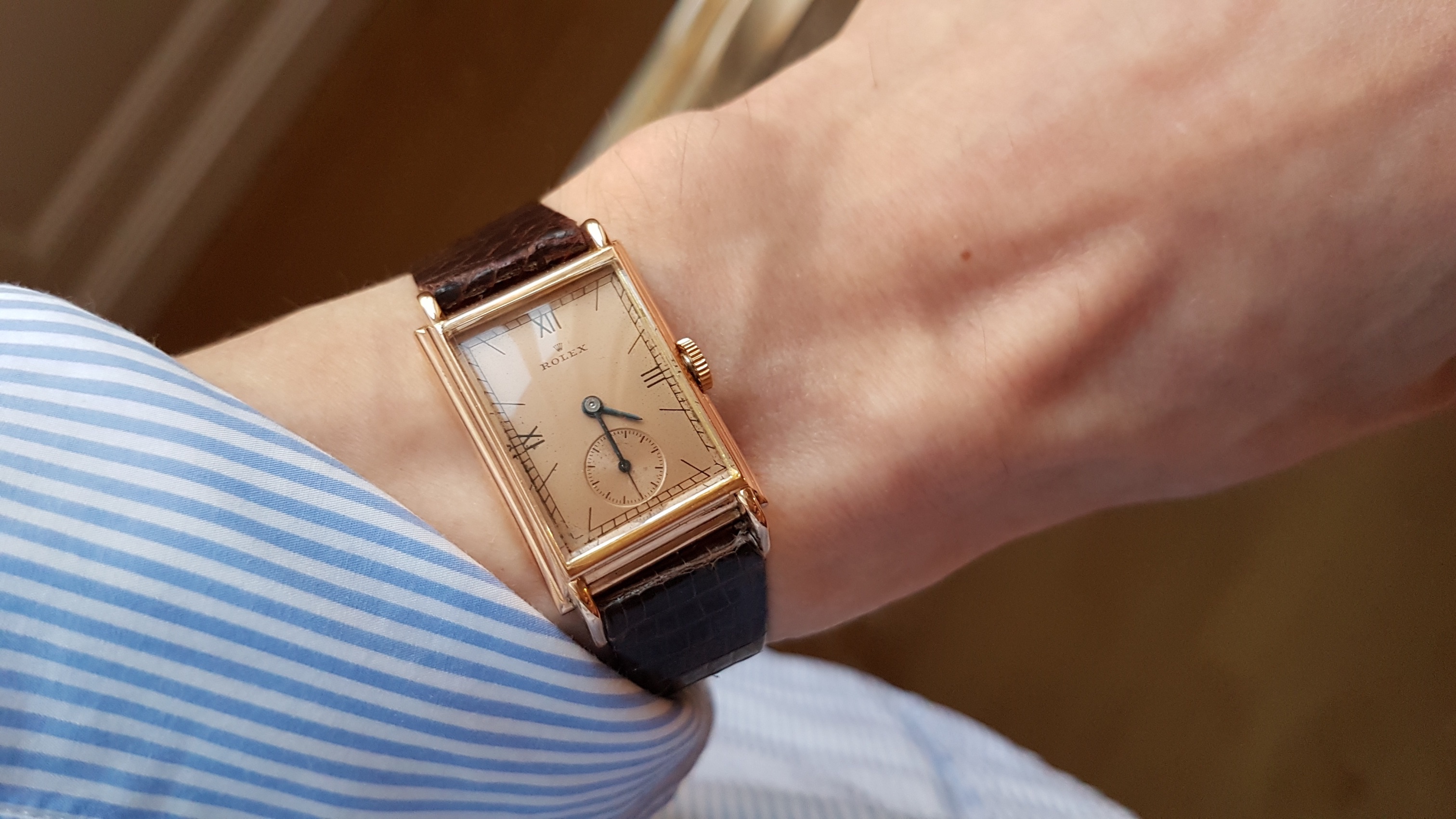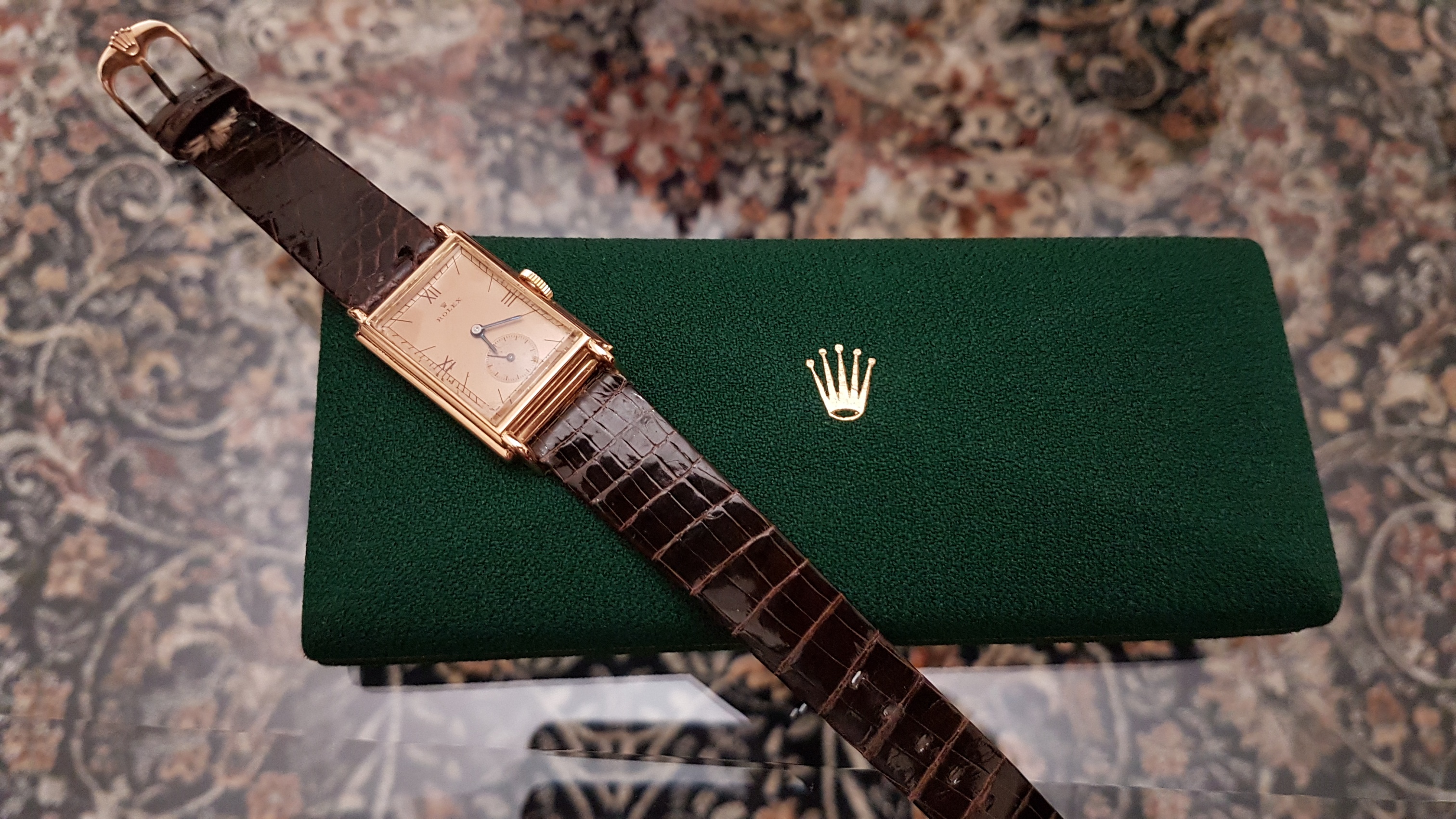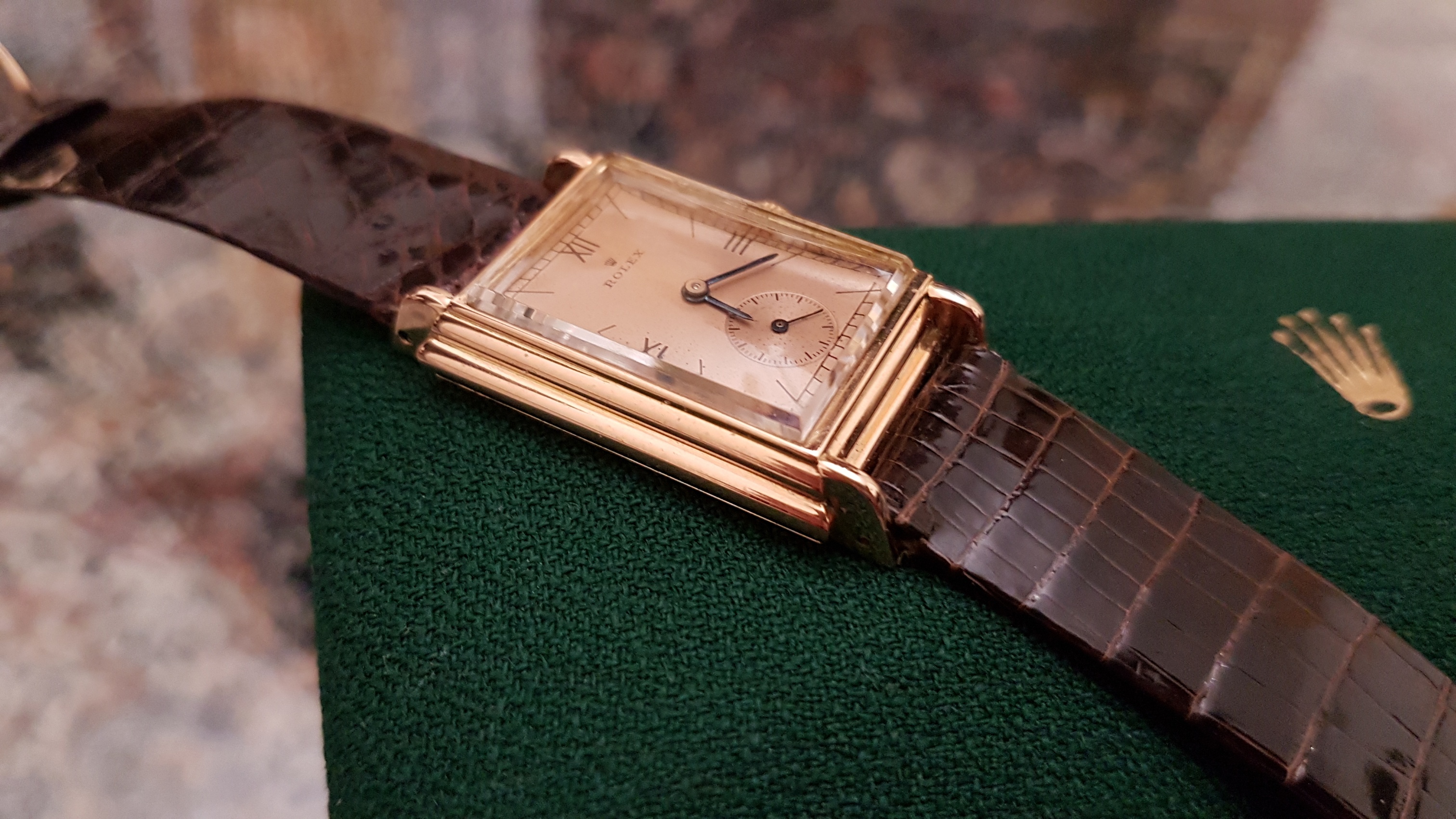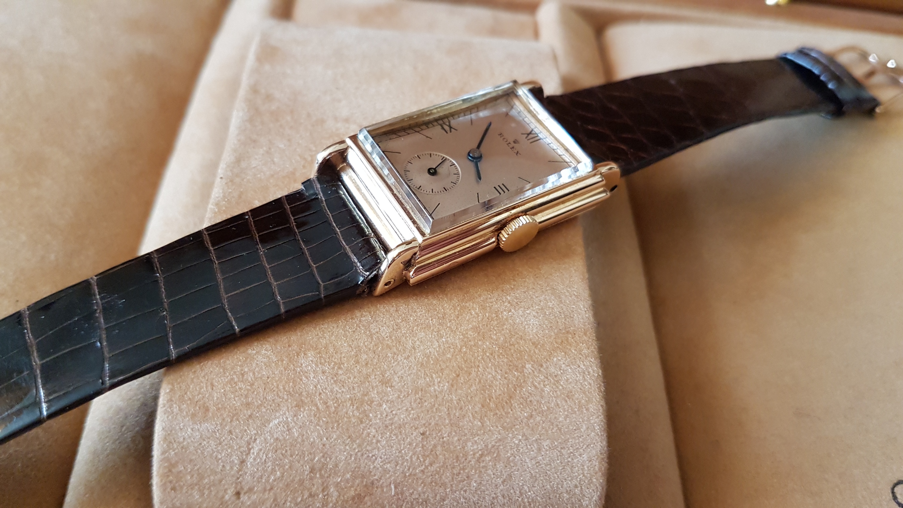 Vintage Rolex "Rectangulaire De Ville" Pink Gold French Case 50 s