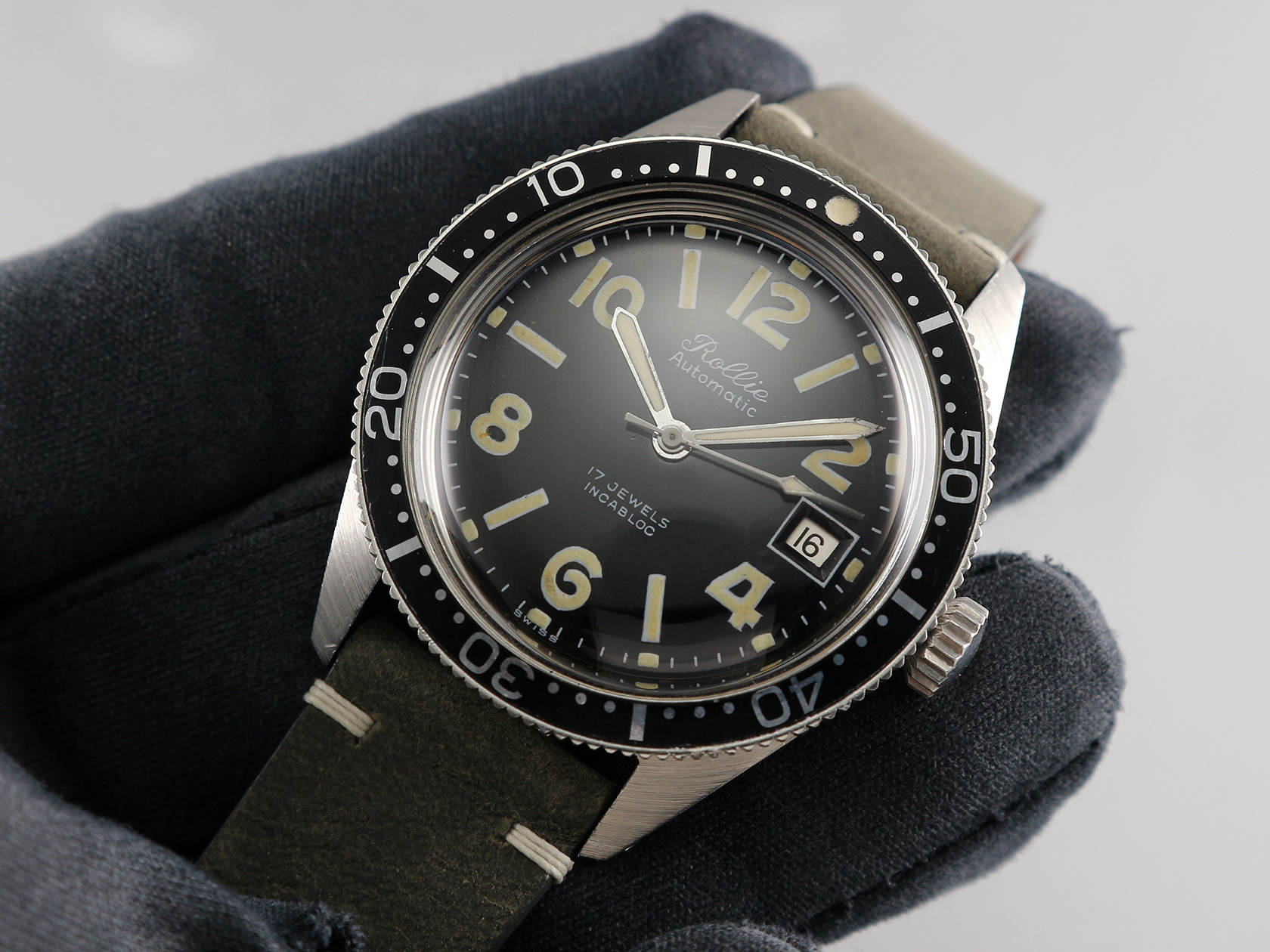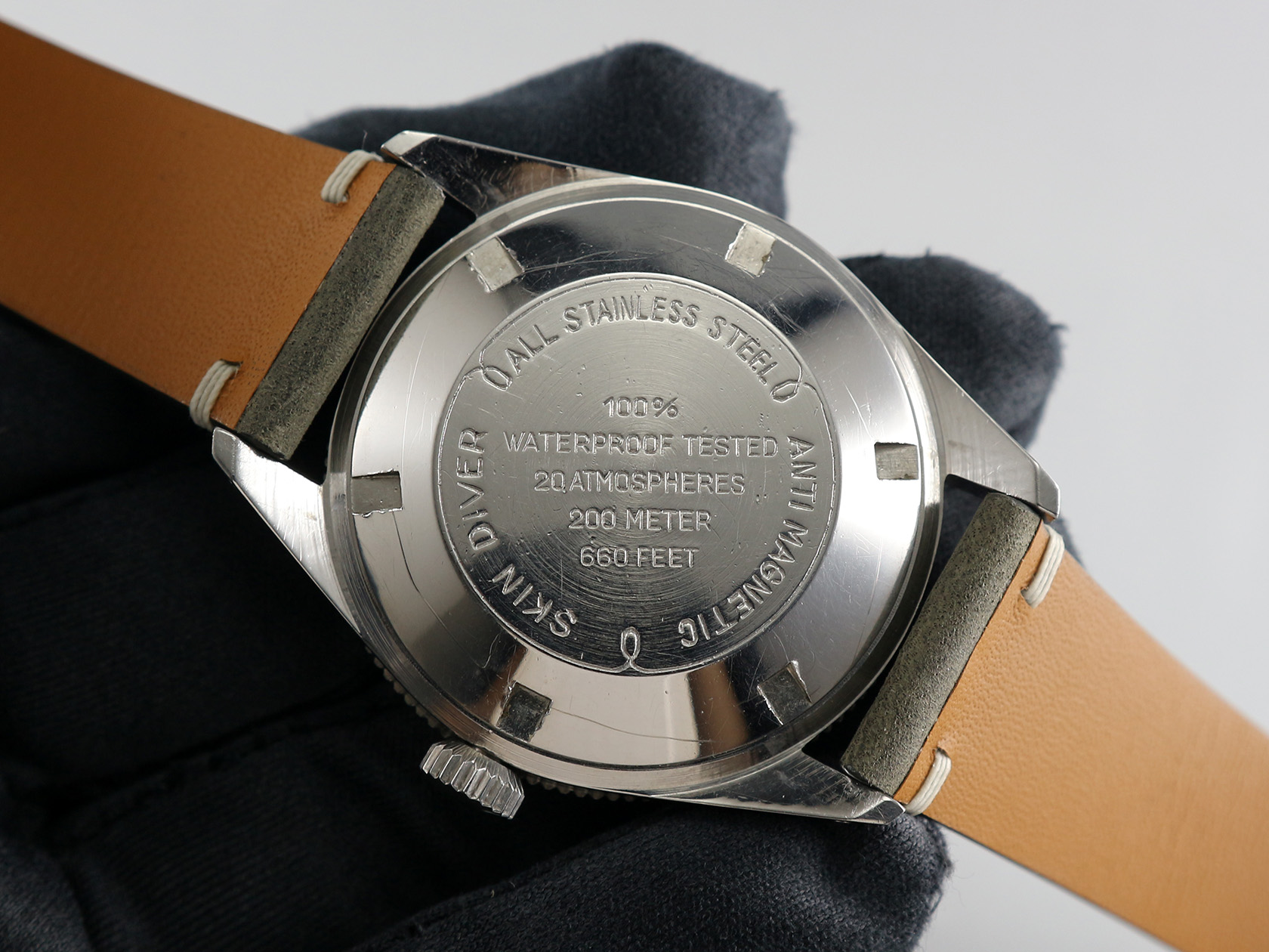 ·If you can't afford a Rolex Submariner, don't worry you could get this Rollie Skin Diver for a lot cheaper 😜. The glossy black dial is in very good condition with Tritium indices and handset. The unpolished ss case is in very good shape, so is the bi-directional bezel. It measures 38mm wide without crown and 45.5mm lug to lug, lug width is 19mm. It is serviced a while ago, no service record but still running strong and accurate.