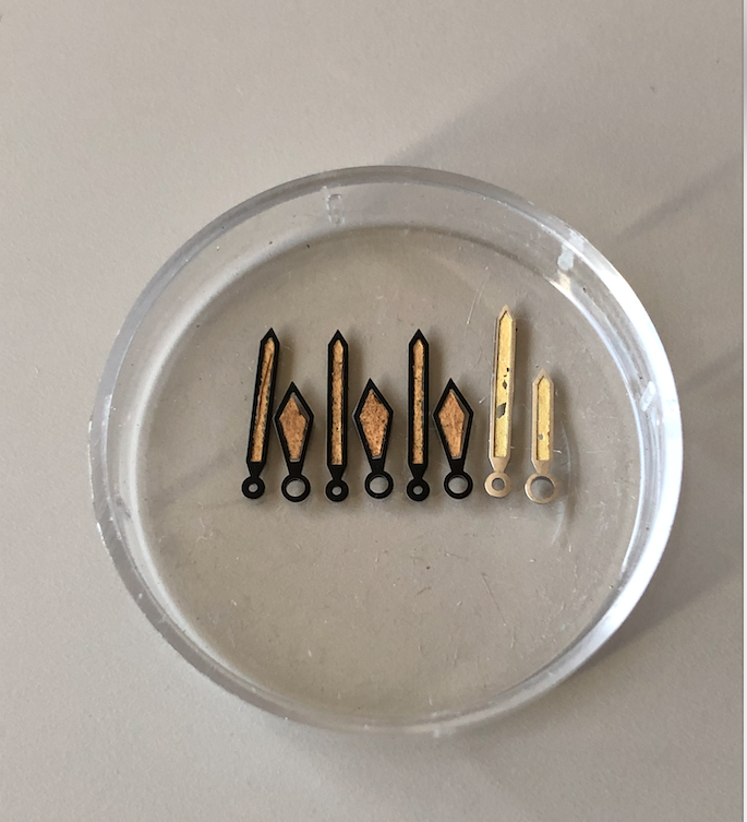 Bought a lot of watch hands recently expecting to get what I thought were some vintage black sword Seamaster 200 hands for the Banana and a set of silver baton hands for the early 300.
