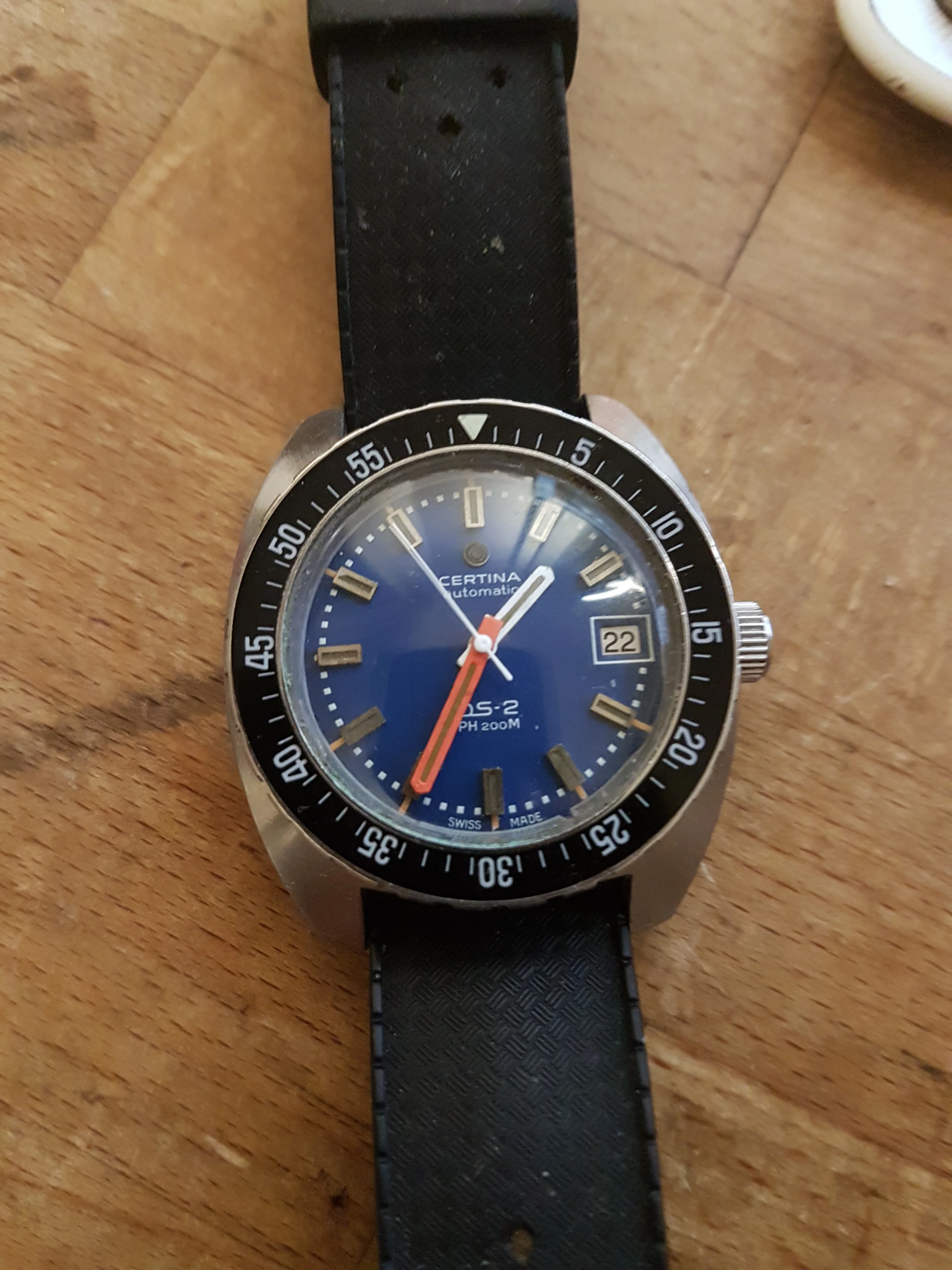 exemples on a vintage Certina diver and a chrono hand.
