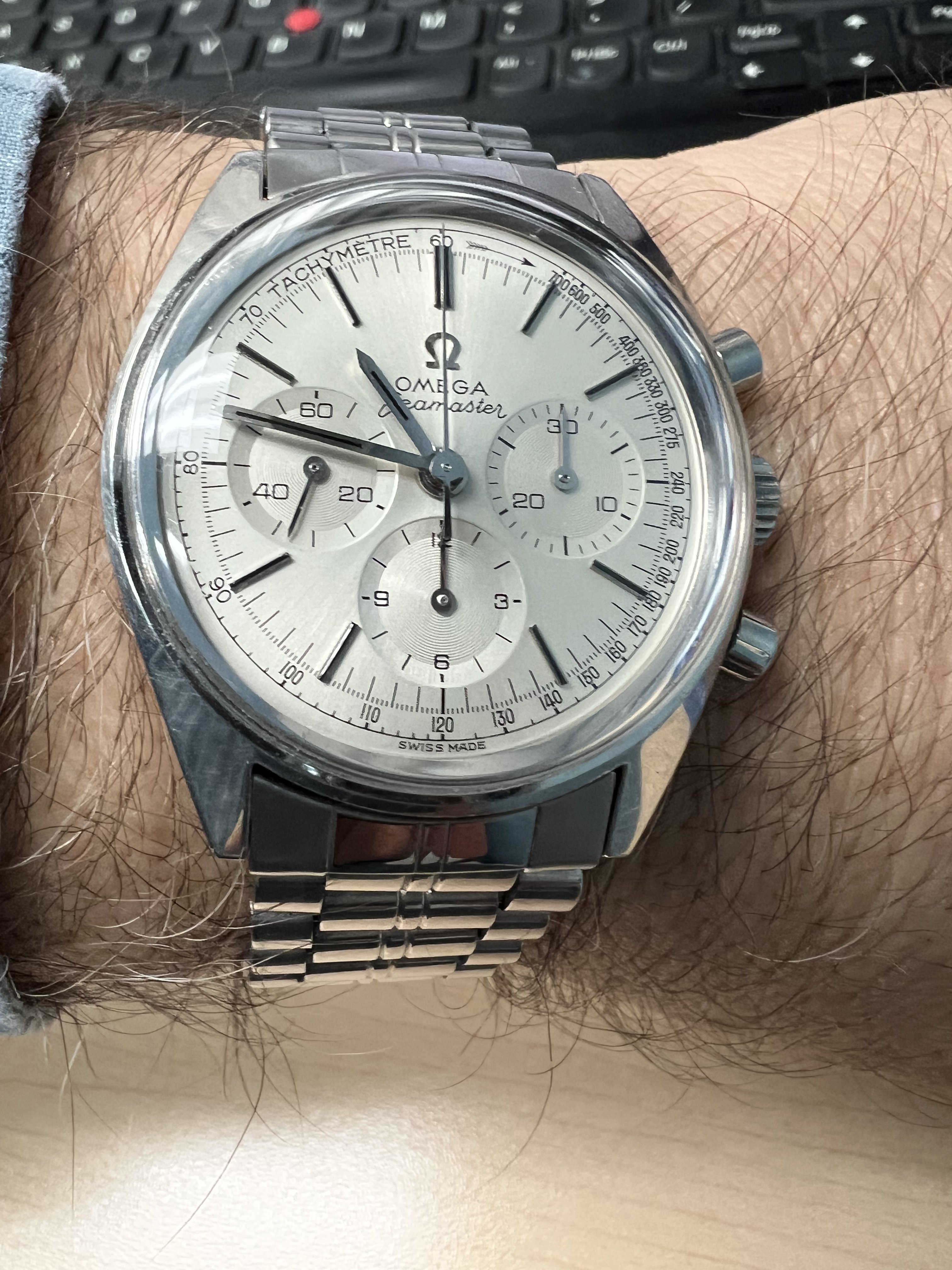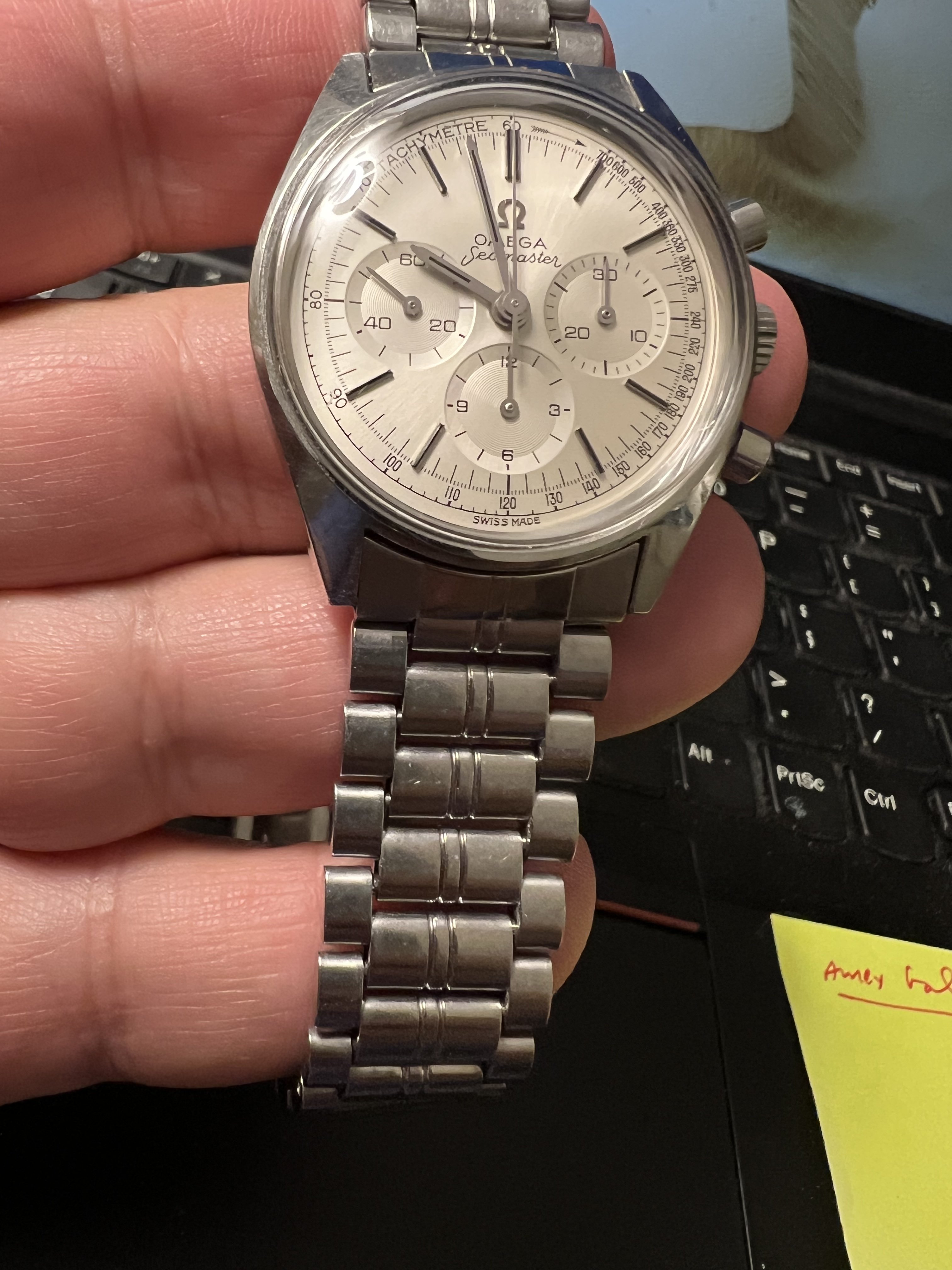 Seamaster script with coat hanger S. My understanding is that this reference came either with Seamaster or Deville, but not Seamaster Deville together