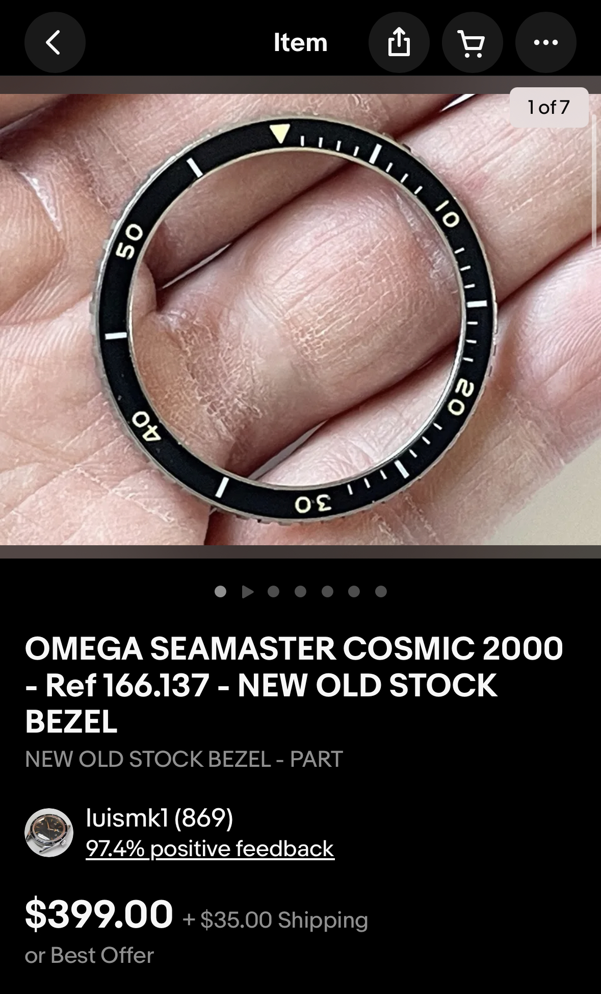 ·You will not find the insert , ever . Complete NOS bezel on eBay around $800. IF you find one at all....I gave you the best guy for the job before, contact him for making that insert. Or Omega for a full service and bezel. Which will cost quite a lot. Good luck!