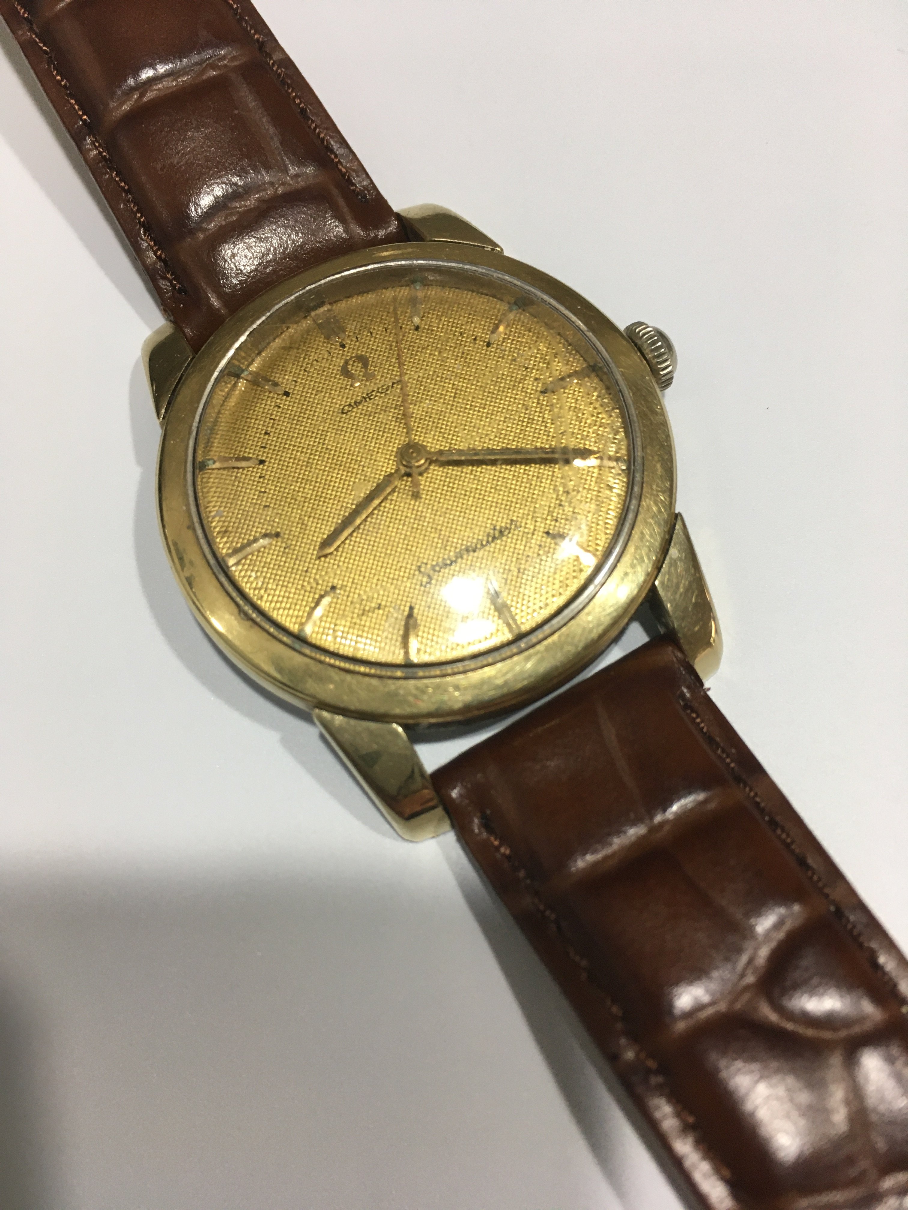 Hello - my name is Steve and this was my fathers watch that I can across while going through his things recently. Just wanted a little history about when he might have obtained it or if the model (with the gold "dimpled" face) is rare or common. Also - with its condition (top surface/bezel wear and scratched crystal) is it refurbishable?