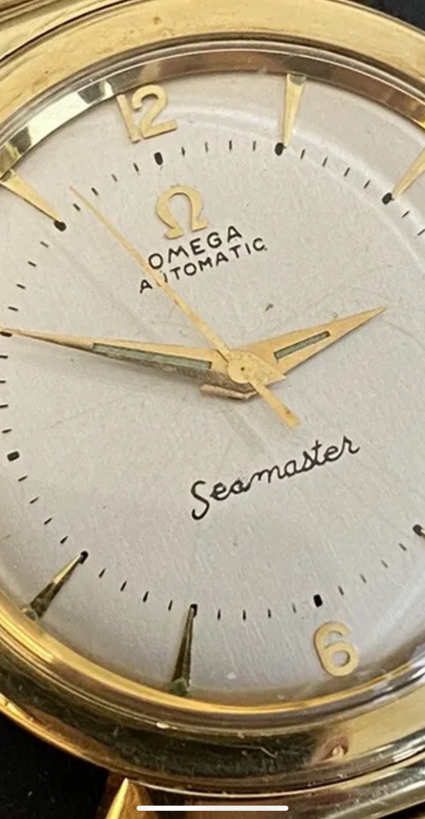I was looking at getting this sSeamaster, but started to look closer and some details were throwing me off. The “e” and “a” in Seamaster look redone and the “M” in Omega looks off to me. Am I right to think so or am I overthinking it? Also, are these the original hands and what does it mean when they are that light green? I just wanted to get some help since I know a lot of y’all are vintage experts.