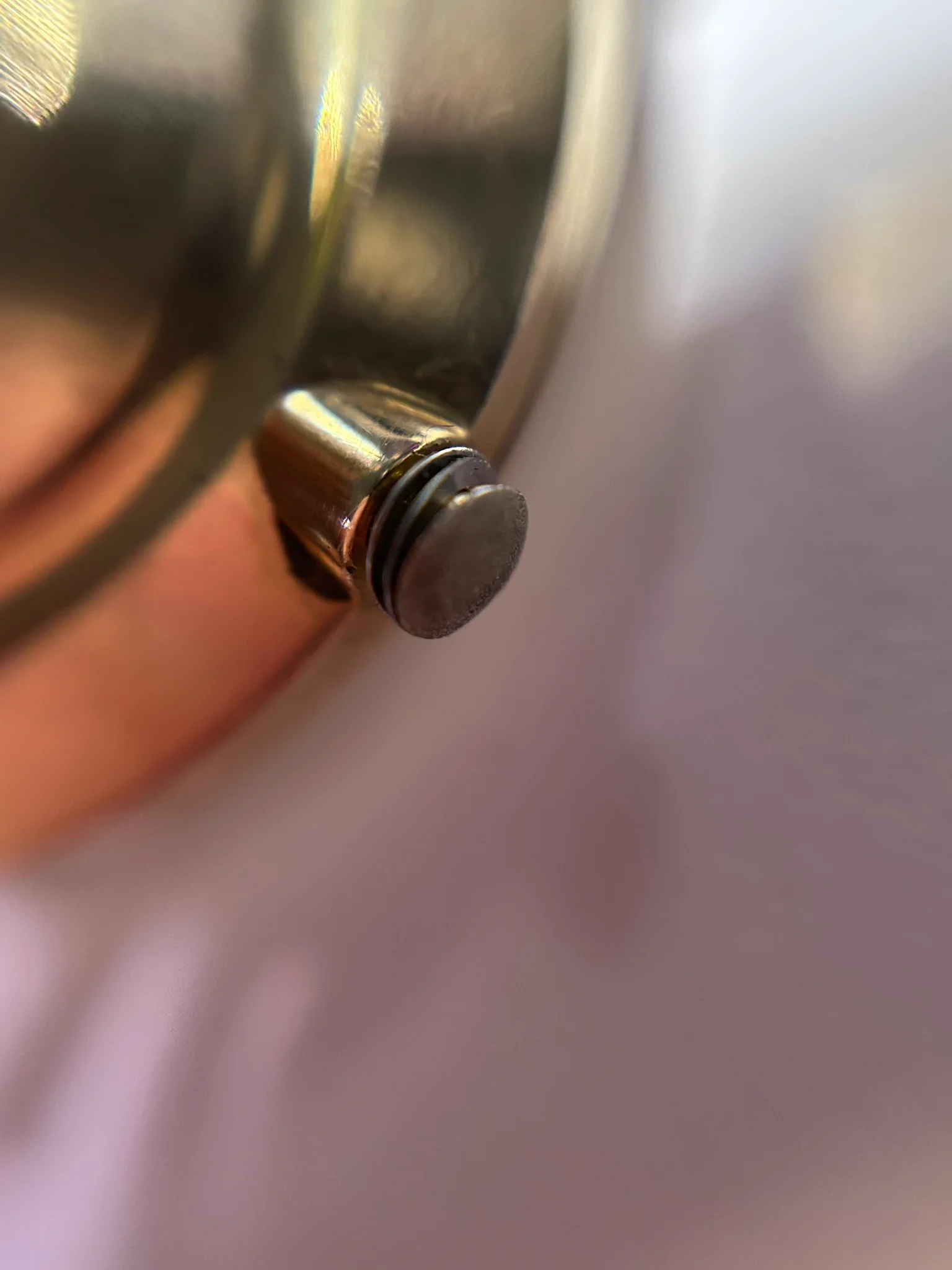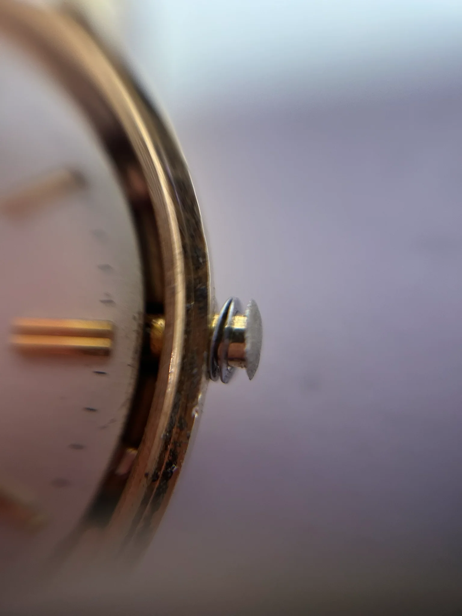 After he died a someone did ‘something’ to it - no idea - but my father wore it for years this way. Check out the pics of the stem. The knurled knob is gone and the remains of a black gasket/washer crumbled off the stem when I got it. Teh case/crystal comes off way easy - like with a plastic tool and just a little pressure. Didn’t dare take it any further apart.