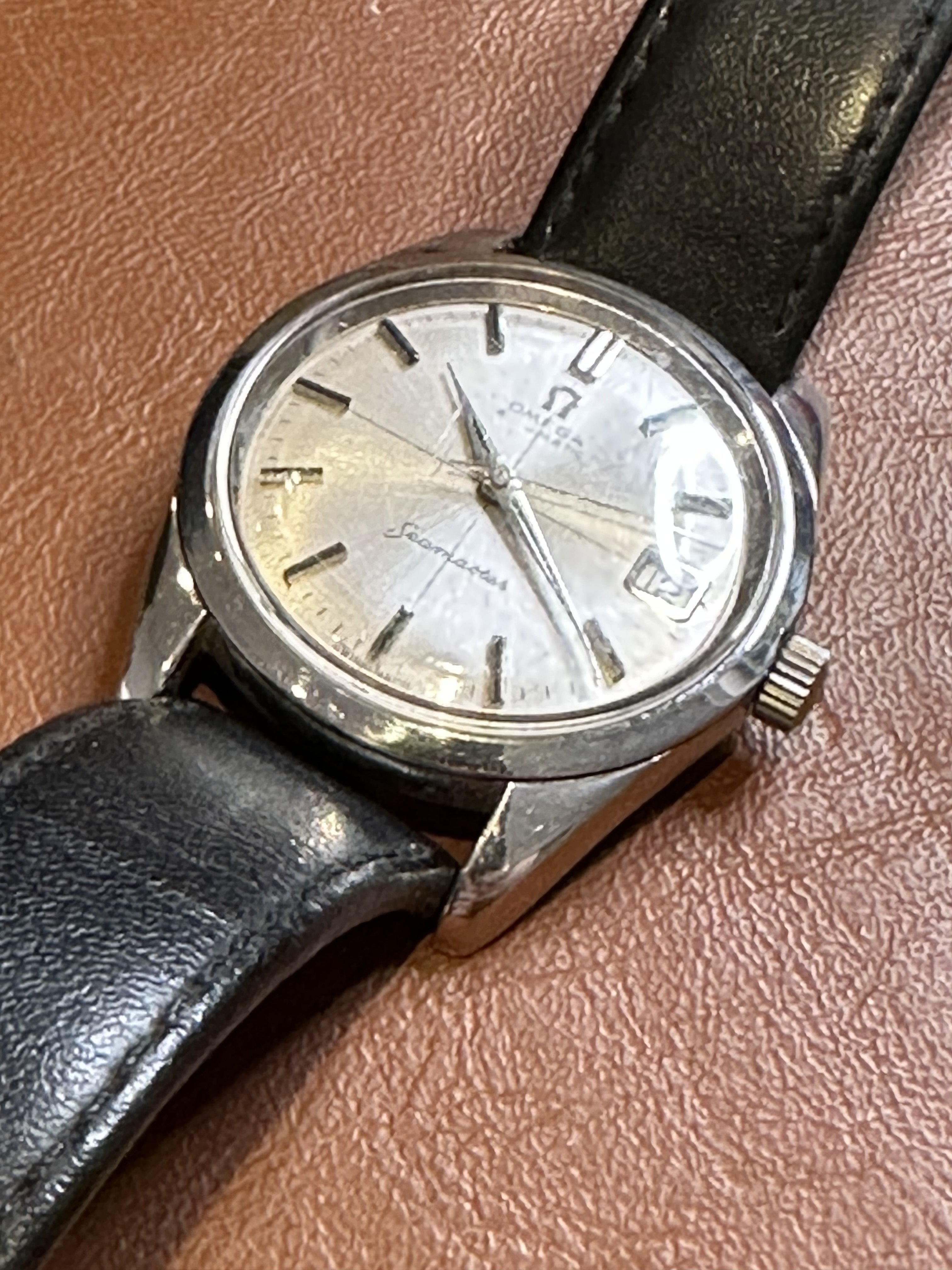This is a watch that has been passed through the family for decades. Due to a recent bereavement it has landed with me. It’s in rough shape and I think has a £5 strap on it. I took it to an Omega shop to ask about servicing, but they had a waiting list of almost a year and couldn’t give me an accurate serving cost other than upwards of £800.