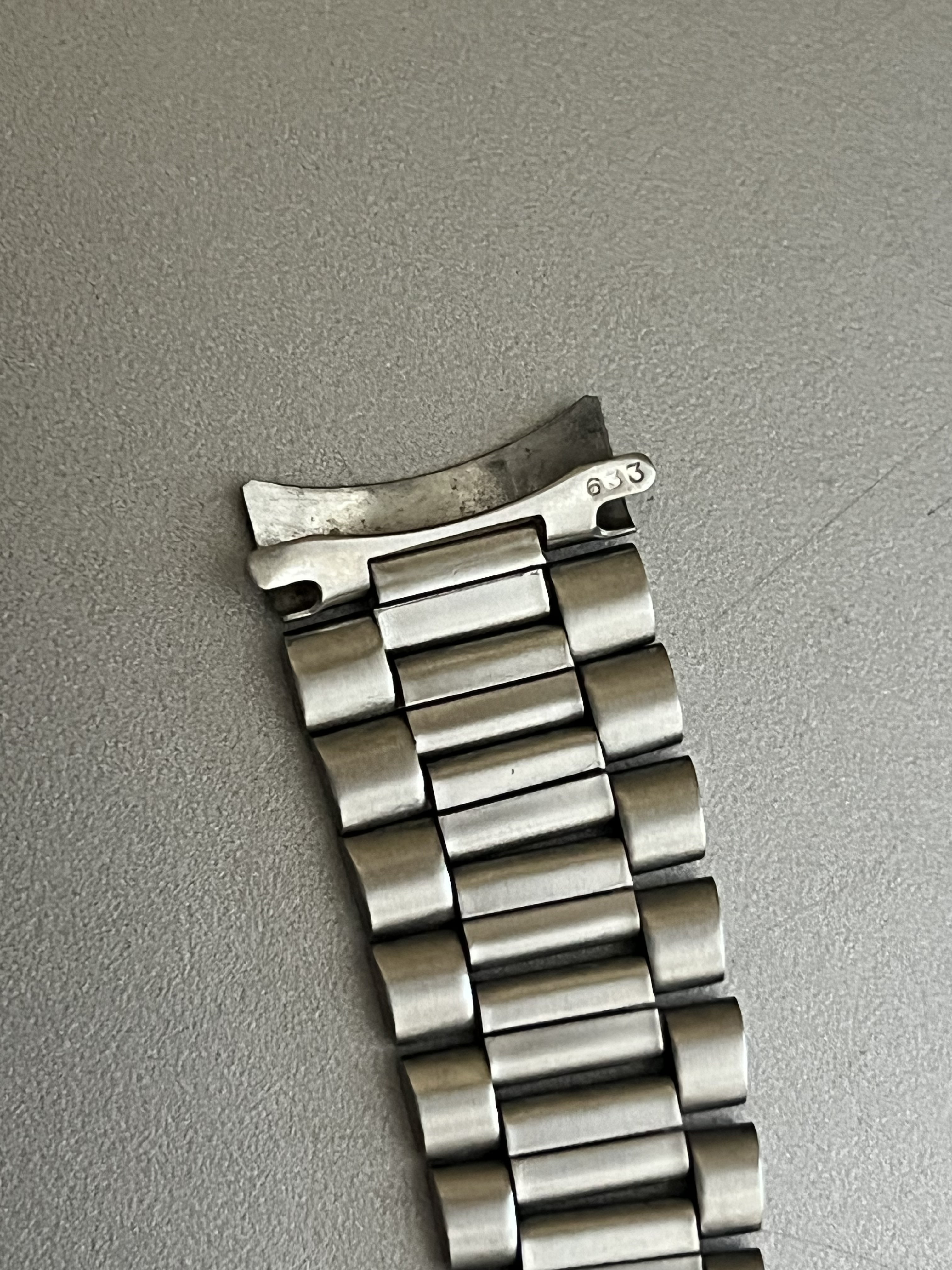 ·Hello everyone. Have a trapezoid logo 1171 with vintage 633 end links. Bracelet is in good condition as seen in pictures. The bracelet buckle is a little crooked but does close with no issues. My asking price is 500 usd or best offer. If you need more pictures or have any questions feel free to reach out.