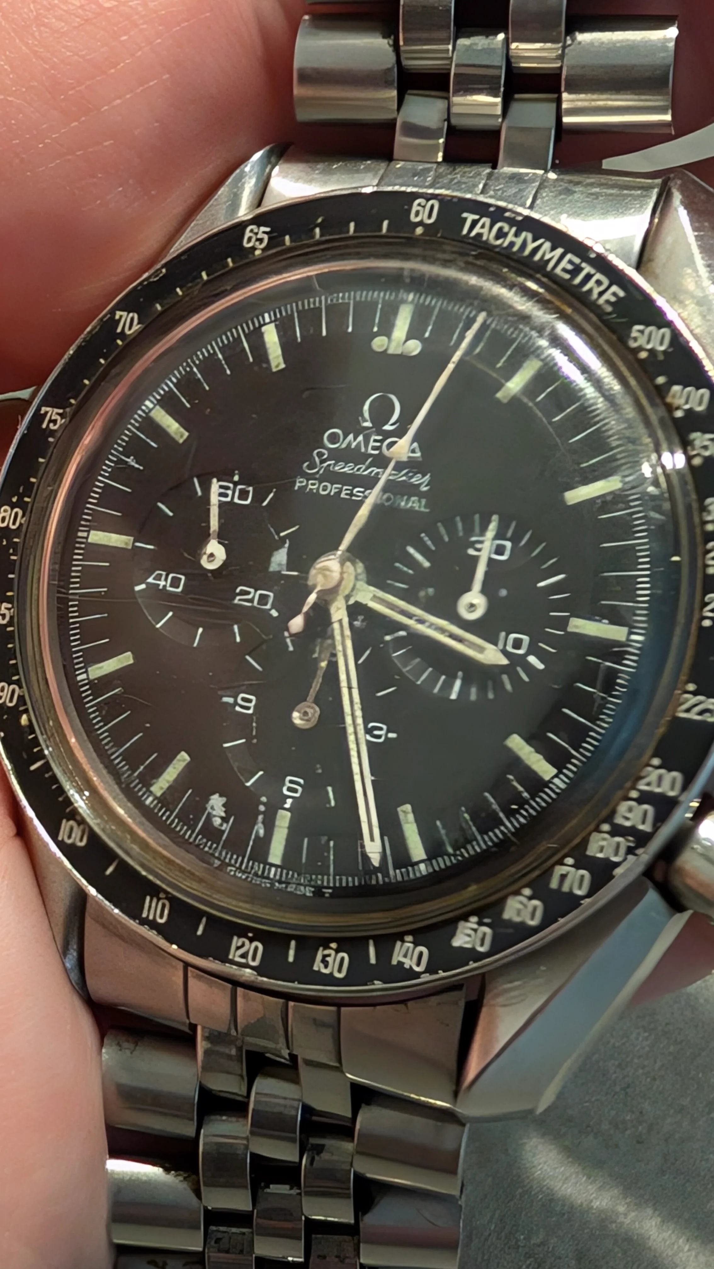 Fast-forward to last week-- I finally got to see this old Speedmaster when he handed it to me and said it is now mine, if I want it. I turned him down-- kidding, of course I want it.