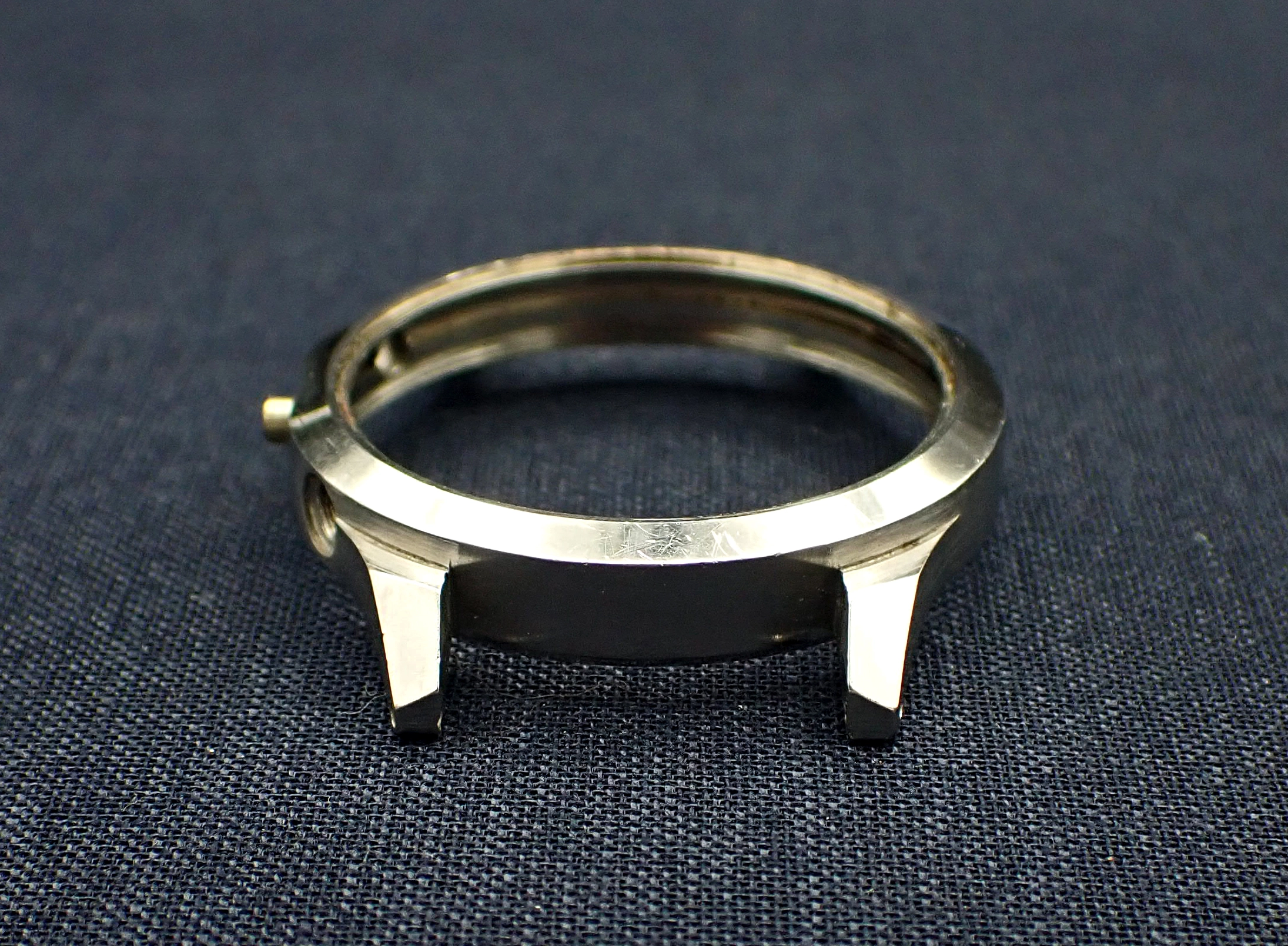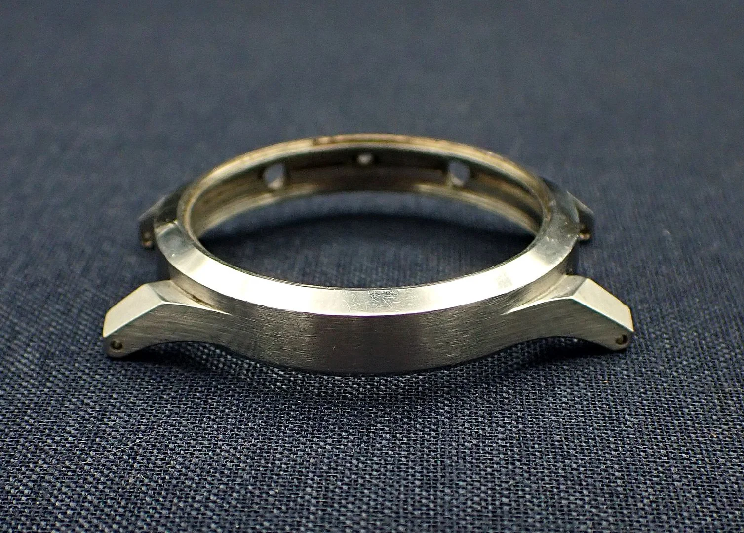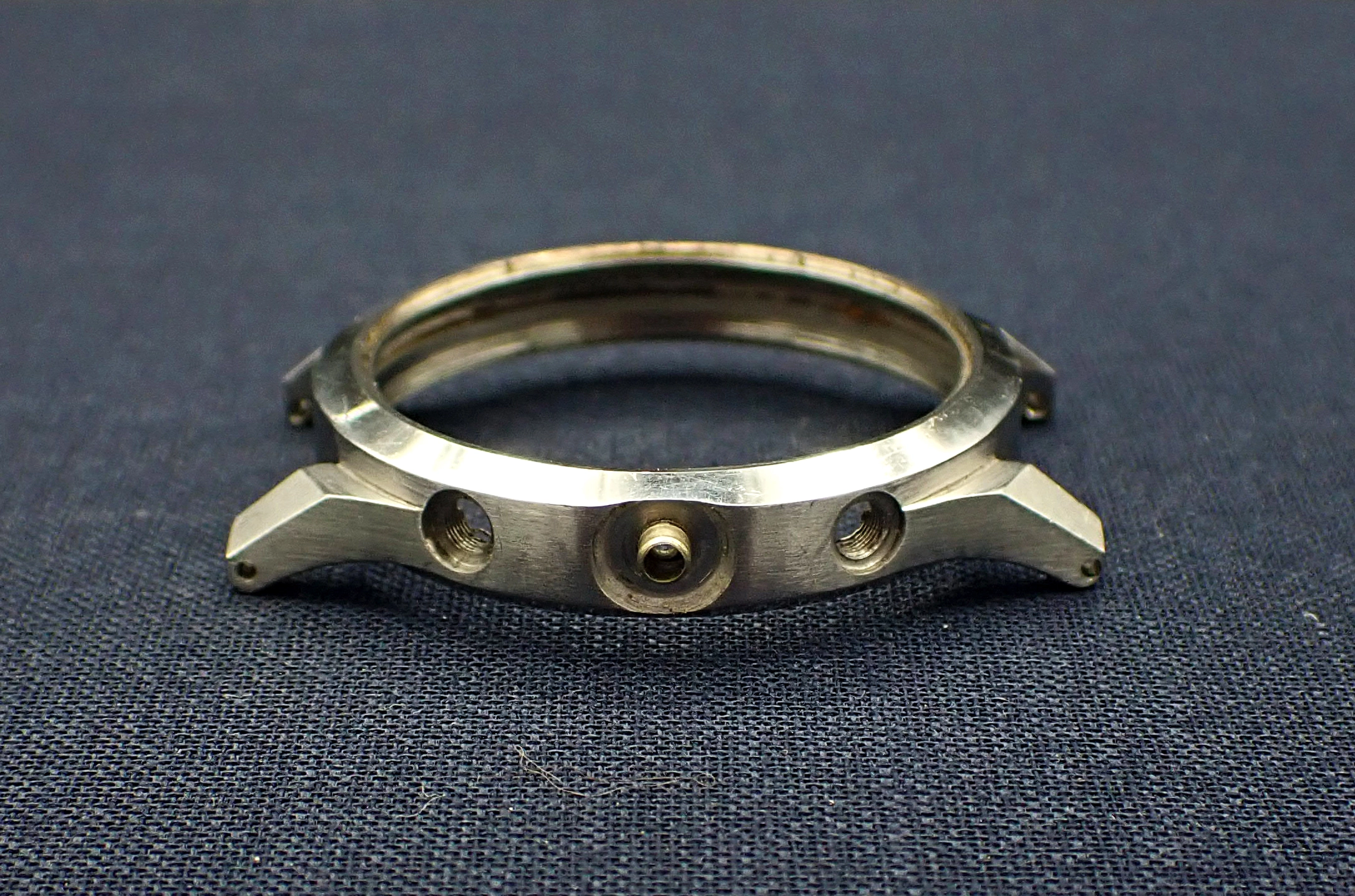·On offer here I have a genuine vintage Spillman Chronograph mid-case in Stainless Steel. This desirable and scarce watch part is in Very Good unpolished vintage condition, with some scuffs & scratches but very sharp edges and angled lugs, and displays its original correct brushed and polished finishes. This sale is for a Spillman mid-case only, without back, pushers, crown or crystal. This Spillman mid-case measures the classic oversize 38mm in diameter by 45mm lug-to-lug.