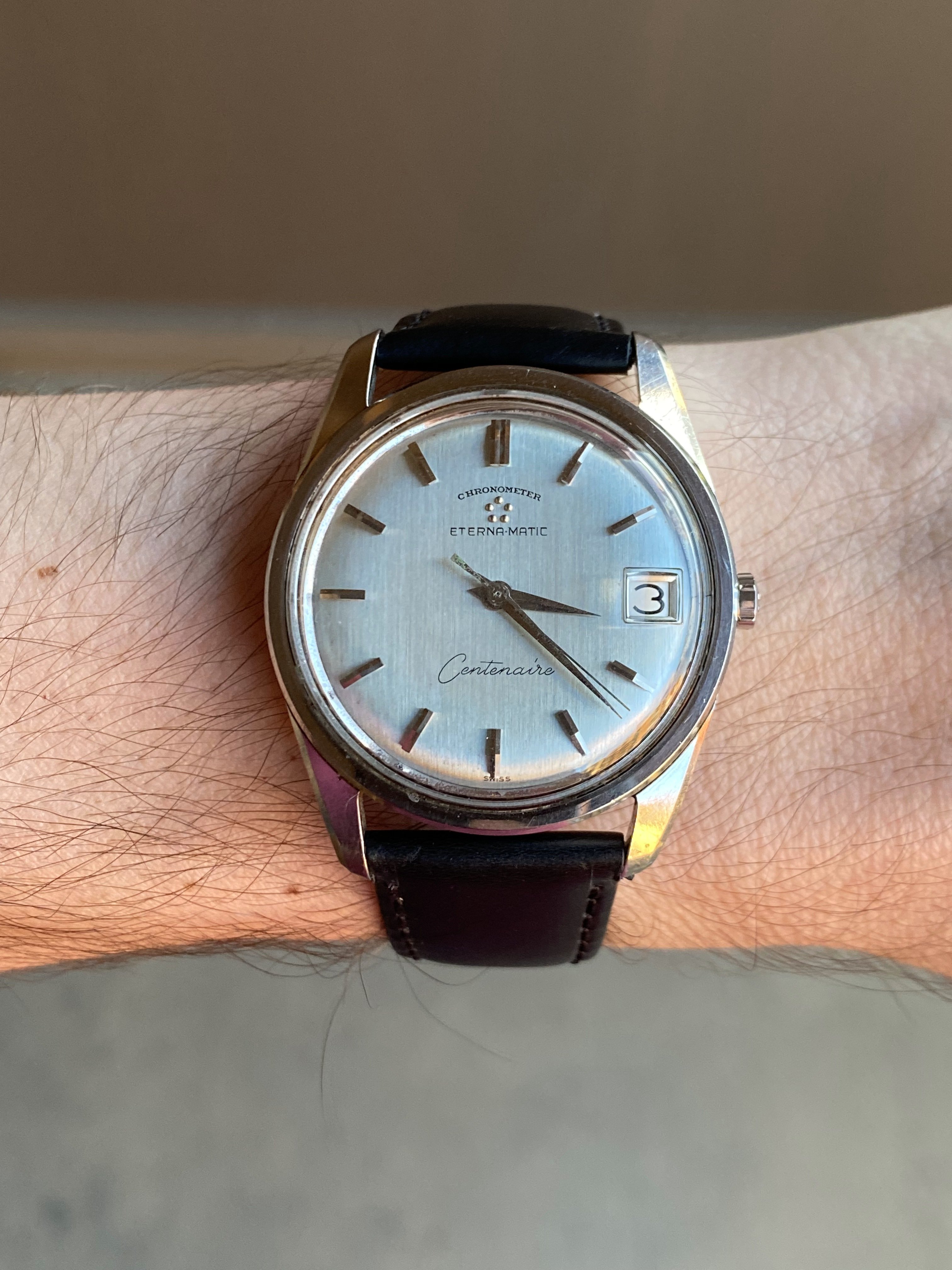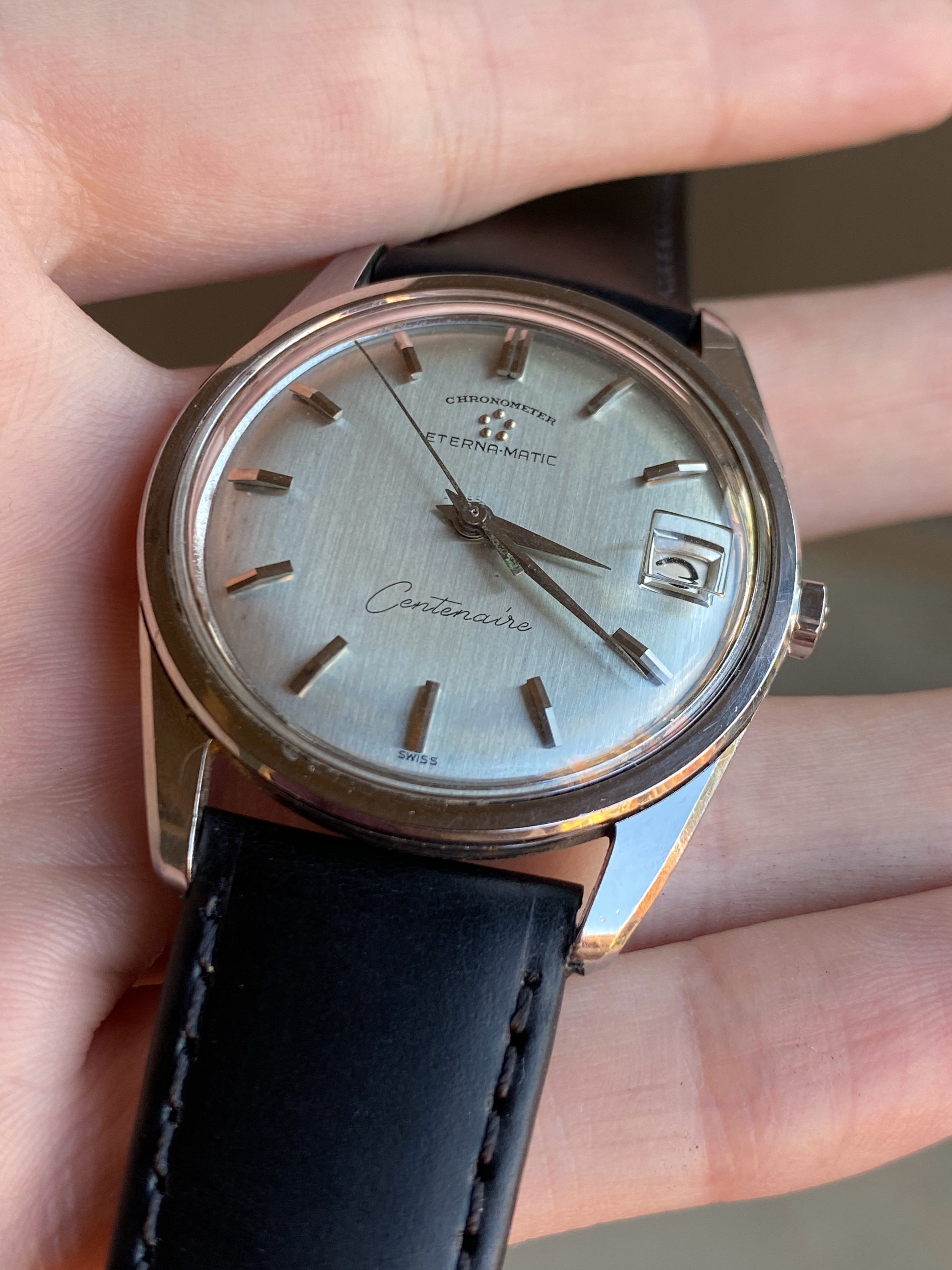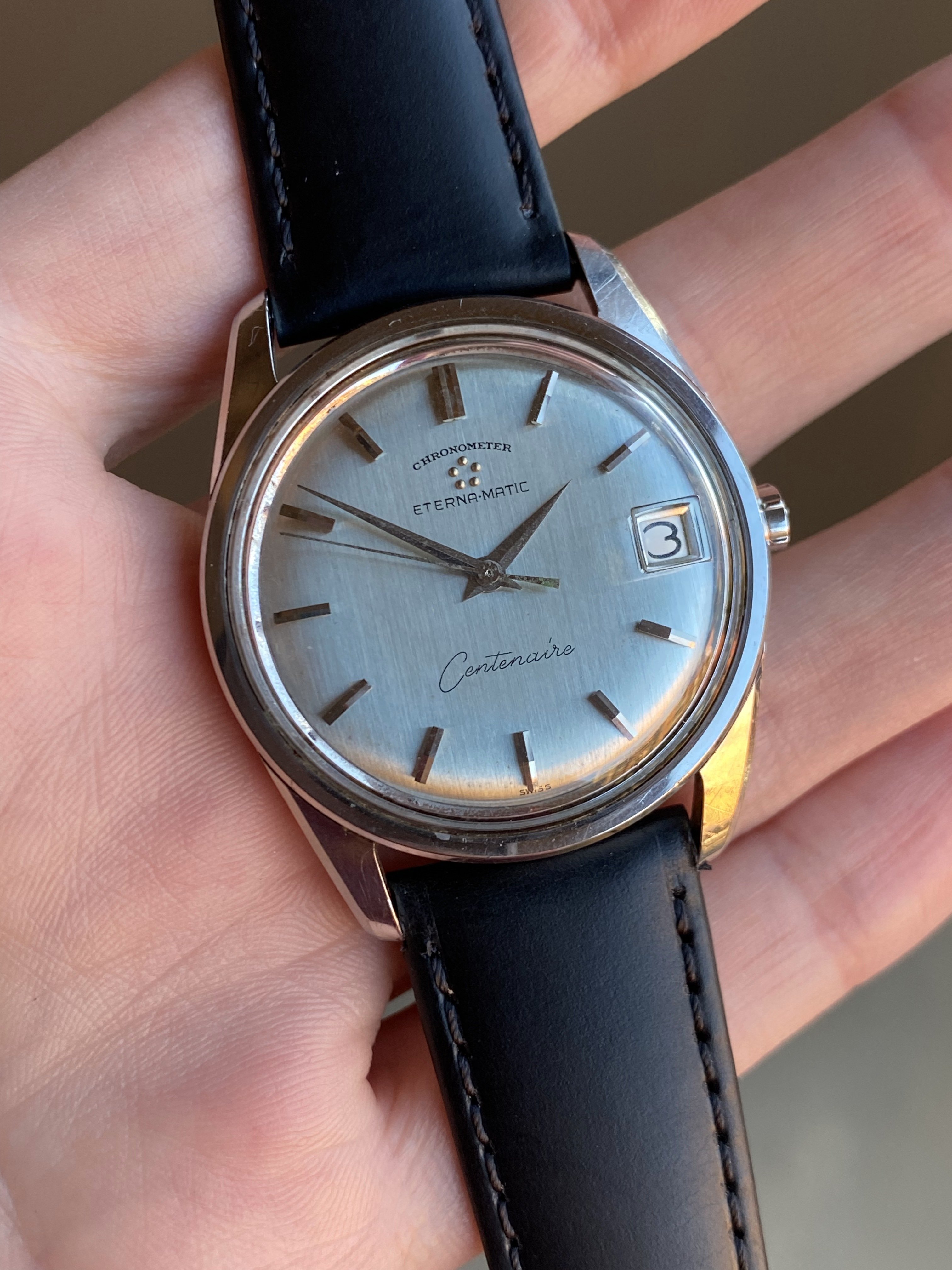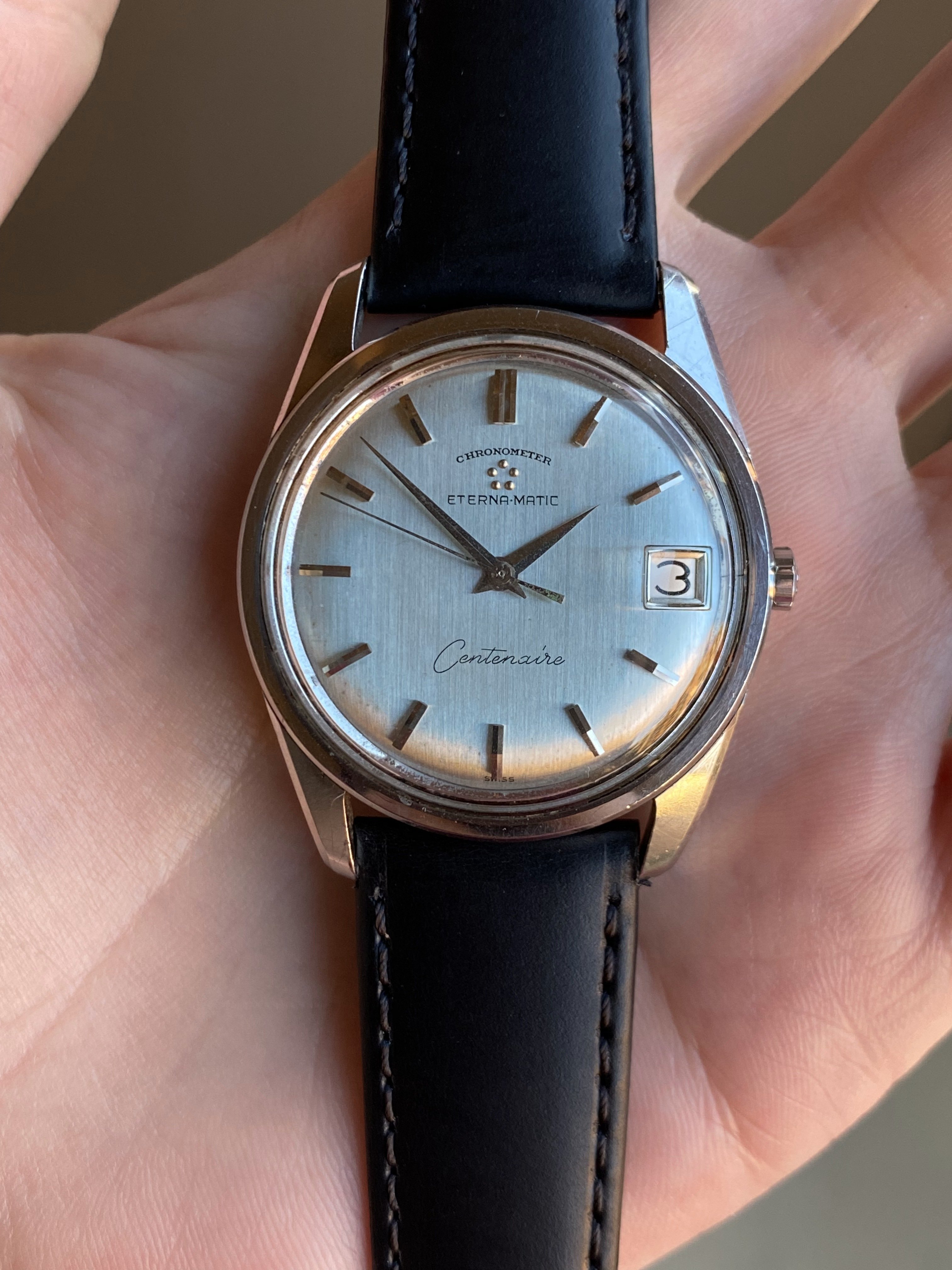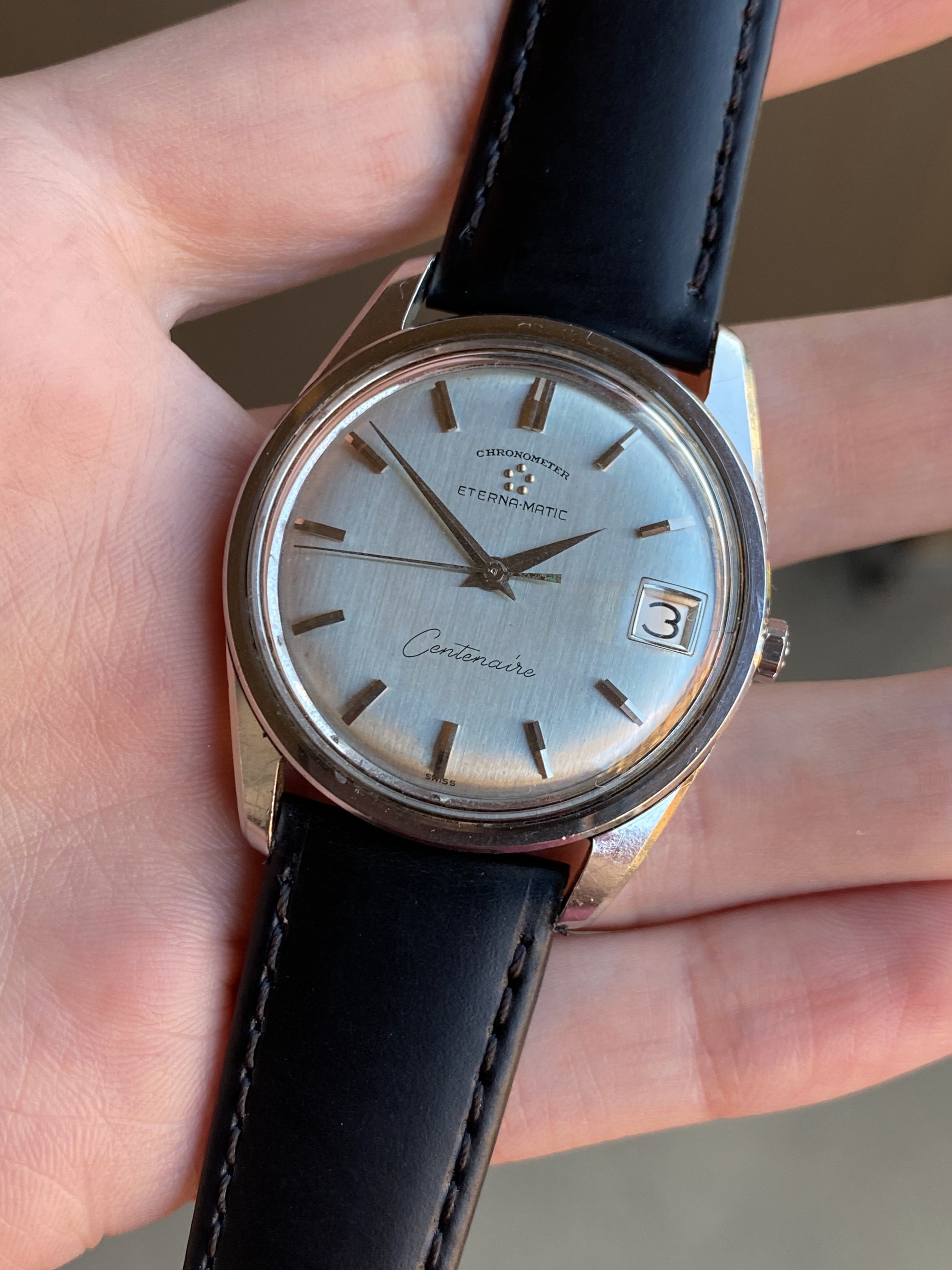 ·Up for sale is a 1960s Eterna-Matic Centenaire Chronometer with a gold Schild family crest medallion on the caseback. This is a very uncommon and very cool watch. Please see below for details, and feel free to reach out if you have any questions.