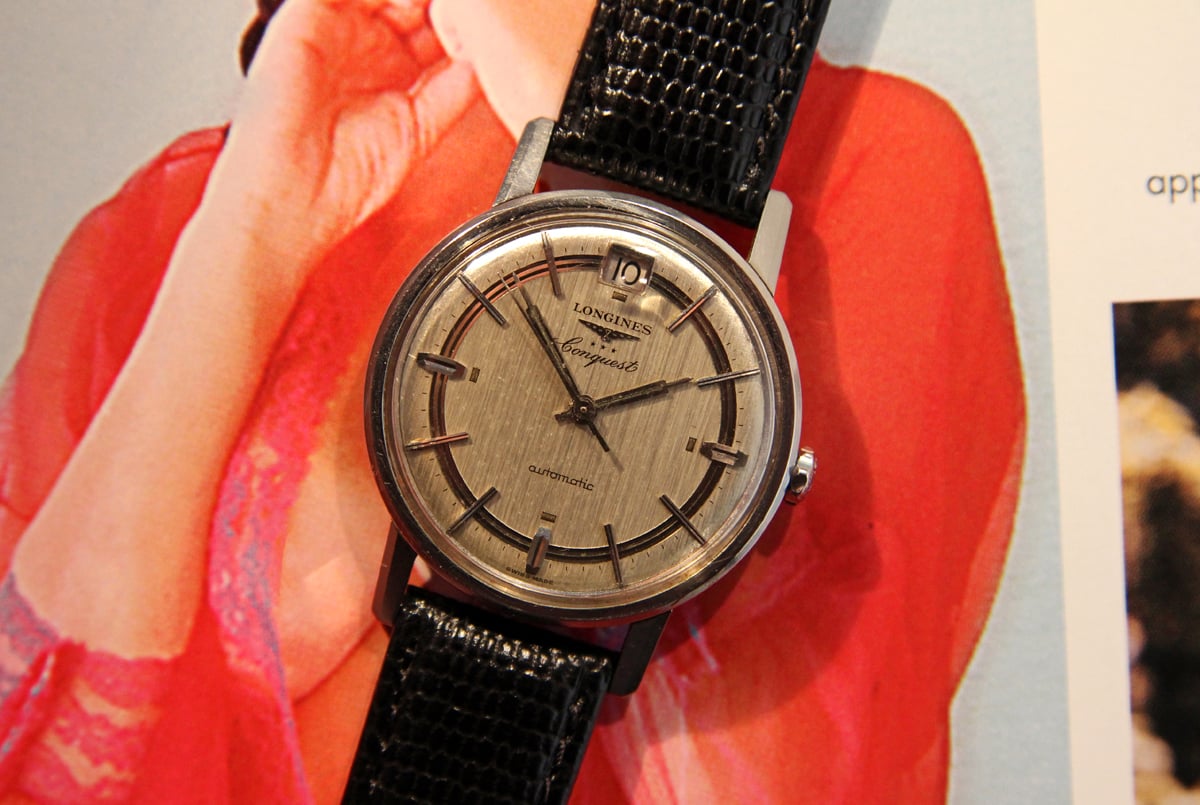 BAND: This classic Longines comes on a brand new black leather strap with semi-gloss lizard finish from de Beer Paris and generic steel buckle. This watch takes 18mm straps.
