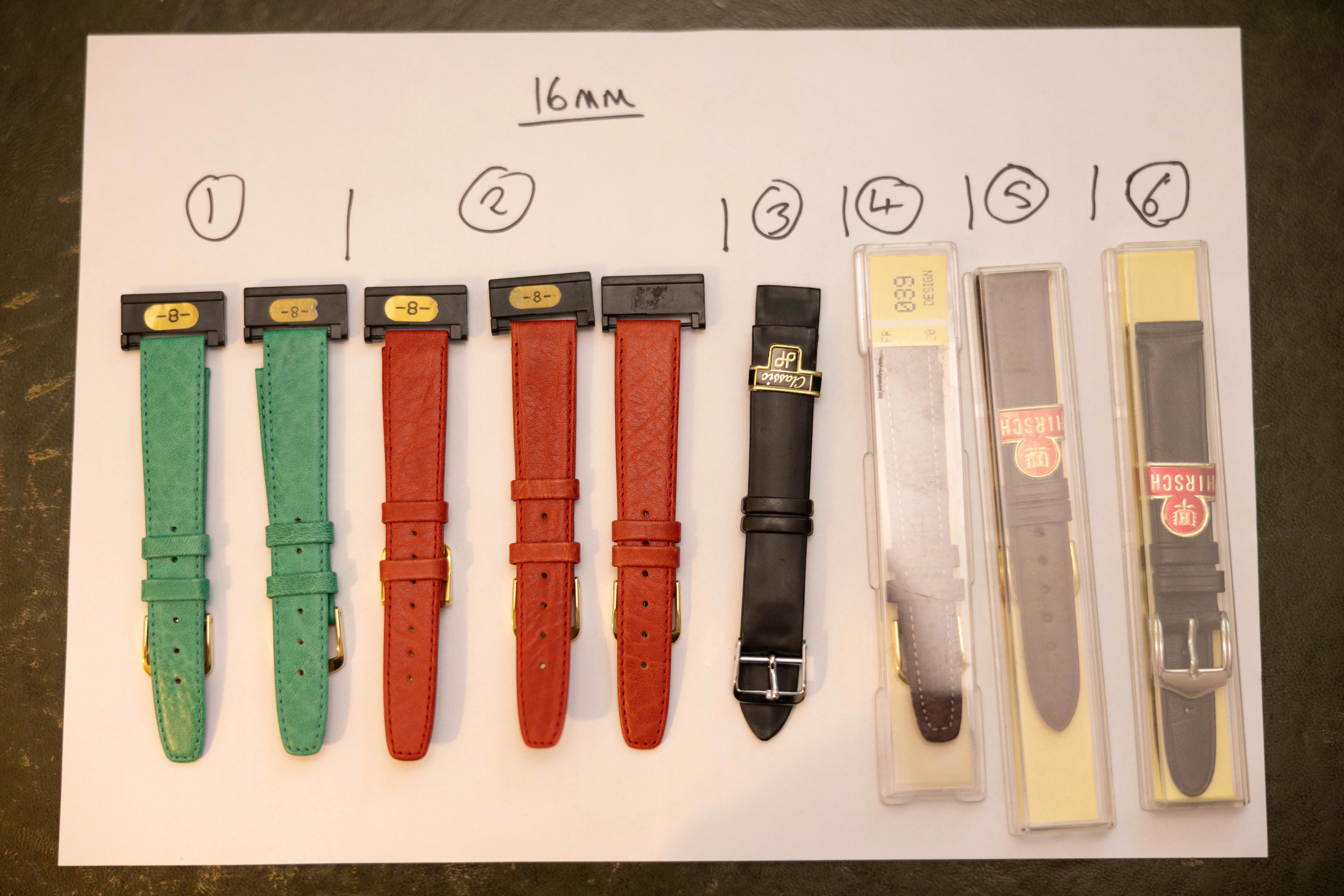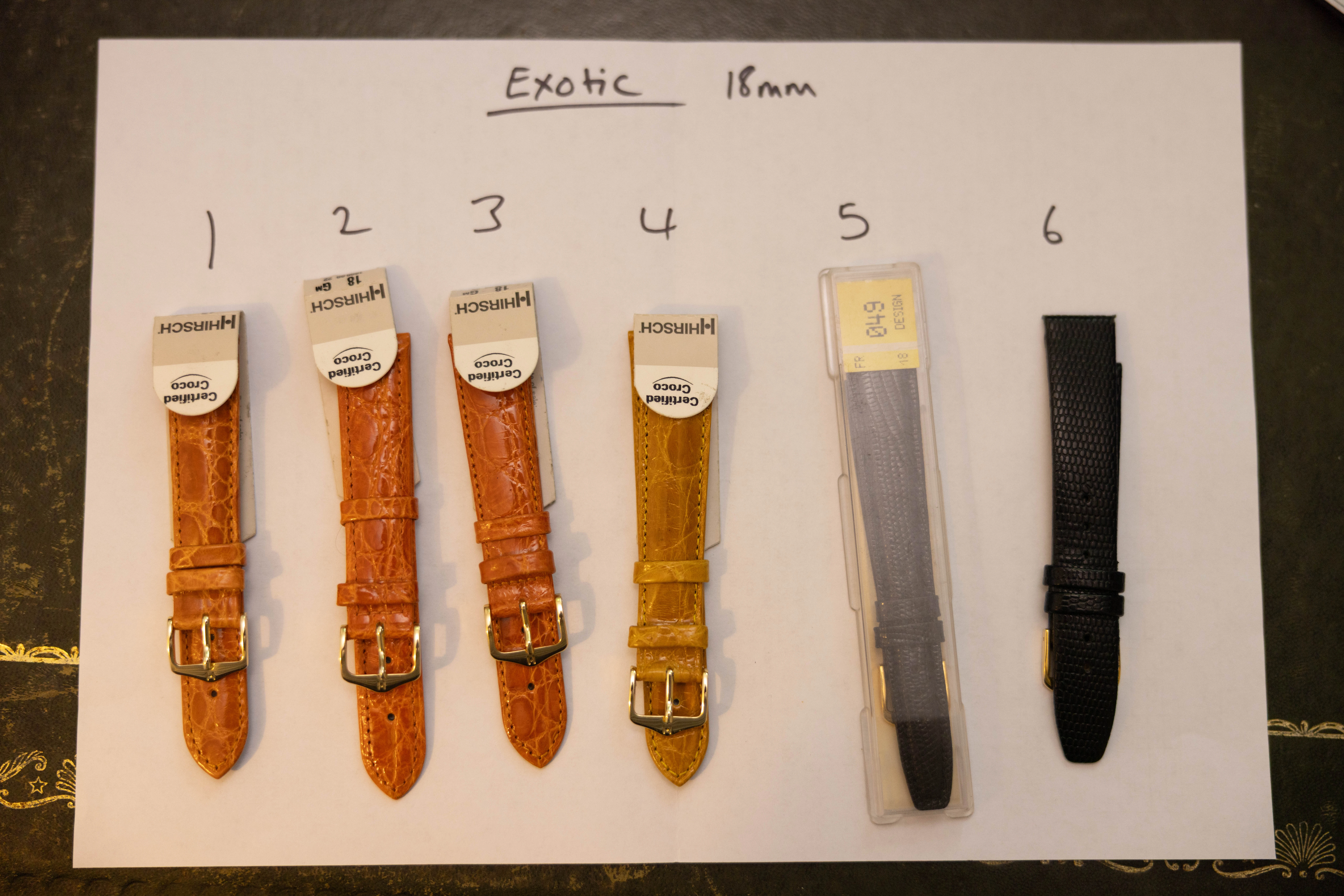 1,2,3,4 (Hirsch) : £80 each (RRP £160 - https://www.watchobsession.co.uk/pr...-leather-watch-strap-orange?variant=338667352)