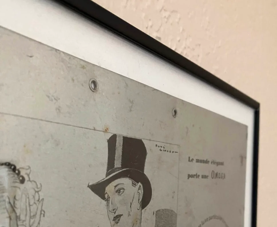 It has two grommet holes on the top, and it has been framed It measures 15.75" (400mm)x11.75"(300mm)