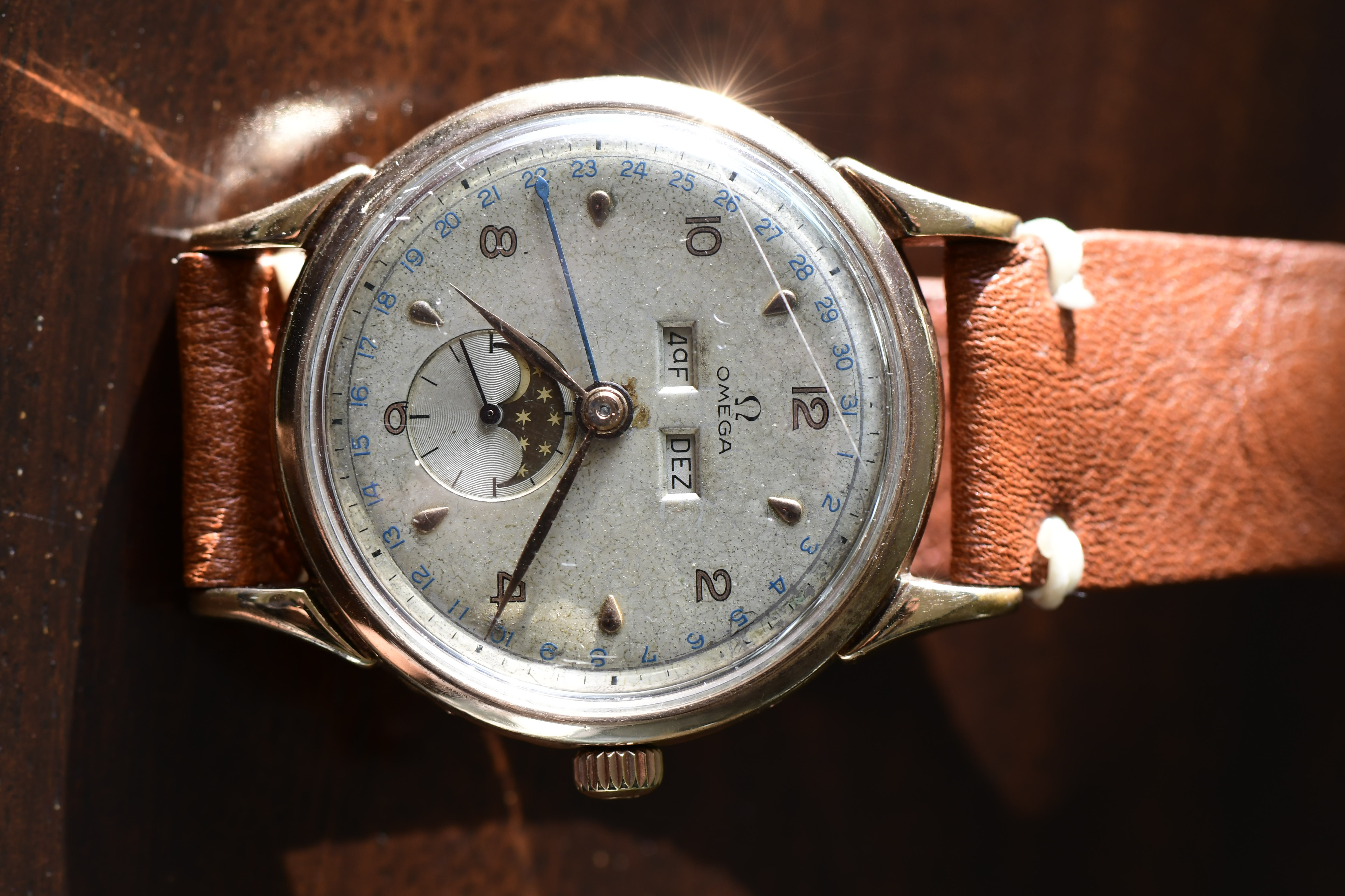 My 14k UG triple, date, moonphase. Look at those deco arabic numerals !