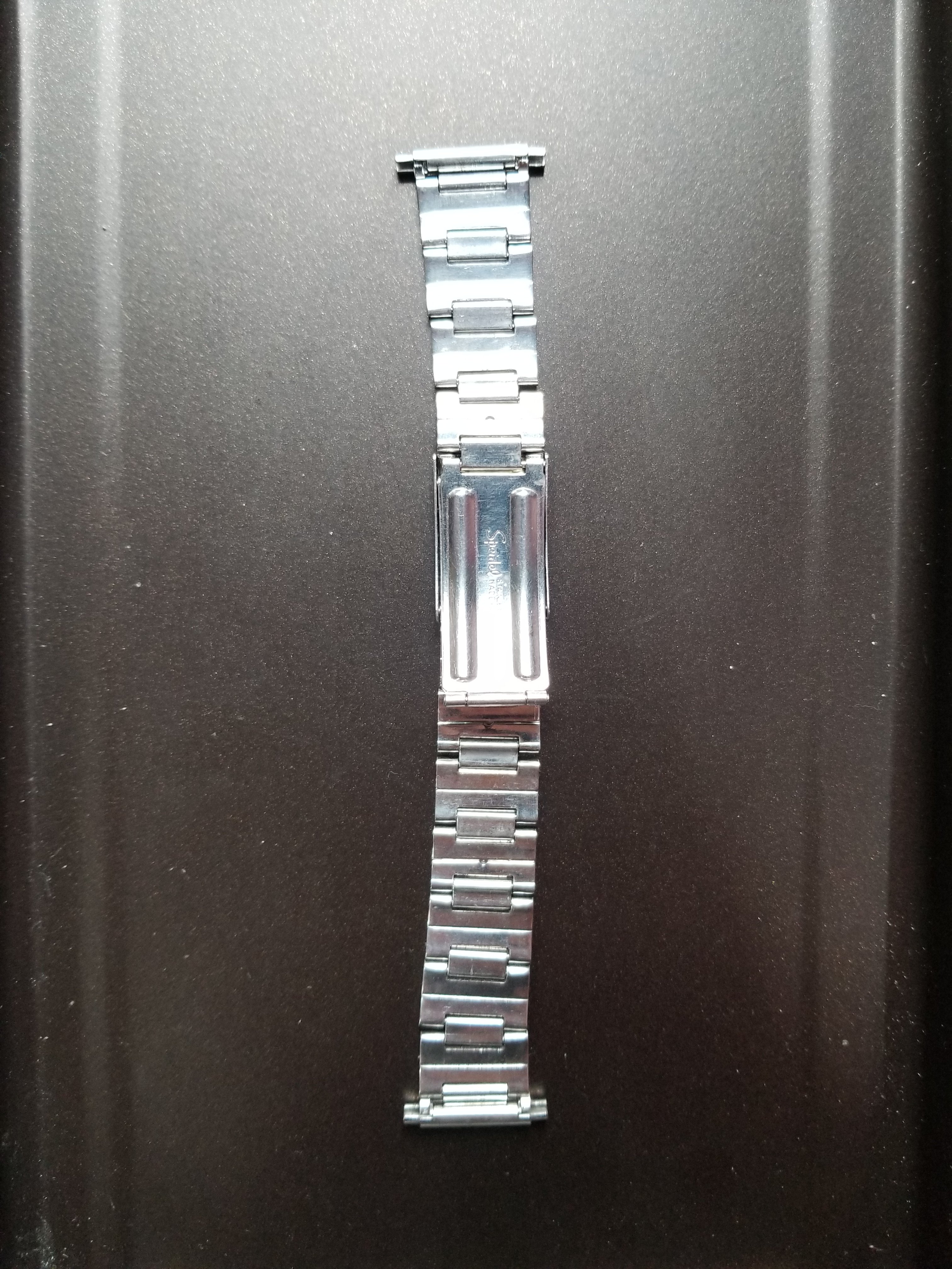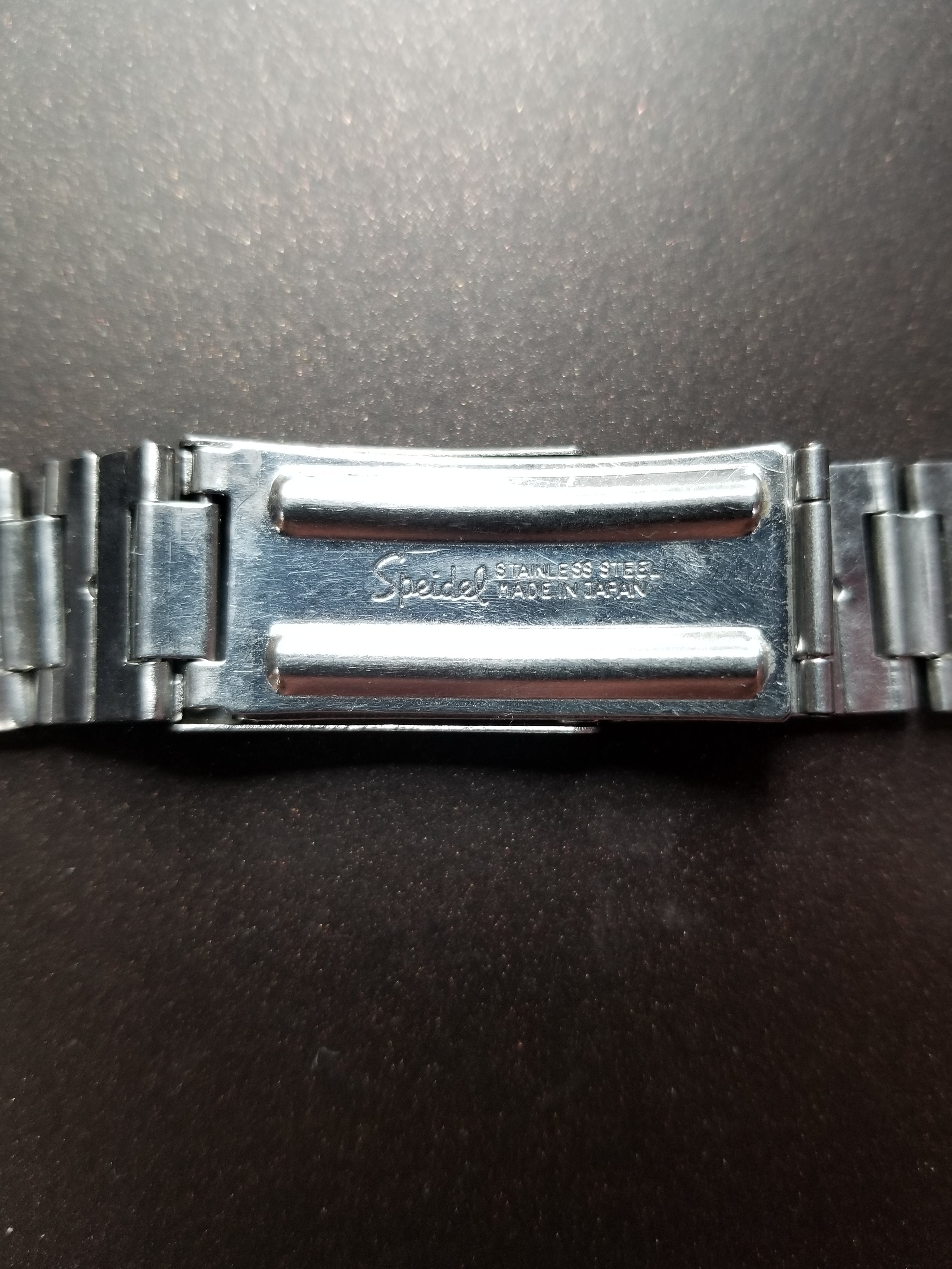 3. Vintage Speidel flat/folded link bracelet. Clasp closes securely. Inside clasp signed Speidel Stainless Steel Made in Japan. Bracelet has surface scratches commensurate with age. Total length 15cm. Ends can work between 17mm and 22mm. $25 REDUCED TO $10