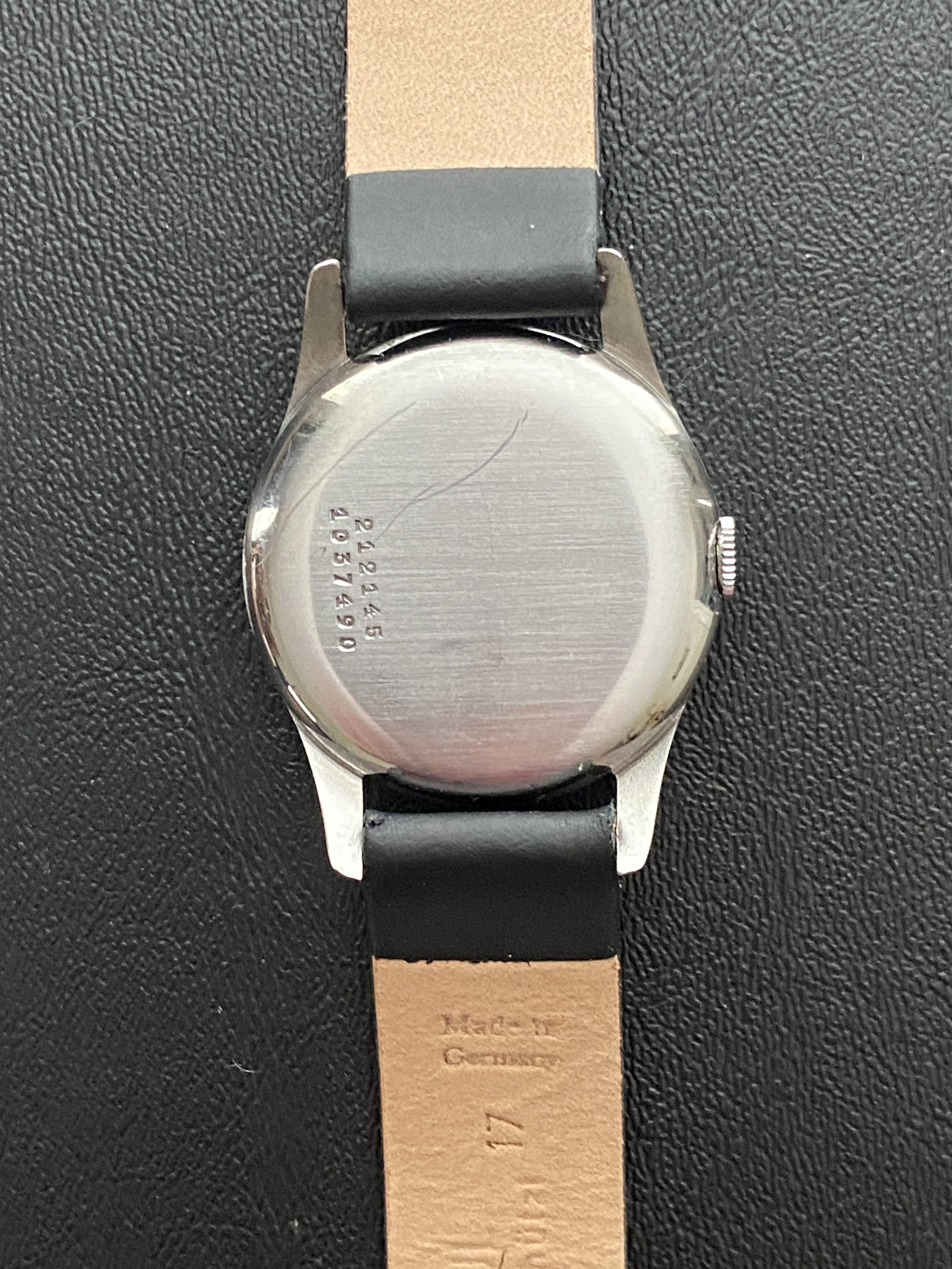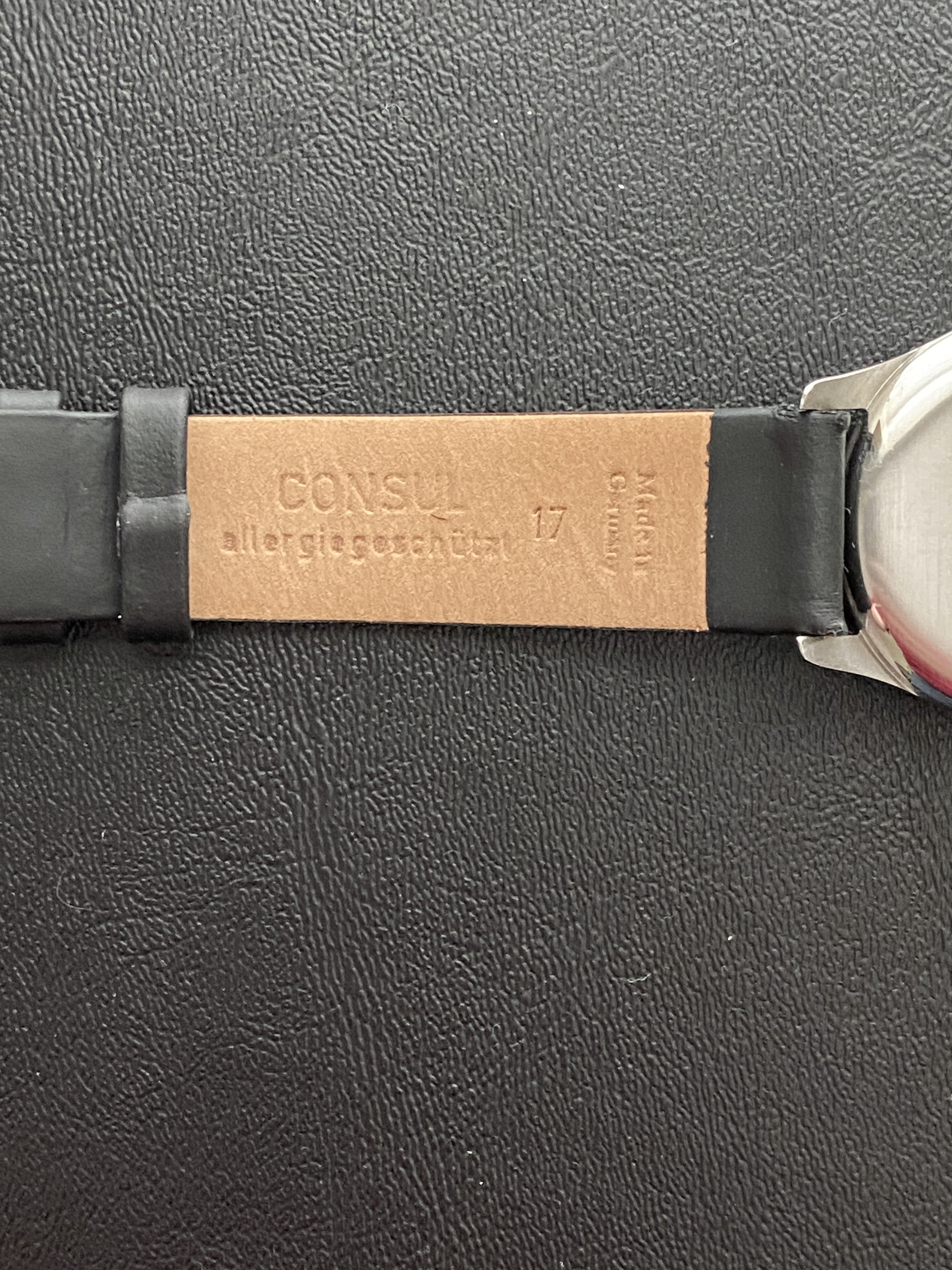 Straps: 17mm Fluco Consul black leather strap in like new condition. Includes female springbars.